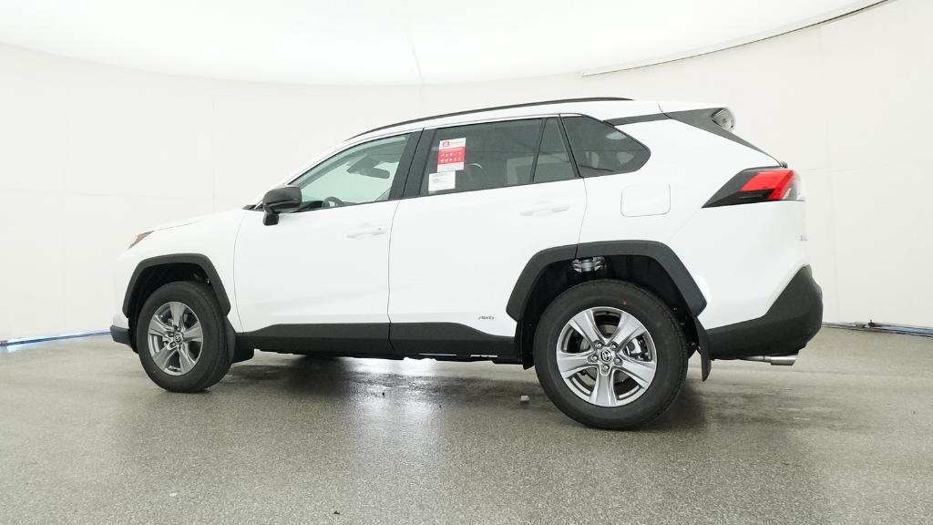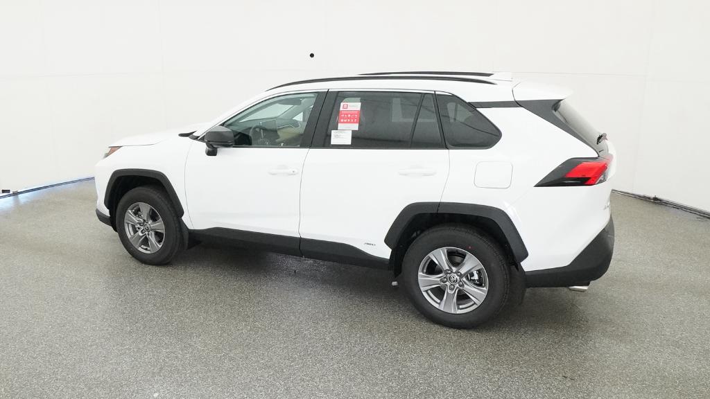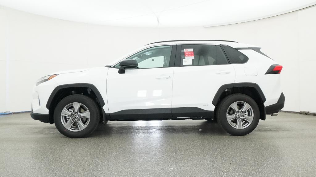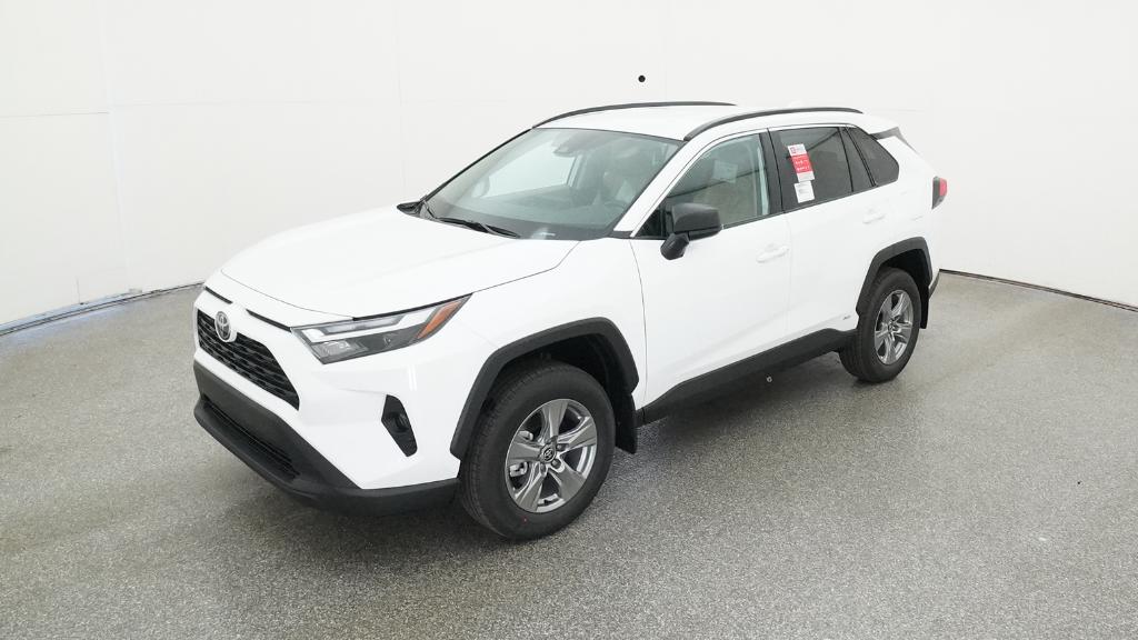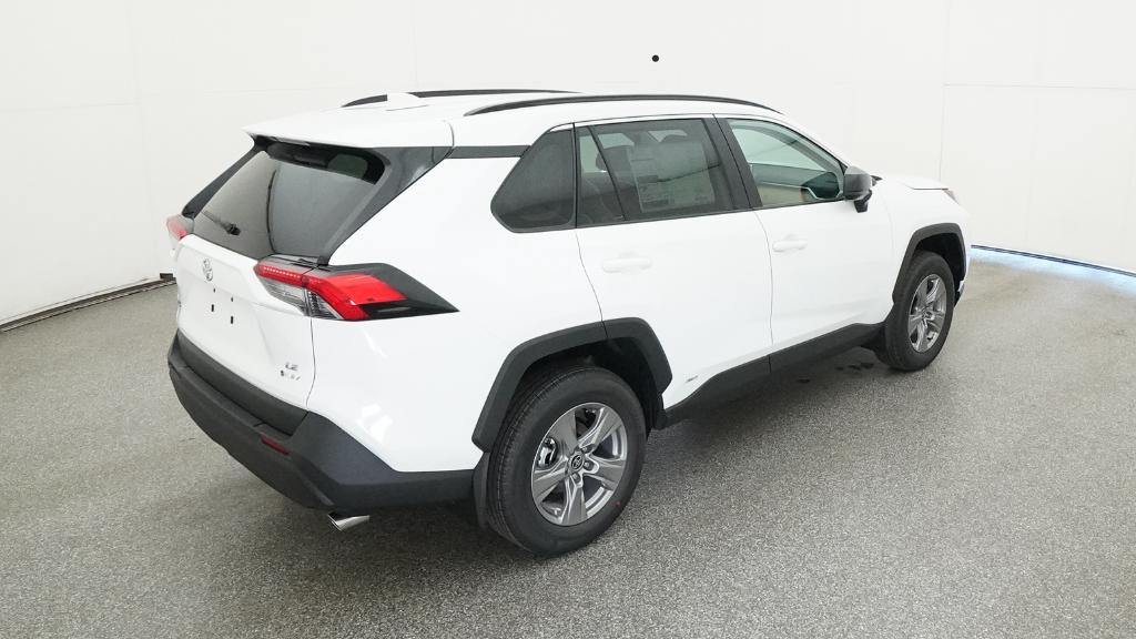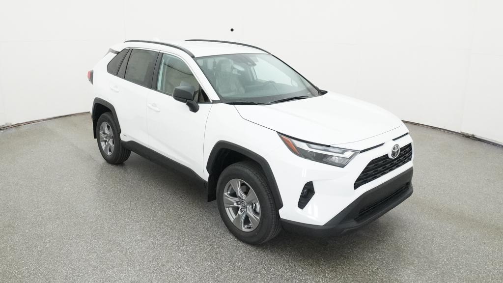 2025 Toyota RAV4 Hybrid LE Ice Cap AWD eCVT 2.5L 4-Cylinder4-Wheel Disc Brakes, 6 Speakers, ABS brakes, Air Conditioning, Alloy wheels, AM/FM radio: SiriusXM, Auto High-beam Headlights, Automatic temperature control, Brake assist, Bumpers: body-color, Driver door bin, Driver vanity mirror, Dual front impact airbags, Dual front side impact airbags, Electronic Stability Control, Emergency communication system: Safety Connect (1-year trial), Exterior Parking Camera Rear, Fabric Seat Trim, Four wheel independent suspension, Front anti-roll bar, Front Bucket Seats, Front Center Armrest, Front dual zone A/C, Front reading lights, Illuminated entry, Knee airbag, Low tire pressure warning, Occupant sensing airbag, Outside temperature display, Overhead airbag, Overhead console, Panic alarm, Passenger door bin, Passenger vanity mirror, Power door mirrors, Power steering, Power windows, Radio data system, Radio: AM/FM/XM Audio System, Rear anti-roll bar, Rear seat center armrest, Rear window defroster, Rear window wiper, Remote keyless entry, Speed control, Speed-sensing steering, Split folding rear seat, Spoiler, Steering wheel mounted audio controls, Telescoping steering wheel, Tilt steering wheel, Traction control, Trip computer, Wheels: 17 x 7.0J Silver Aluminum Alloy.
