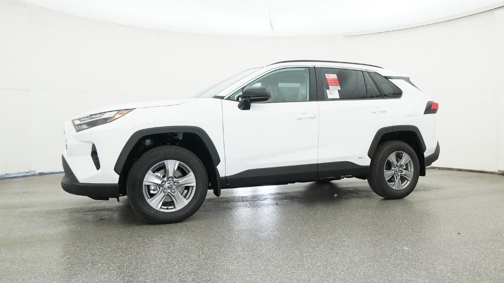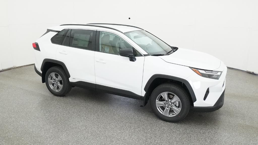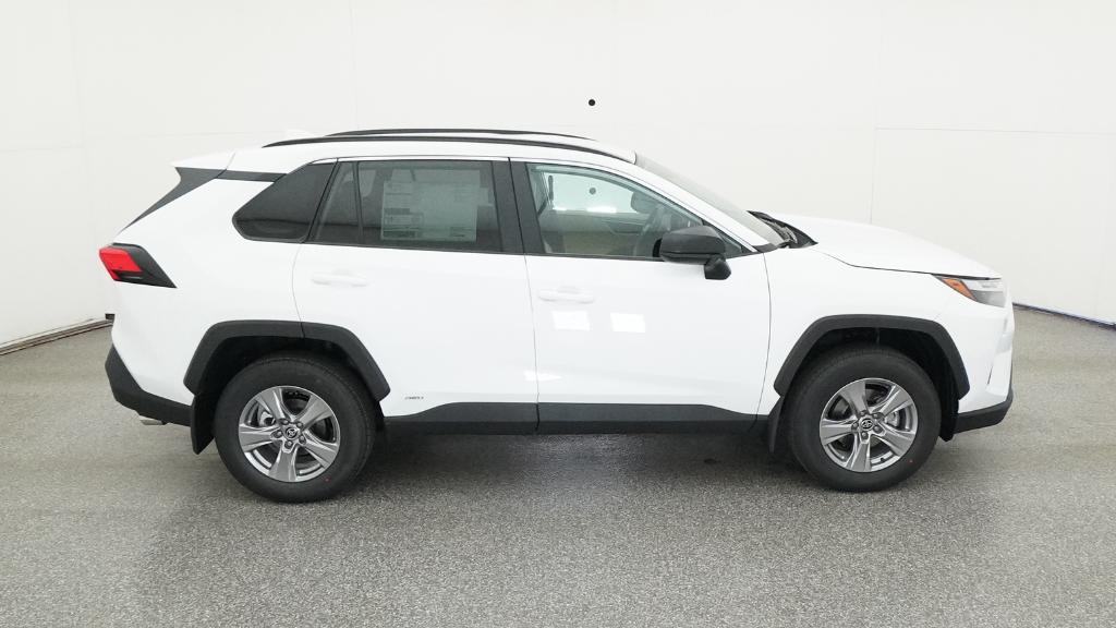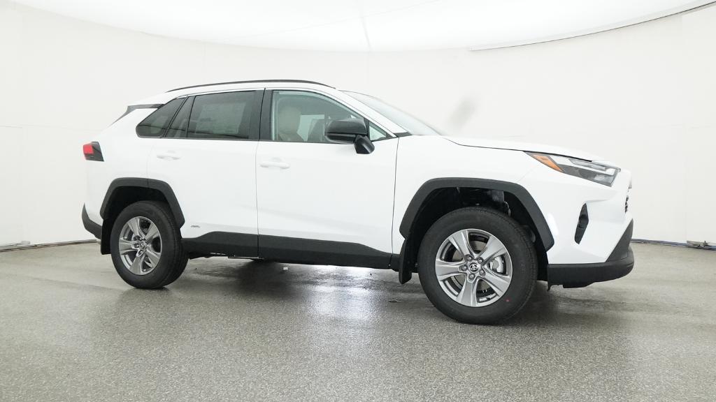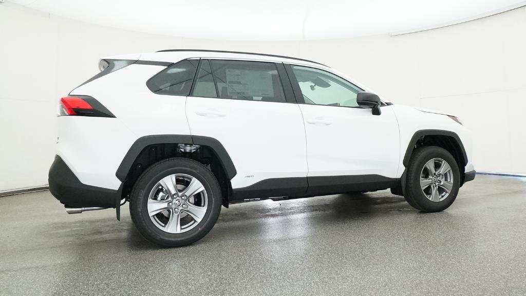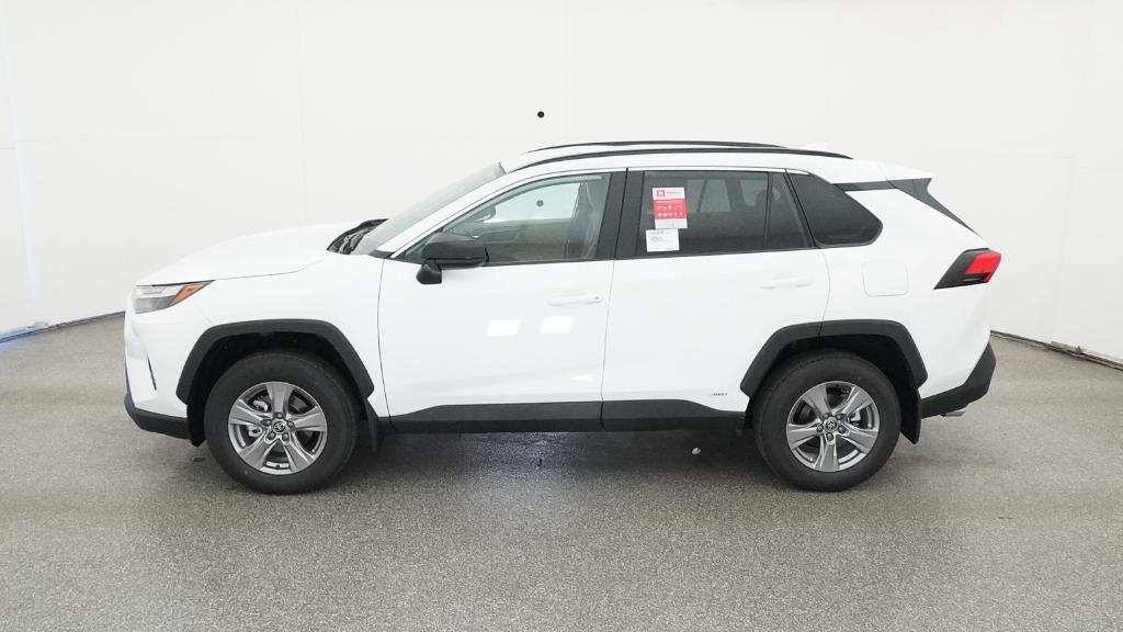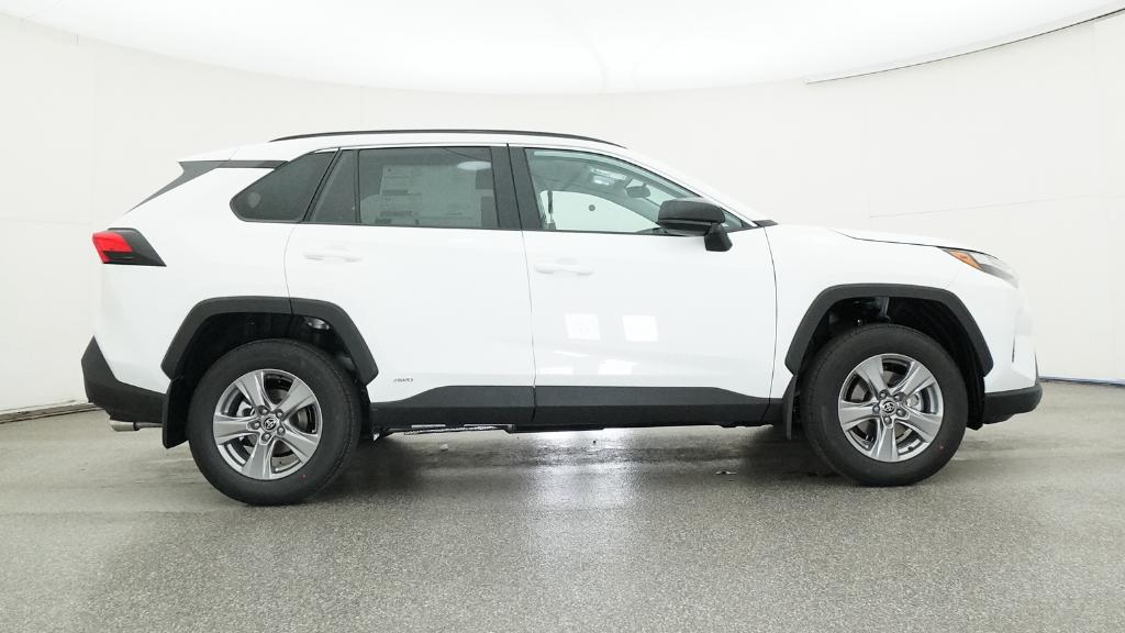 2025 Toyota RAV4 Hybrid LE Ice Cap AWD eCVT 2.5L 4-Cylinder4-Wheel Disc Brakes, 6 Speakers, ABS brakes, Air Conditioning, Alloy wheels, AM/FM radio: SiriusXM, Auto High-beam Headlights, Automatic temperature control, Brake assist, Bumpers: body-color, Driver door bin, Driver vanity mirror, Dual front impact airbags, Dual front side impact airbags, Electronic Stability Control, Emergency communication system: Safety Connect (1-year trial), Exterior Parking Camera Rear, Fabric Seat Trim, Four wheel independent suspension, Front anti-roll bar, Front Bucket Seats, Front Center Armrest, Front dual zone A/C, Front reading lights, Illuminated entry, Knee airbag, Low tire pressure warning, Occupant sensing airbag, Outside temperature display, Overhead airbag, Overhead console, Panic alarm, Passenger door bin, Passenger vanity mirror, Power door mirrors, Power steering, Power windows, Radio data system, Radio: AM/FM/XM Audio System, Rear anti-roll bar, Rear seat center armrest, Rear window defroster, Rear window wiper, Remote keyless entry, Speed control, Speed-sensing steering, Split folding rear seat, Spoiler, Steering wheel mounted audio controls, Telescoping steering wheel, Tilt steering wheel, Traction control, Trip computer, Wheels: 17 x 7.0J Silver Aluminum Alloy.