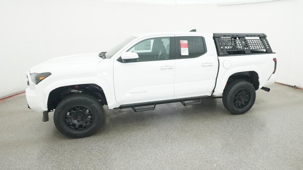 2025 Toyota Tacoma SR5 Ice Cap 4WD 8-Speed Automatic 2.4L 4-Cylinder3.583 Axle Ratio, 4-Wheel Disc Brakes, 6 Speakers, ABS brakes, Air Conditioning, Alloy wheels, AM/FM radio: SiriusXM, Anti-whiplash front head restraints, Apple CarPlay/Android Auto, Auto High-beam Headlights, Auto-dimming Rear-View mirror, Brake assist, Bumpers: body-color, Driver door bin, Dual front impact airbags, Dual front side impact airbags, Electronic Stability Control, Emergency communication system: Safety Connect (1-year trial), Exterior Parking Camera Rear, Fabric Seat Trim, Four wheel independent suspension, Front anti-roll bar, Front Bucket Seats, Front Center Armrest, Front fog lights, Front reading lights, Fully automatic headlights, Heated door mirrors, Illuminated entry, JBL Premium Audio, Knee airbag, Low tire pressure warning, Occupant sensing airbag, Outside temperature display, Overhead airbag, Overhead console, Panic alarm, Passenger door bin, Power door mirrors, Power steering, Power windows, Radio: 8 Toyota Audio Multimedia, Rear step bumper, Rear window defroster, Remote keyless entry, Speed control, Speed-sensing steering, Split folding rear seat, Steering wheel mounted audio controls, Tachometer, Telescoping steering wheel, Tilt steering wheel, Traction control, Trip computer, Variably intermittent wipers, Wheels: 17 Styled Alloy.