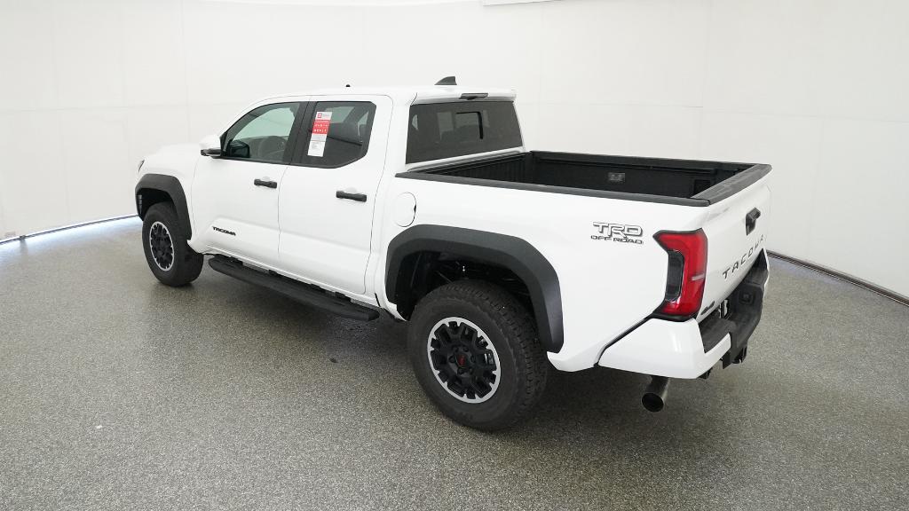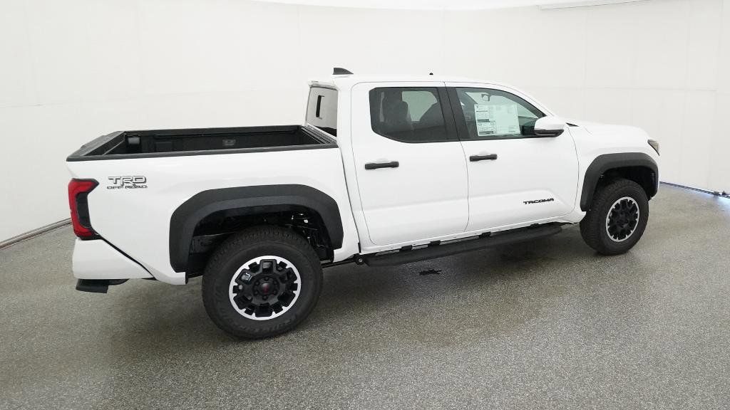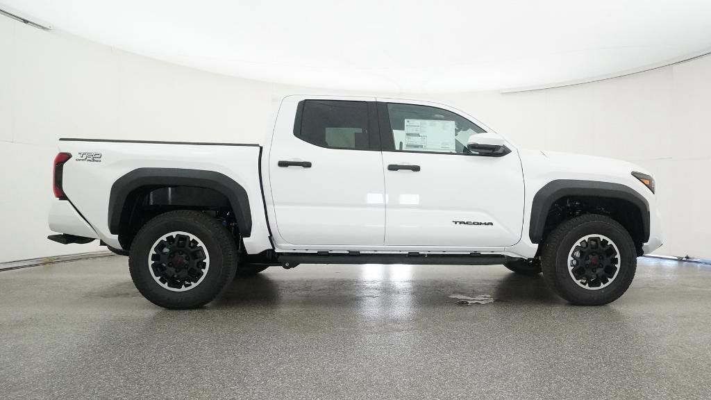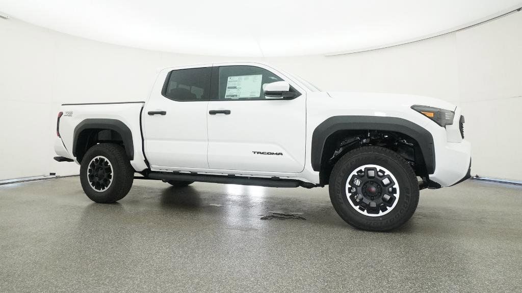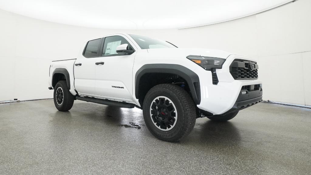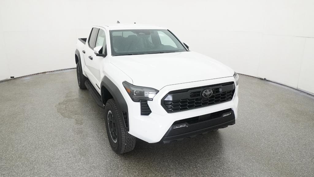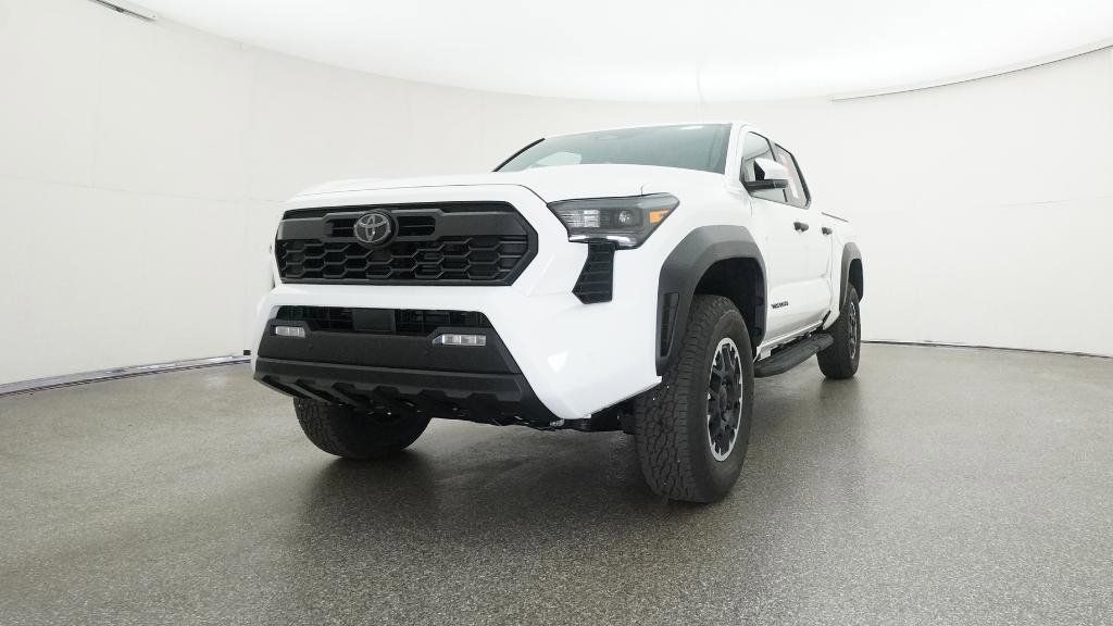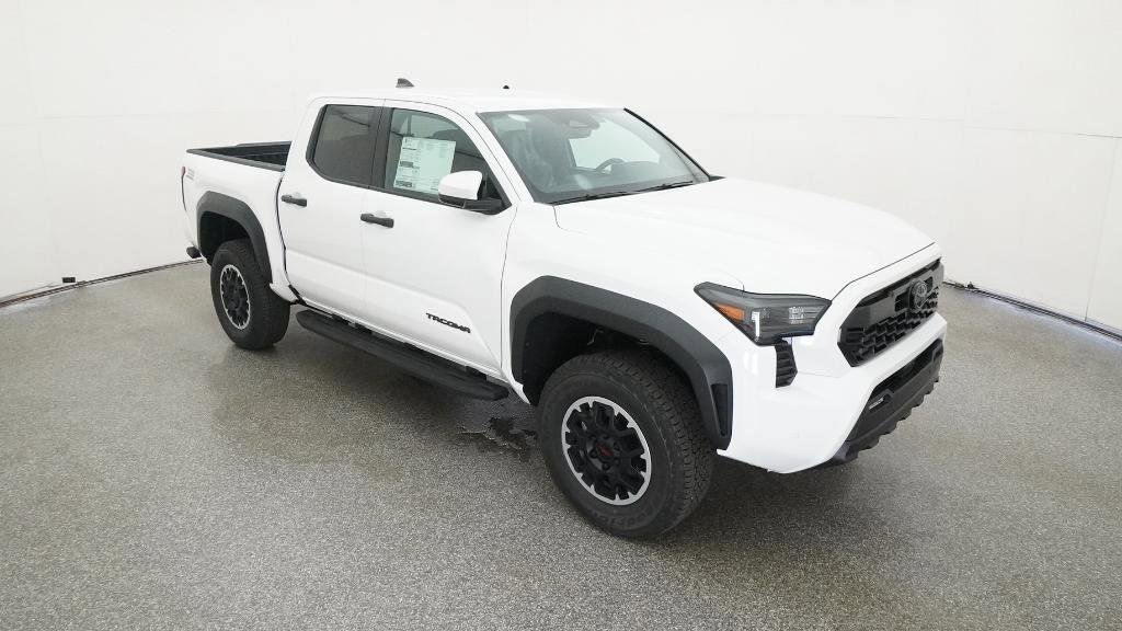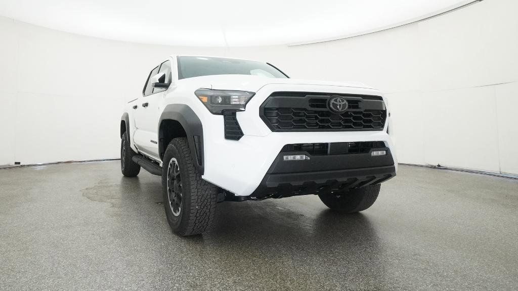 2025 Toyota Tacoma TRD Off-Road Ice Cap 4WD 8-Speed Automatic 2.4L 4-Cylinder3.583 Axle Ratio, 4-Wheel Disc Brakes, 6 Speakers, ABS brakes, Air Conditioning, Alloy wheels, AM/FM radio: SiriusXM, Anti-whiplash front head restraints, Apple CarPlay/Android Auto, Auto High-beam Headlights, Auto-dimming Rear-View mirror, Automatic temperature control, Brake assist, Bumpers: body-color, Driver door bin, Driver vanity mirror, Dual front impact airbags, Dual front side impact airbags, Electronic Stability Control, Emergency communication system: Safety Connect (1-year trial), Exterior Parking Camera Rear, Fabric Seat Trim, Four wheel independent suspension, Front anti-roll bar, Front Bucket Seats, Front Center Armrest, Front fog lights, Front reading lights, Fully automatic headlights, Heated door mirrors, Illuminated entry, JBL Premium Audio, Knee airbag, Leather Shift Knob, Leather steering wheel, Low tire pressure warning, Occupant sensing airbag, Outside temperature display, Overhead airbag, Overhead console, Panic alarm, Passenger door bin, Passenger vanity mirror, Power door mirrors, Power steering, Power windows, Radio: 8 Toyota Audio Multimedia, Rear step bumper, Rear window defroster, Remote keyless entry, Security system, SofTex Seat Trim, Speed control, Speed-sensing steering, Split folding rear seat, Steering wheel mounted audio controls, Tachometer, Telescoping steering wheel, Tilt steering wheel, Traction control, Trip computer, Turn signal indicator mirrors, Variably intermittent wipers, Wheels: 17 TRD Off-Road Alloy.