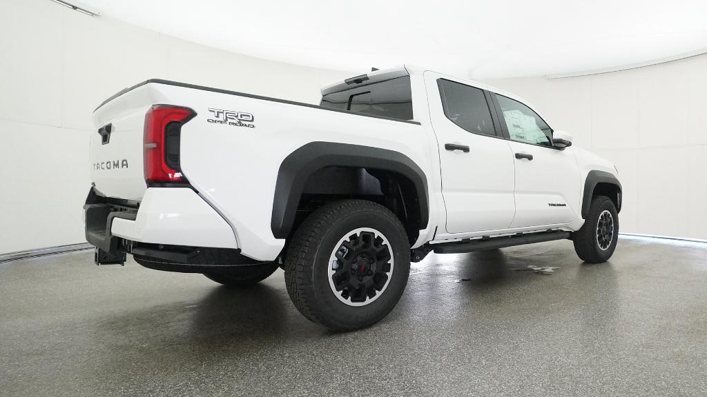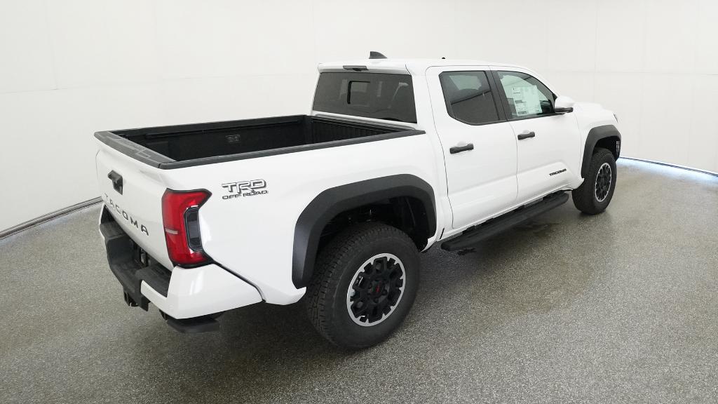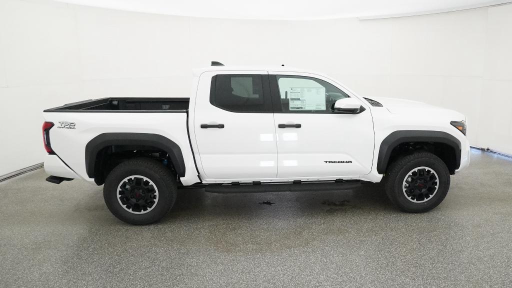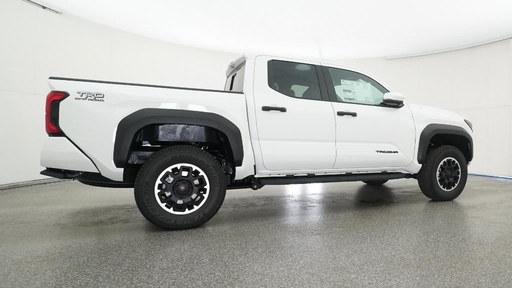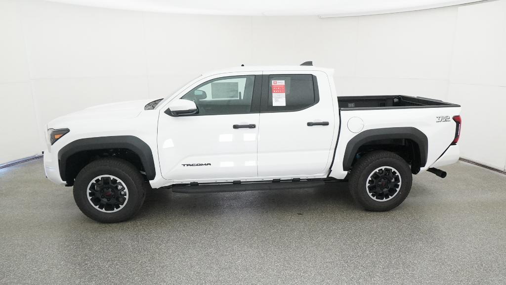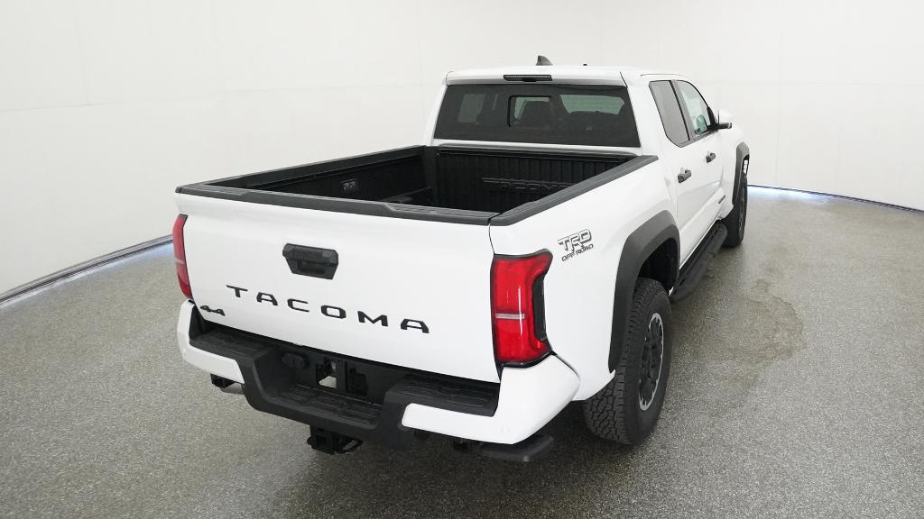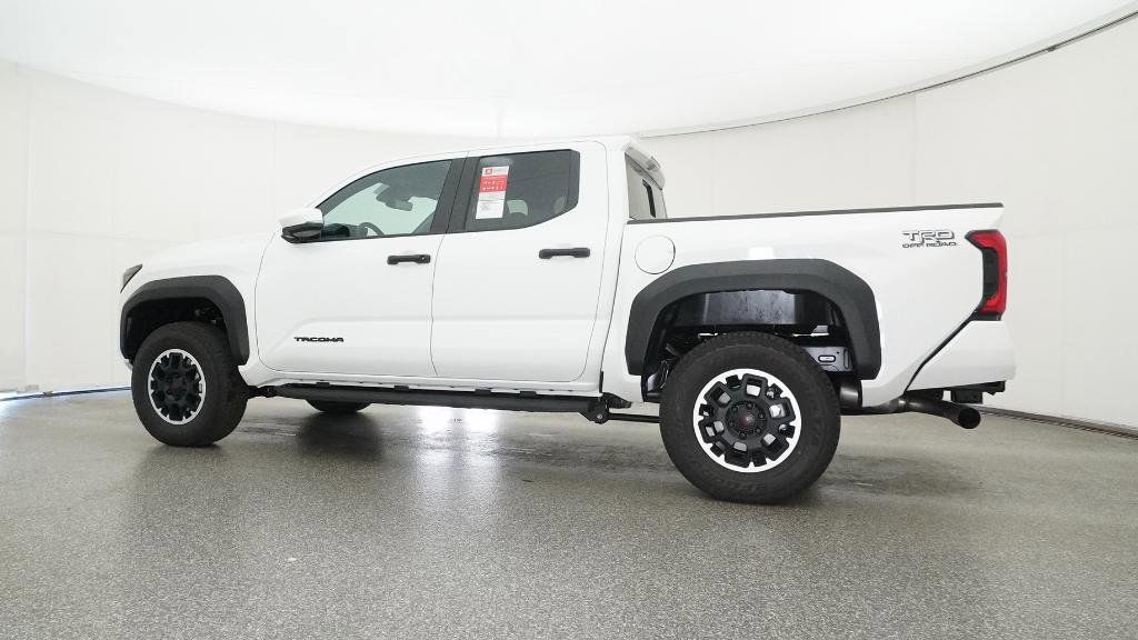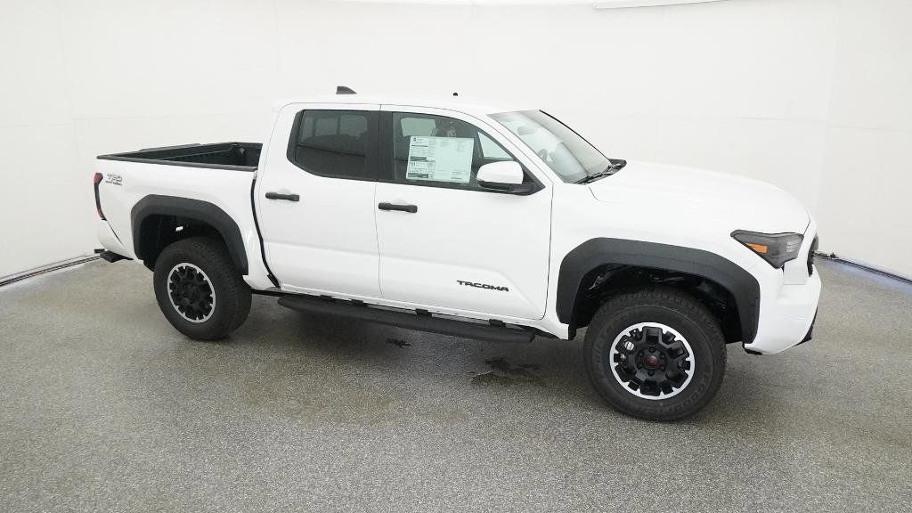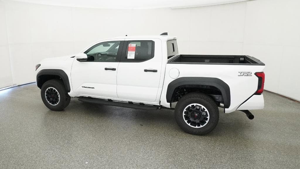 2025 Toyota Tacoma TRD Off-Road Ice Cap 4WD 8-Speed Automatic 2.4L 4-Cylinder3.583 Axle Ratio, 4-Wheel Disc Brakes, 6 Speakers, ABS brakes, Air Conditioning, Alloy wheels, AM/FM radio: SiriusXM, Anti-whiplash front head restraints, Apple CarPlay/Android Auto, Auto High-beam Headlights, Auto-dimming Rear-View mirror, Automatic temperature control, Brake assist, Bumpers: body-color, Driver door bin, Driver vanity mirror, Dual front impact airbags, Dual front side impact airbags, Electronic Stability Control, Emergency communication system: Safety Connect (1-year trial), Exterior Parking Camera Rear, Fabric Seat Trim, Four wheel independent suspension, Front anti-roll bar, Front Bucket Seats, Front Center Armrest, Front fog lights, Front reading lights, Fully automatic headlights, Heated door mirrors, Illuminated entry, JBL Premium Audio, Knee airbag, Leather Shift Knob, Leather steering wheel, Low tire pressure warning, Occupant sensing airbag, Outside temperature display, Overhead airbag, Overhead console, Panic alarm, Passenger door bin, Passenger vanity mirror, Power door mirrors, Power steering, Power windows, Radio: 8 Toyota Audio Multimedia, Rear step bumper, Rear window defroster, Remote keyless entry, Security system, SofTex Seat Trim, Speed control, Speed-sensing steering, Split folding rear seat, Steering wheel mounted audio controls, Tachometer, Telescoping steering wheel, Tilt steering wheel, Traction control, Trip computer, Turn signal indicator mirrors, Variably intermittent wipers, Wheels: 17 TRD Off-Road Alloy.