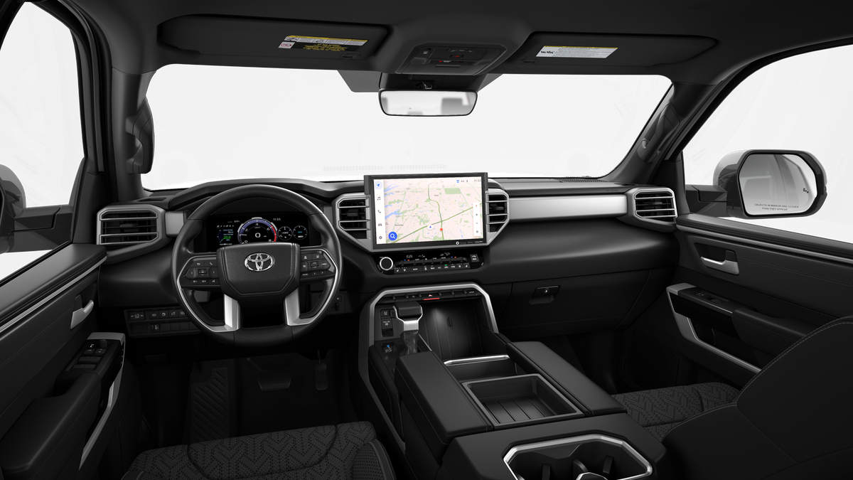 2025 Toyota Tundra Hybrid Limited Wind Chill Pearl 4WD 10-Speed Automatic 3.4L V620 x 8 Alloy Wheels, 3.31 Axle Ratio, 4-Wheel Disc Brakes, 9 Speakers, ABS brakes, Air Conditioning, Alloy wheels, AM/FM radio: SiriusXM, Apple CarPlay/Android Auto, Auto High-beam Headlights, Auto-dimming door mirrors, Auto-dimming Rear-View mirror, Automatic temperature control, Brake assist, Bumpers: body-color, Delay-off headlights, Driver door bin, Driver vanity mirror, Dual front impact airbags, Dual front side impact airbags, Electronic Stability Control, Emergency communication system: Safety Connect (10-year trial), Exterior Parking Camera Rear, Front anti-roll bar, Front Bucket Seats, Front Center Armrest, Front dual zone A/C, Front fog lights, Front reading lights, Front wheel independent suspension, Fully automatic headlights, Garage door transmitter: HomeLink, Heated & Ventilated Front Bucket Seats, Heated door mirrors, Heated front seats, Heated steering wheel, Illuminated entry, Knee airbag, Leather Shift Knob, Leather steering wheel, Low tire pressure warning, Memory seat, Navigation System, Occupant sensing airbag, Outside temperature display, Overhead airbag, Overhead console, Panic alarm, Passenger door bin, Passenger vanity mirror, Power door mirrors, Power driver seat, Power passenger seat, Power steering, Power windows, Radio data system, Radio: Audio Plus, Rear reading lights, Rear seat center armrest, Rear step bumper, Rear window defroster, Remote keyless entry, Security system, SofTex Seat Trim, Speed control, Speed-sensing steering, Split folding rear seat, Steering wheel mounted audio controls, Tachometer, Telescoping steering wheel, Tilt steering wheel, Traction control, Trip computer, Turn signal indicator mirrors, Variably intermittent wipers, Ventilated front seats, Voltmeter.
