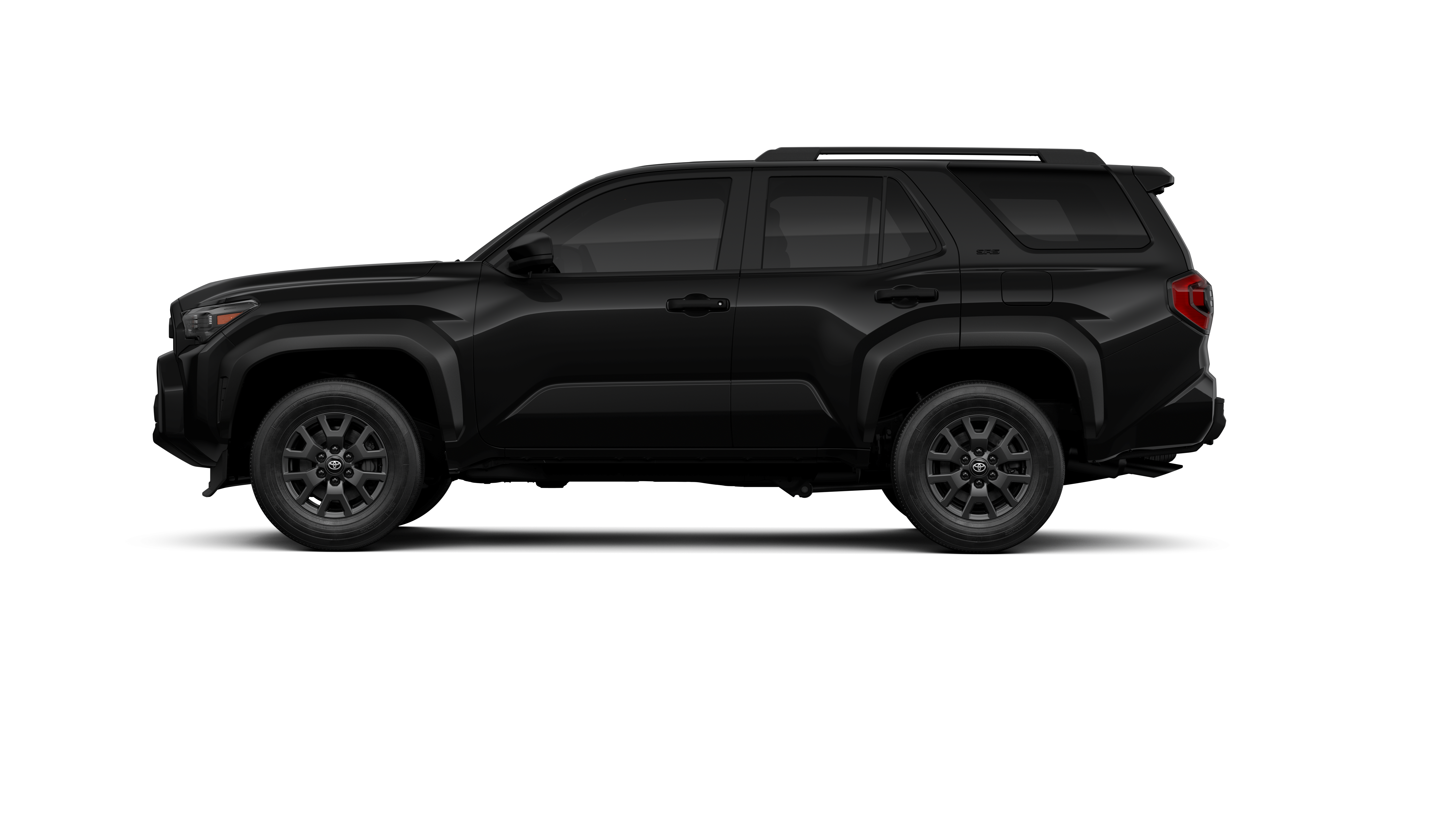 - Black horizontal-bar grille, mirror caps, door handles and overfenders; color-keyed rear spoiler; black "SR5" and "4RUNNER" badges