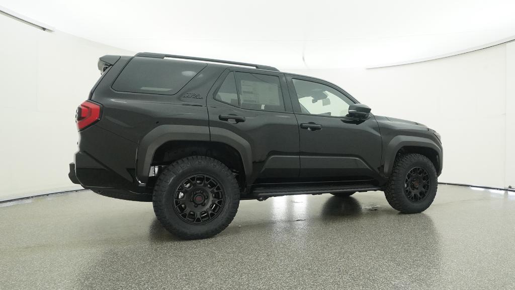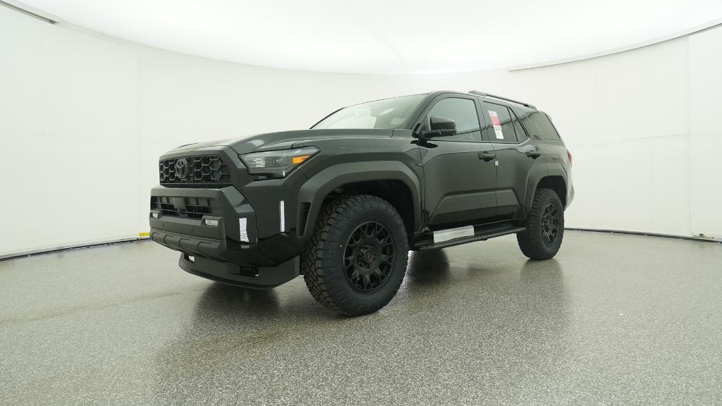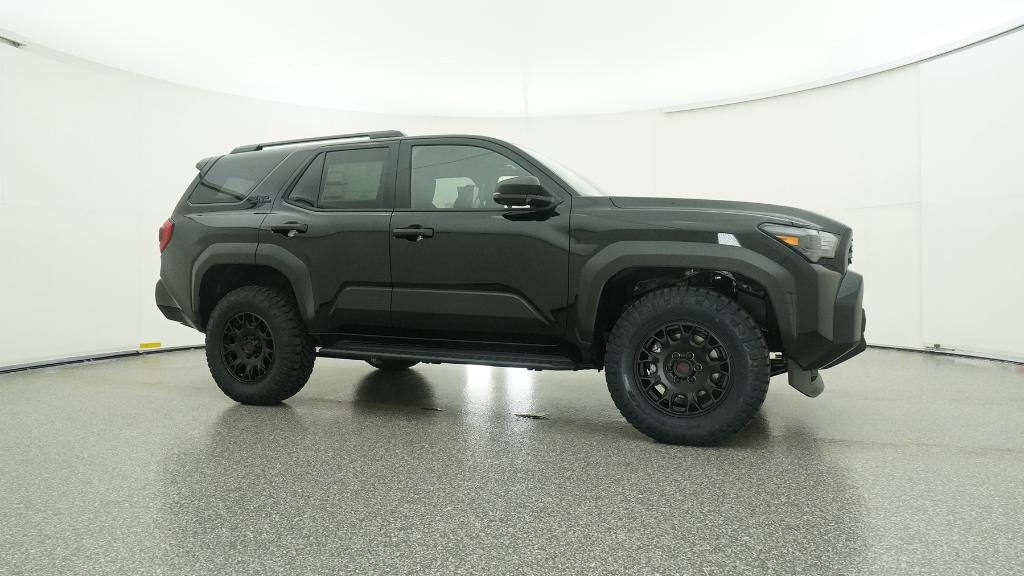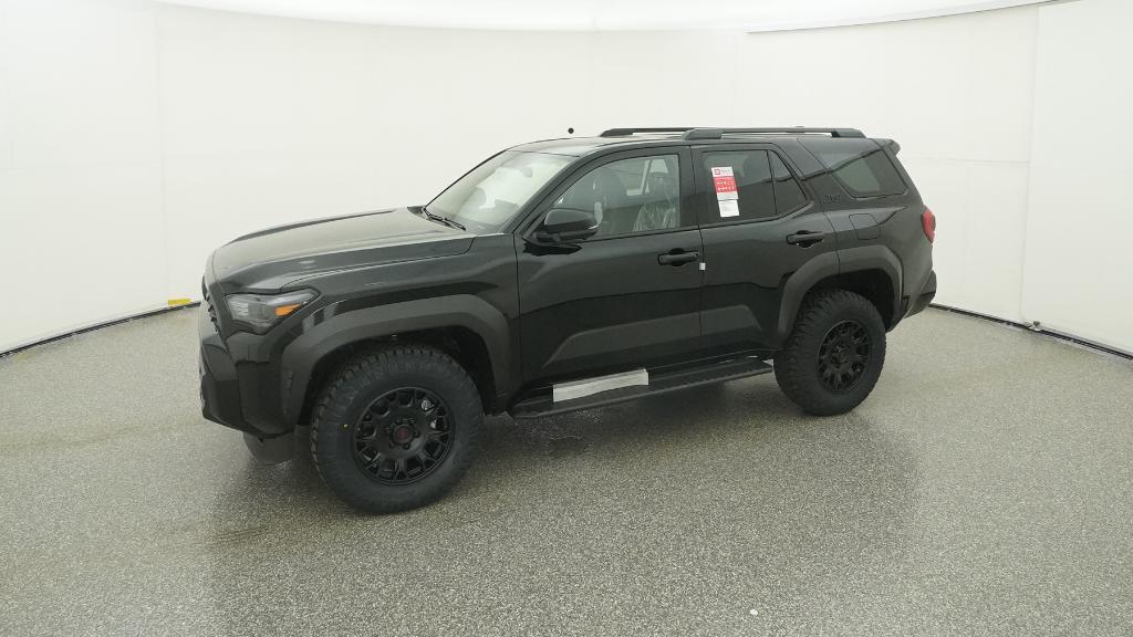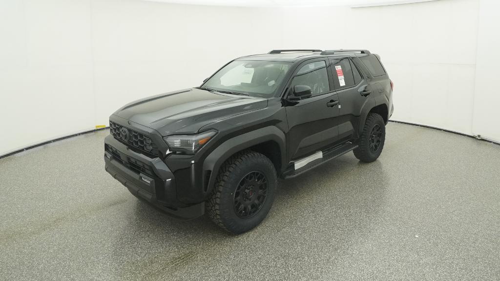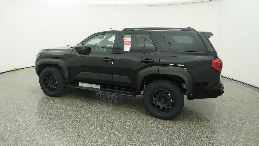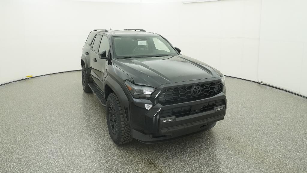 2026 Toyota 4Runner TRD Off-Road Premium Black 4WD 8-Speed Automatic 2.4L 4-Cylinder15 Speakers, 4-Wheel Disc Brakes, ABS brakes, Air Conditioning, Alloy wheels, AM/FM radio: SiriusXM, Anti-whiplash front head restraints, Apple CarPlay/Android Auto, Auto High-beam Headlights, Auto-dimming Rear-View mirror, Automatic temperature control, Brake assist, Bumpers: body-color, Compass, Driver door bin, Driver vanity mirror, Dual front impact airbags, Dual front side impact airbags, Electronic Stability Control, Emergency communication system: Safety Connect (1-year trial), Exterior Parking Camera Rear, Front anti-roll bar, Front Bucket Seats, Front Center Armrest, Front dual zone A/C, Front fog lights, Front reading lights, Front wheel independent suspension, Heated and Ventilated Front Bucket Seats, Heated door mirrors, Heated front seats, Illuminated entry, Knee airbag, Leather Shift Knob, Leather steering wheel, Low tire pressure warning, Memory seat, Navigation System, Occupant sensing airbag, Outside temperature display, Overhead airbag, Overhead console, Panic alarm, Passenger door bin, Passenger vanity mirror, Power door mirrors, Power driver seat, Power passenger seat, Power steering, Power windows, Radio: 14 Audio, Rear anti-roll bar, Rear seat center armrest, Rear side impact airbag, Rear window defroster, Rear window wiper, Remote keyless entry, Security system, SofTex Seat Trim, Speed control, Speed-sensing steering, Split folding rear seat, Spoiler, Steering wheel mounted audio controls, Tachometer, Telescoping steering wheel, Tilt steering wheel, Traction control, Trip computer, Turn signal indicator mirrors, Variably intermittent wipers, Ventilated front seats, Wheels: 18 Matte-Black Painted.