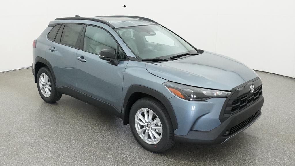 2026 Toyota Corolla Cross LE Celestite FWD CVT 2.0L I4 PDI DOHC 16V LEV3-SULEV30 169hp4-Wheel Disc Brakes, 6 Speakers, ABS brakes, Air Conditioning, Alloy wheels, AM/FM radio: SiriusXM, Auto High-beam Headlights, Automatic temperature control, Brake assist, Bumpers: body-color, Delay-off headlights, Driver door bin, Driver vanity mirror, Dual front impact airbags, Dual front side impact airbags, Electronic Stability Control, Emergency communication system: Safety Connect (10-year trial), Exterior Parking Camera Rear, Fabric Seat Trim, Front anti-roll bar, Front Bucket Seats, Front Center Armrest, Front reading lights, Front Seats, Front wheel independent suspension, Fully automatic headlights, Heated door mirrors, Illuminated entry, Knee airbag, Leather steering wheel, Low tire pressure warning, Occupant sensing airbag, Outside temperature display, Overhead airbag, Panic alarm, Passenger door bin, Passenger vanity mirror, Power door mirrors, Power steering, Power windows, Radio data system, Radio: 8 Toyota Audio Multimedia with 6 Speakers, Rear anti-roll bar, Rear side impact airbag, Rear window defroster, Rear window wiper, Remote keyless entry, Speed control, Split folding rear seat, Spoiler, Steering wheel mounted audio controls, Tachometer, Telescoping steering wheel, Tilt steering wheel, Traction control, Trip computer, Turn signal indicator mirrors, Variably intermittent wipers, Wheels: 17 Silver-Painted Alloy.
