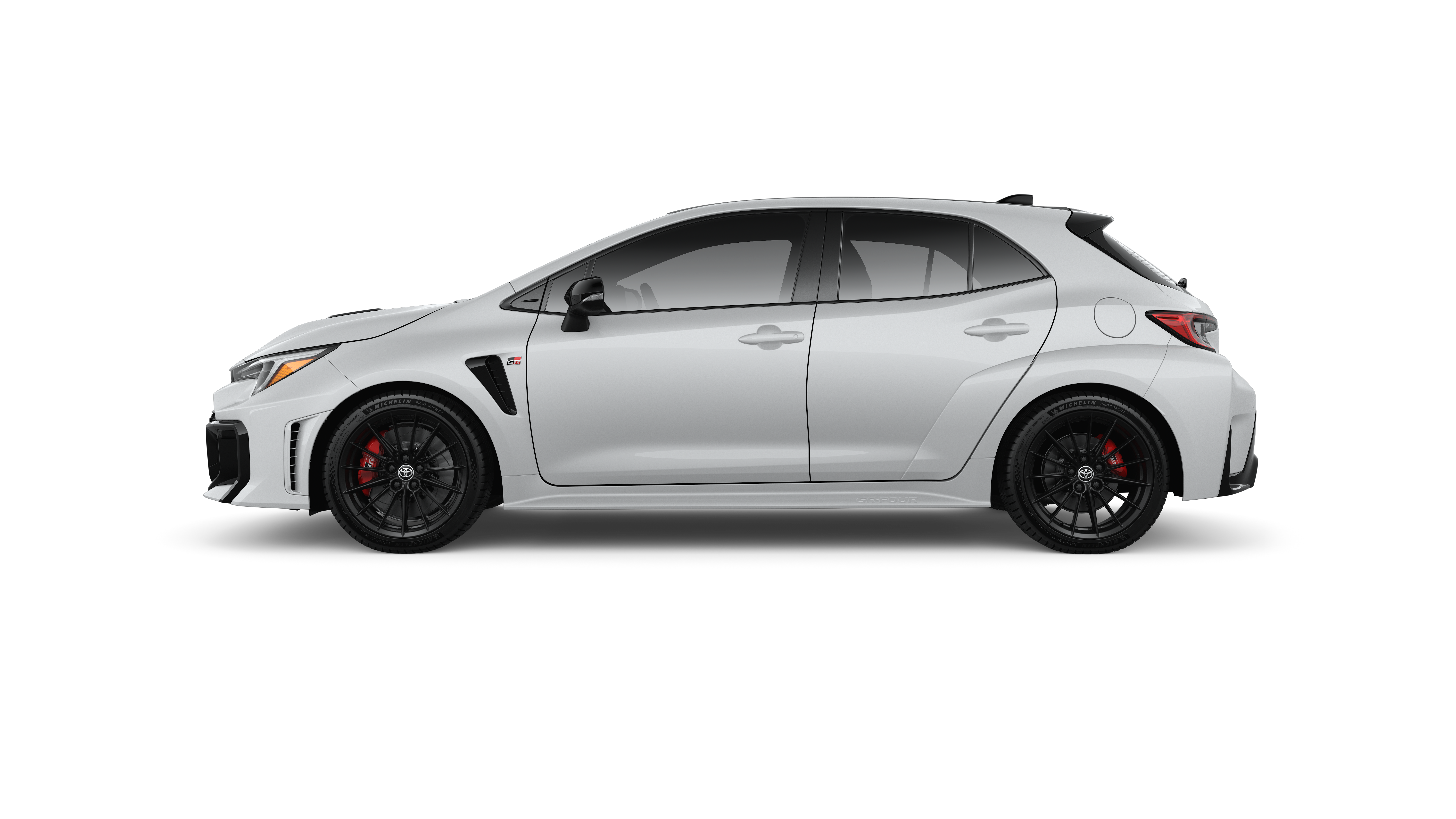 - Gloss-black front fender vent and GR badge