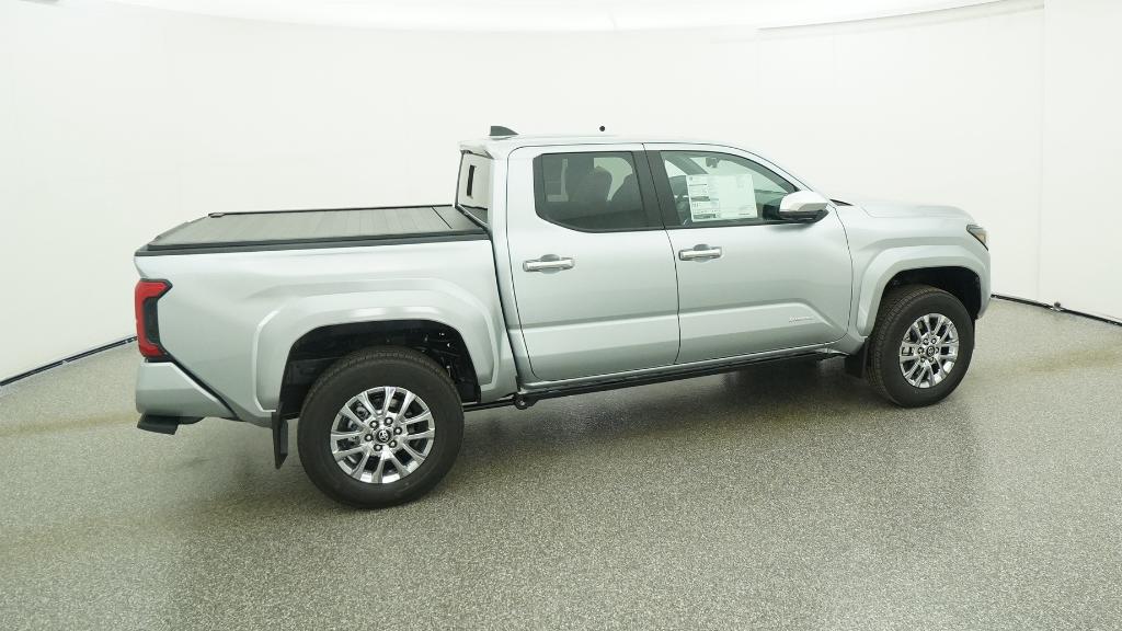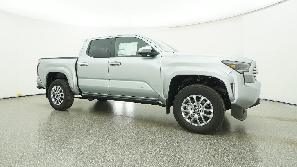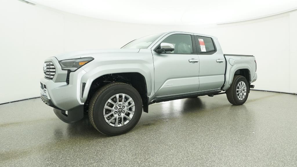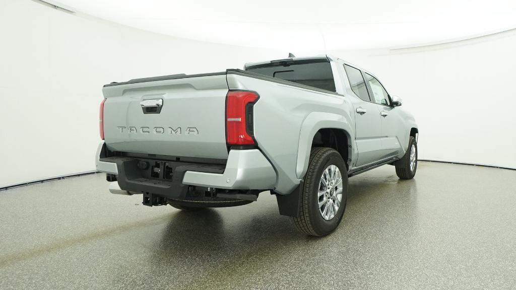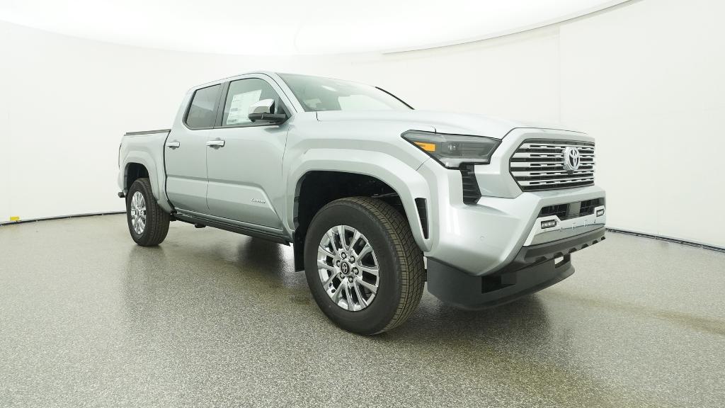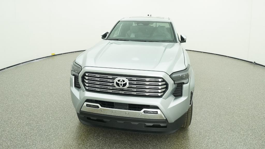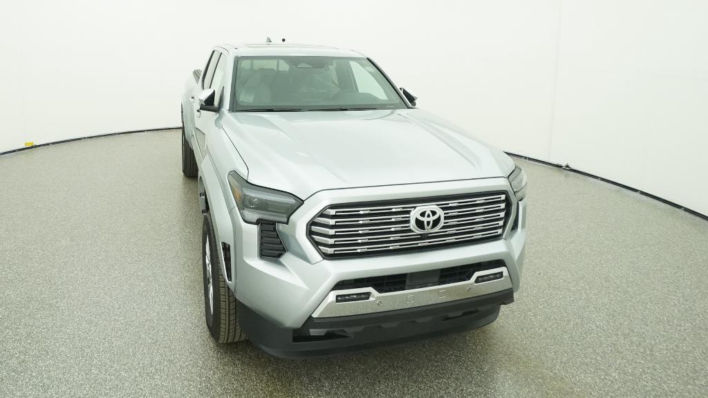 V6 2026 Toyota Tacoma Limited Celestial Silver Metallic 4WD 8-Speed Automatic 2.4L 4-Cylinder3.583 Axle Ratio, 4-Wheel Disc Brakes, 9 Speakers, ABS brakes, Air Conditioning, Alloy wheels, AM/FM radio: SiriusXM, Anti-whiplash front head restraints, Apple CarPlay/Android Auto, Auto High-beam Headlights, Auto-dimming Rear-View mirror, Automatic temperature control, Brake assist, Bumpers: body-color, Chrome wheels, Driver door bin, Driver vanity mirror, Dual front impact airbags, Dual front side impact airbags, Electronic Stability Control, Emergency communication system: Safety Connect (up to 10-year trial subscription), Exterior Parking Camera Rear, Four wheel independent suspension, Front anti-roll bar, Front Bucket Seats, Front Center Armrest, Front dual zone A/C, Front fog lights, Front reading lights, Fully automatic headlights, Garage door transmitter: HomeLink, Heads-Up Display, Heated and Ventilated Front Bucket Seats, Heated door mirrors, Heated front seats, Heated steering wheel, Illuminated entry, JBL Premium Audio, Knee airbag, Leather Shift Knob, Leather steering wheel, Low tire pressure warning, Navigation system: Drive Connect Cloud Navigation (1-year trial subscription), Occupant sensing airbag, Outside temperature display, Overhead airbag, Overhead console, Panic alarm, Passenger door bin, Passenger vanity mirror, Power door mirrors, Power driver seat, Power moonroof, Power passenger seat, Power steering, Power windows, Radio: 14 Toyota Audio Multimedia, Rear step bumper, Rear window defroster, Remote keyless entry, Security system, SofTex Seat Trim, Speed control, Speed-sensing steering, Split folding rear seat, Steering wheel mounted audio controls, Tachometer, Telescoping steering wheel, Tilt steering wheel, Traction control, Trip computer, Turn signal indicator mirrors, Variably intermittent wipers, Ventilated front seats, Wheels: 18 Chrome-Finished Alloy.