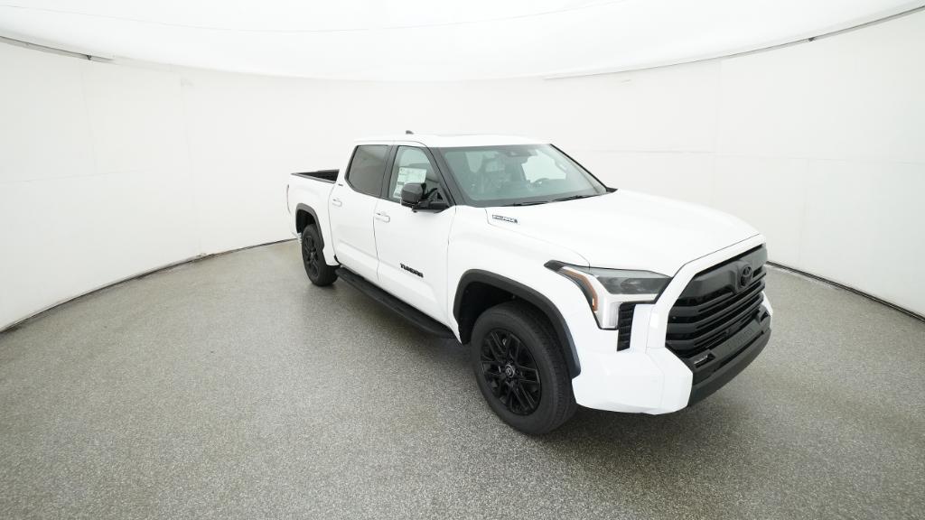 2026 Toyota Tundra Hybrid Limited Ice Cap 4WD 10-Speed Automatic 3.4L V620 Alloy Wheels, 3.31 Axle Ratio, 4-Wheel Disc Brakes, 9 Speakers, ABS brakes, Air Conditioning, Alloy wheels, AM/FM radio: SiriusXM, Apple CarPlay/Android Auto, Auto High-beam Headlights, Auto-dimming door mirrors, Auto-dimming Rear-View mirror, Automatic temperature control, Brake assist, Bumpers: body-color, Delay-off headlights, Driver door bin, Driver vanity mirror, Dual front impact airbags, Dual front side impact airbags, Electronic Stability Control, Emergency communication system: Safety Connect (up to 10-year trial subscription), Exterior Parking Camera Rear, Front anti-roll bar, Front Bucket Seats, Front Center Armrest, Front dual zone A/C, Front fog lights, Front reading lights, Front wheel independent suspension, Fully automatic headlights, Garage door transmitter: HomeLink, Heated and Ventilated Front Bucket Seats, Heated door mirrors, Heated front seats, Heated steering wheel, Illuminated entry, Knee airbag, Leather Seat Trim, Leather Shift Knob, Leather steering wheel, Low tire pressure warning, Memory seat, Navigation system: Drive Connect Cloud Navigation (1-year trial subscription), Occupant sensing airbag, Outside temperature display, Overhead airbag, Overhead console, Panic alarm, Passenger door bin, Passenger vanity mirror, Power door mirrors, Power driver seat, Power passenger seat, Power steering, Power windows, Radio data system, Radio: Audio Plus, Rear reading lights, Rear seat center armrest, Rear step bumper, Rear window defroster, Remote keyless entry, Security system, Speed control, Speed-sensing steering, Split folding rear seat, Steering wheel mounted audio controls, Tachometer, Telescoping steering wheel, Tilt steering wheel, Traction control, Trip computer, Turn signal indicator mirrors, Variably intermittent wipers, Ventilated front seats, Voltmeter.