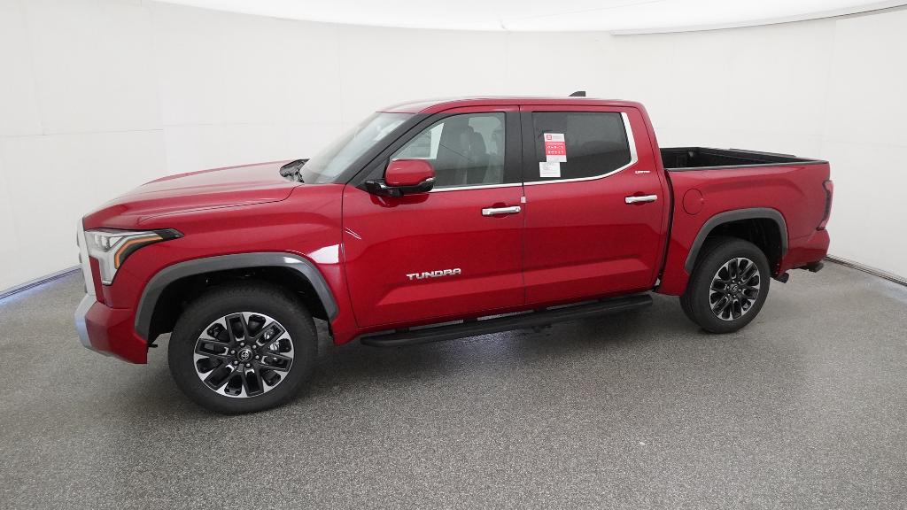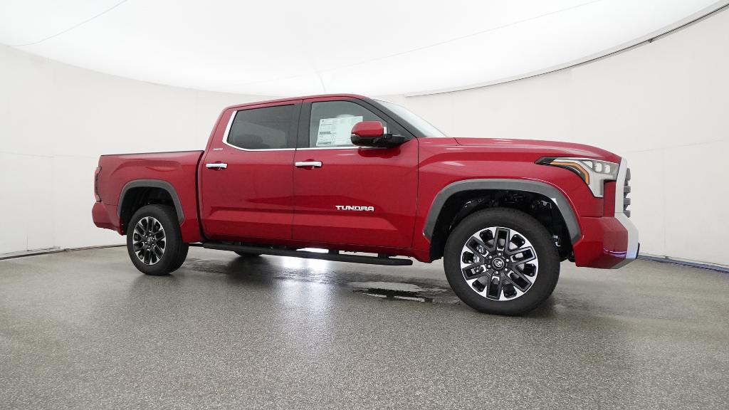 2026 Toyota Tundra Limited Supersonic Red 4WD 10-Speed Automatic 3.4L V620 Alloy Wheels, 3.31 Axle Ratio, 4-Wheel Disc Brakes, 8-Way Power Adjustable Heated/Ventilated Front Seats, 9 Speakers, ABS brakes, Air Conditioning, Alloy wheels, AM/FM radio: SiriusXM, Apple CarPlay/Android Auto, Auto High-beam Headlights, Auto-dimming door mirrors, Auto-dimming Rear-View mirror, Automatic temperature control, Brake assist, Bumpers: body-color, Delay-off headlights, Driver door bin, Driver vanity mirror, Dual front impact airbags, Dual front side impact airbags, Electronic Stability Control, Emergency communication system: Safety Connect (up to 10-year trial subscription), Exterior Parking Camera Rear, Front anti-roll bar, Front Bucket Seats, Front Center Armrest, Front dual zone A/C, Front fog lights, Front reading lights, Front wheel independent suspension, Fully automatic headlights, Garage door transmitter: HomeLink, Heated door mirrors, Heated front seats, Illuminated entry, Knee airbag, Leather Seat Trim, Leather Shift Knob, Leather steering wheel, Low tire pressure warning, Memory seat, Navigation system: Drive Connect Cloud Navigation (1-year trial subscription), Occupant sensing airbag, Outside temperature display, Overhead airbag, Overhead console, Panic alarm, Passenger door bin, Passenger vanity mirror, Power door mirrors, Power driver seat, Power passenger seat, Power steering, Power windows, Radio data system, Radio: Audio Plus, Rear reading lights, Rear seat center armrest, Rear step bumper, Rear window defroster, Remote keyless entry, Safety Connect, Security system, Speed control, Speed-sensing steering, Split folding rear seat, Steering wheel mounted audio controls, Tachometer, Telescoping steering wheel, Tilt steering wheel, Traction control, Trip computer, Turn signal indicator mirrors, Variably intermittent wipers, Ventilated front seats, Voltmeter.