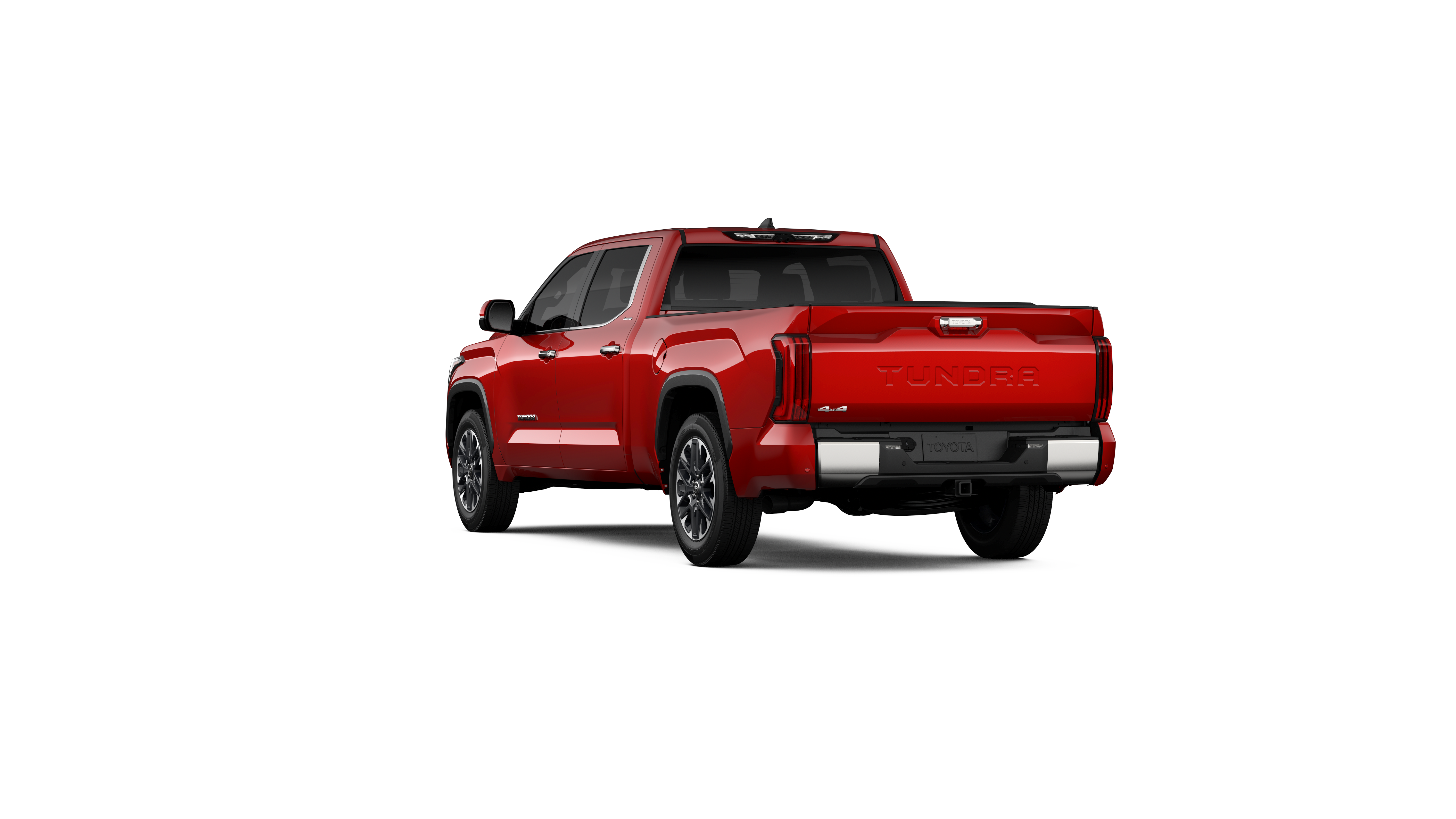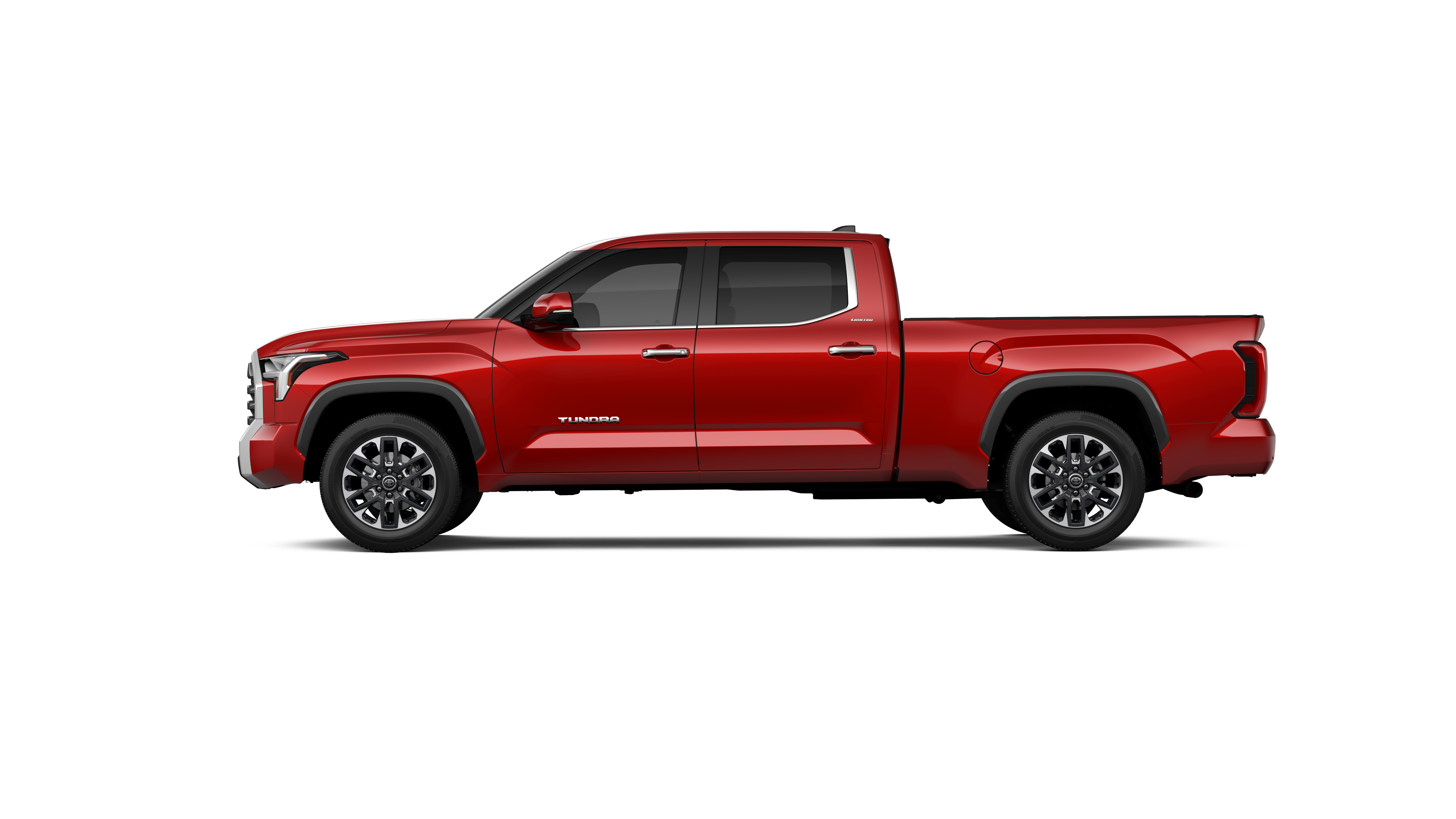- Chrome "TUNDRA" and "LIMITED" door badges, door handles and window molding; color-keyed mirror caps and tailgate spoiler; gray-painted overfenders
