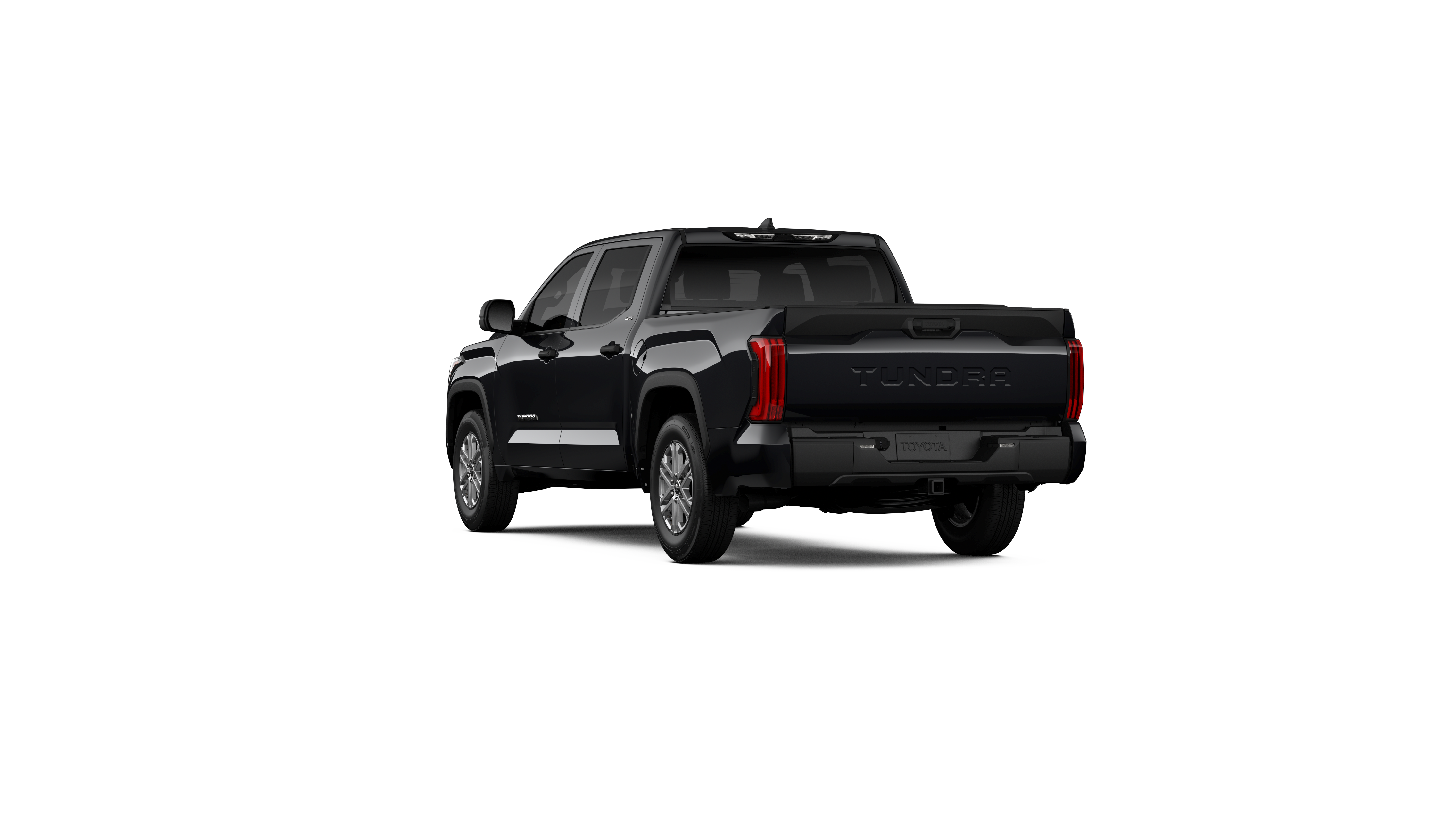 - Chrome "TUNDRA" and "SR5" door badges; black door handles, window molding, mirror caps, tailgate spoiler and overfenders