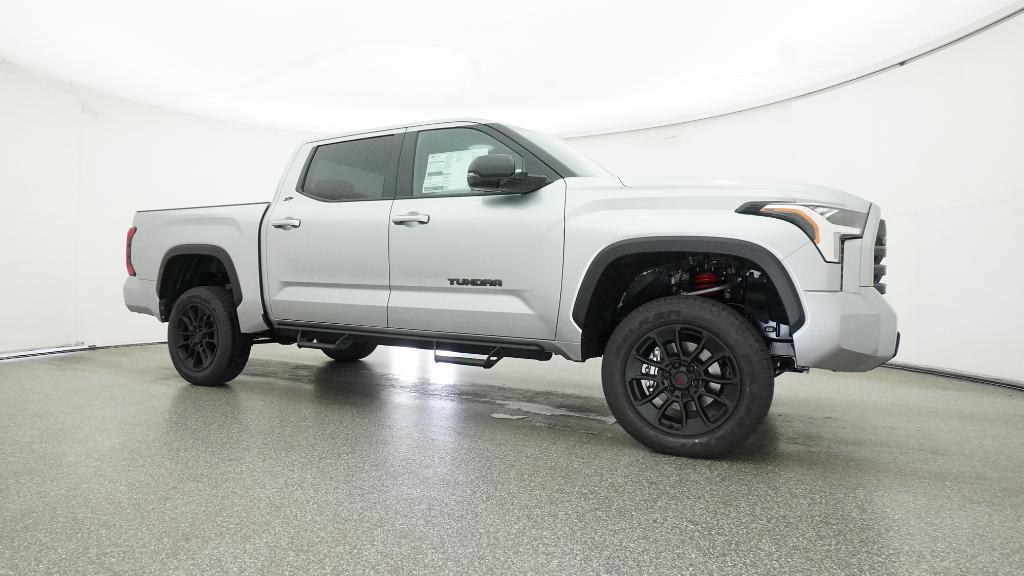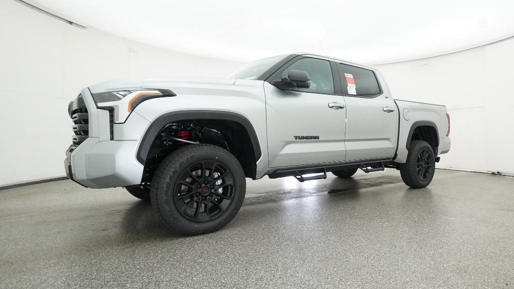 2026 Toyota Tundra SR5 Celestial Silver Metallic 4WD 10-Speed Automatic 3.4L V618 Alloy Wheels, 3.31 Axle Ratio, 4-Way Manual Front Seats, 4-Wheel Disc Brakes, 9 Speakers, ABS brakes, Air Conditioning, Alloy wheels, AM/FM radio: SiriusXM, Apple CarPlay/Android Auto, Auto High-beam Headlights, Automatic temperature control, Brake assist, Bumpers: body-color, Delay-off headlights, Driver door bin, Driver vanity mirror, Dual front impact airbags, Dual front side impact airbags, Electronic Stability Control, Emergency communication system: Safety Connect (up to 10-year trial subscription), Exterior Parking Camera Rear, Fabric Seat Trim (FB), Front anti-roll bar, Front Bucket Seats, Front Center Armrest, Front fog lights, Front reading lights, Front wheel independent suspension, Fully automatic headlights, Heated door mirrors, Illuminated entry, Knee airbag, Leather Seat Trim, Low tire pressure warning, Occupant sensing airbag, Outside temperature display, Overhead airbag, Overhead console, Panic alarm, Passenger door bin, Passenger vanity mirror, Power door mirrors, Power driver seat, Power steering, Power windows, Radio data system, Radio: Audio Multimedia System, Radio: Audio Plus, Rear reading lights, Rear step bumper, Rear window defroster, Remote keyless entry, Safety Connect, Security system, Speed control, Speed-sensing steering, Split folding rear seat, Steering wheel mounted audio controls, Tachometer, Telescoping steering wheel, Tilt steering wheel, Traction control, Trip computer, Variably intermittent wipers, Voltmeter.