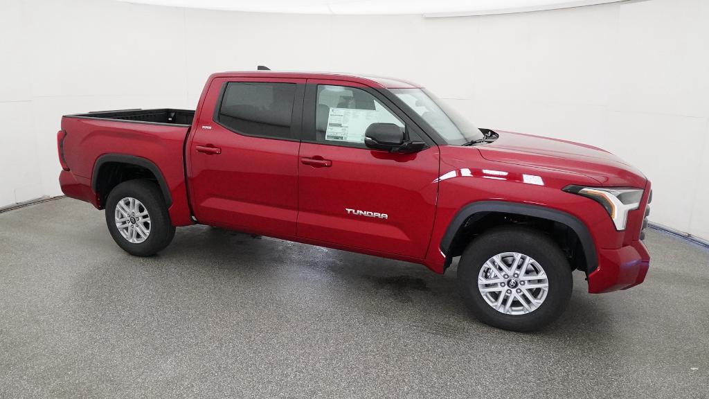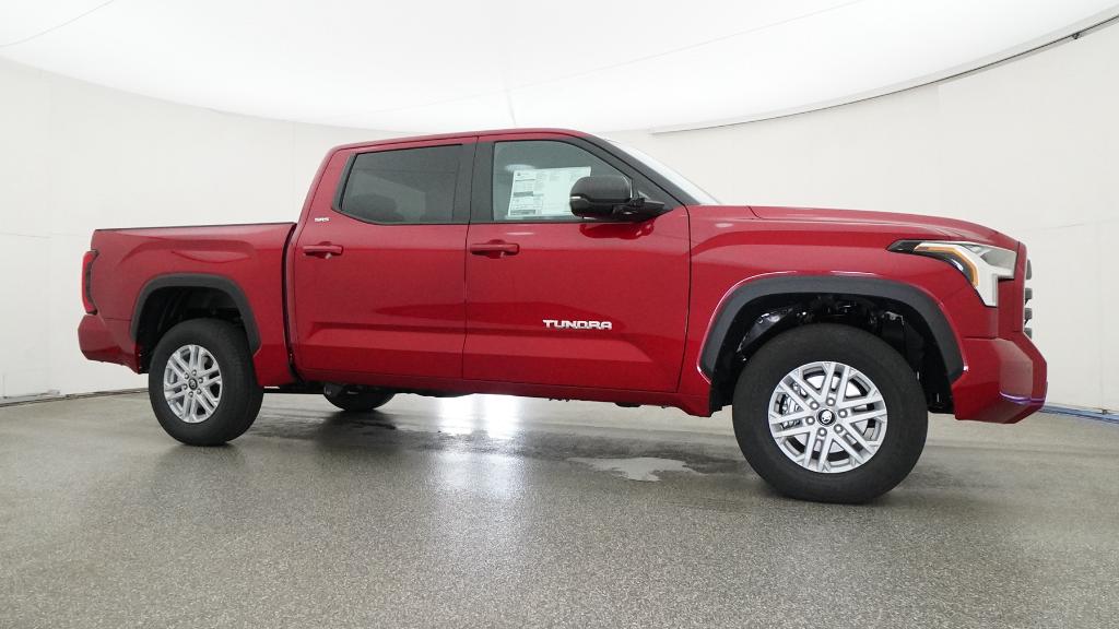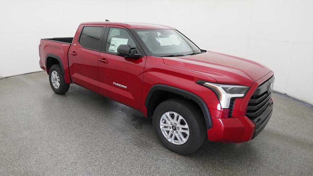 2026 Toyota Tundra SR5 Supersonic Red 4WD 10-Speed Automatic 3.4L V618 Alloy Wheels, 3.31 Axle Ratio, 4-Way Manual Front Seats, 4-Wheel Disc Brakes, 9 Speakers, ABS brakes, Air Conditioning, Alloy wheels, AM/FM radio: SiriusXM, Apple CarPlay/Android Auto, Auto High-beam Headlights, Automatic temperature control, Brake assist, Bumpers: body-color, Delay-off headlights, Driver door bin, Driver vanity mirror, Dual front impact airbags, Dual front side impact airbags, Electronic Stability Control, Emergency communication system: Safety Connect (up to 10-year trial subscription), Exterior Parking Camera Rear, Fabric Seat Trim (FB), Front anti-roll bar, Front Bucket Seats, Front Center Armrest, Front fog lights, Front reading lights, Front wheel independent suspension, Fully automatic headlights, Heated door mirrors, Illuminated entry, Knee airbag, Leather Seat Trim, Low tire pressure warning, Occupant sensing airbag, Outside temperature display, Overhead airbag, Overhead console, Panic alarm, Passenger door bin, Passenger vanity mirror, Power door mirrors, Power driver seat, Power steering, Power windows, Radio data system, Radio: Audio Multimedia System, Radio: Audio Plus, Rear reading lights, Rear step bumper, Rear window defroster, Remote keyless entry, Safety Connect, Security system, Speed control, Speed-sensing steering, Split folding rear seat, Steering wheel mounted audio controls, Tachometer, Telescoping steering wheel, Tilt steering wheel, Traction control, Trip computer, Variably intermittent wipers, Voltmeter.