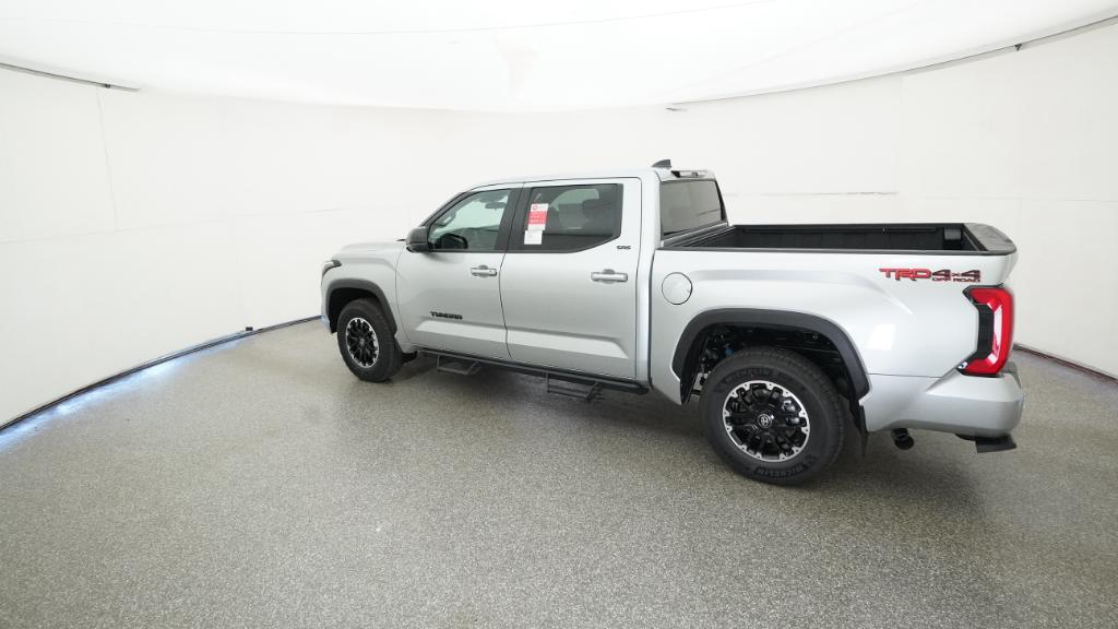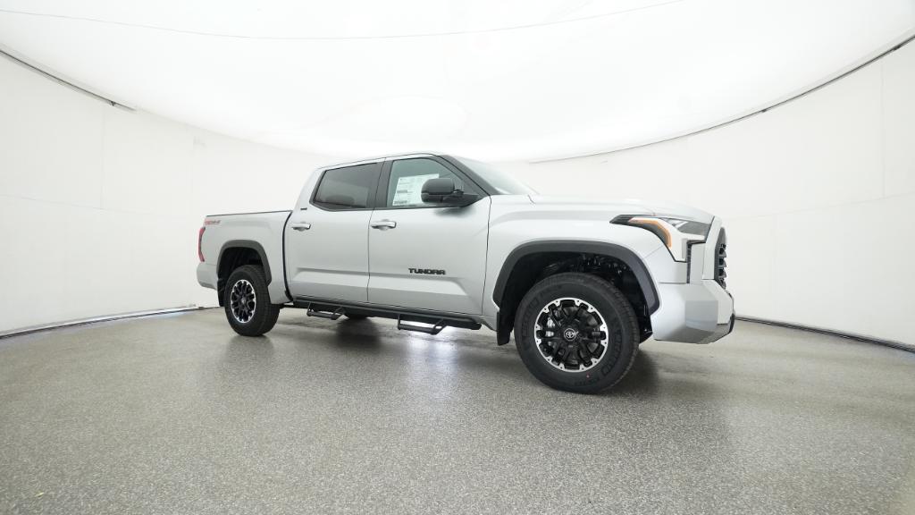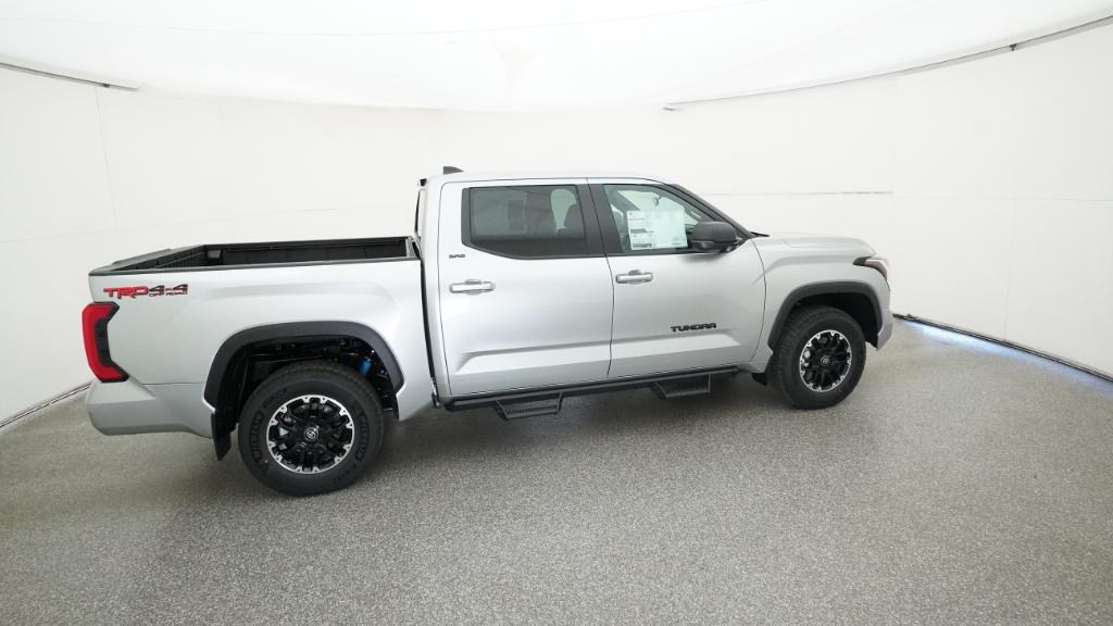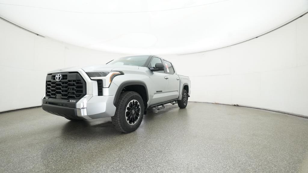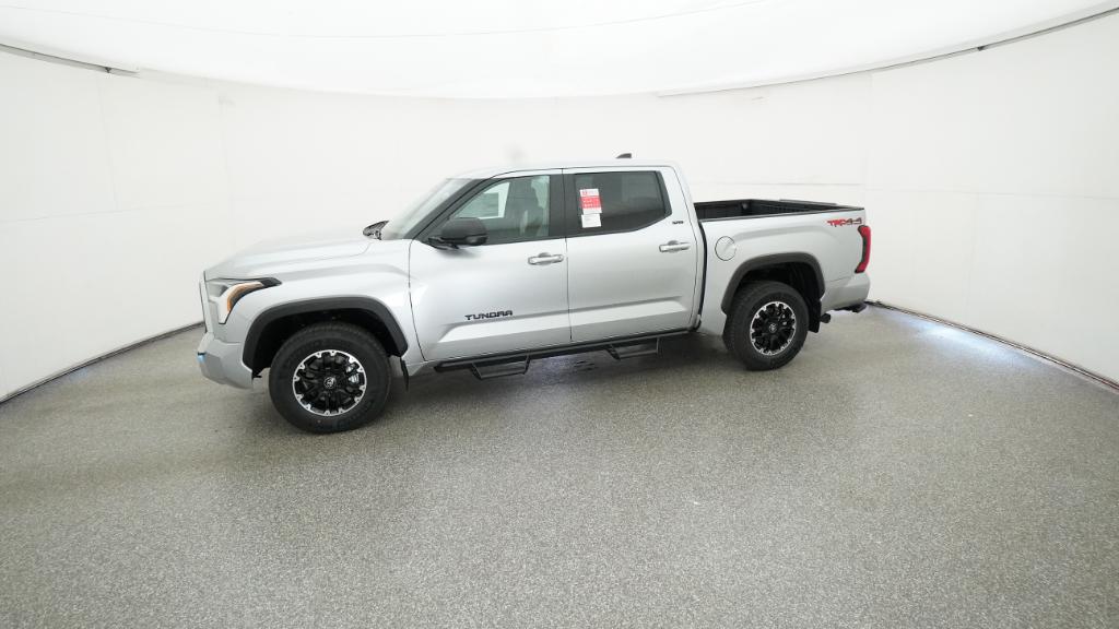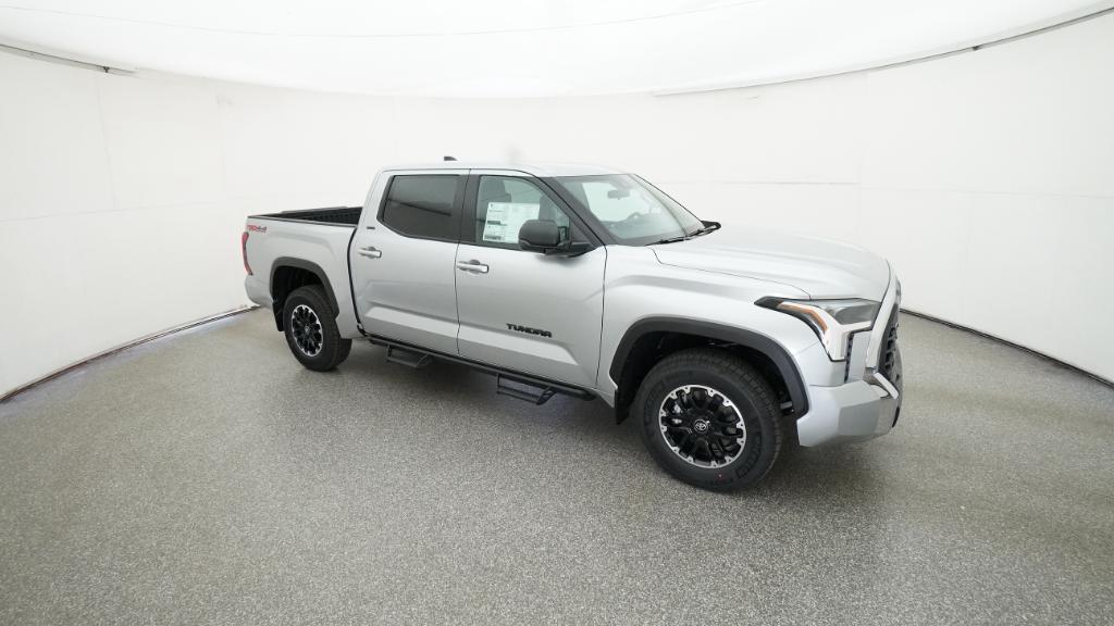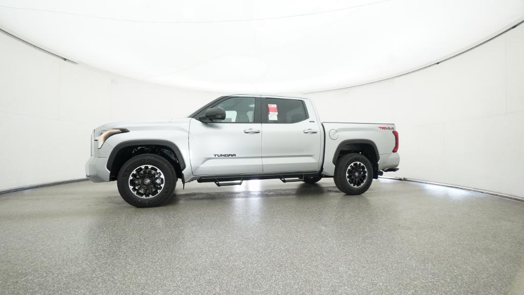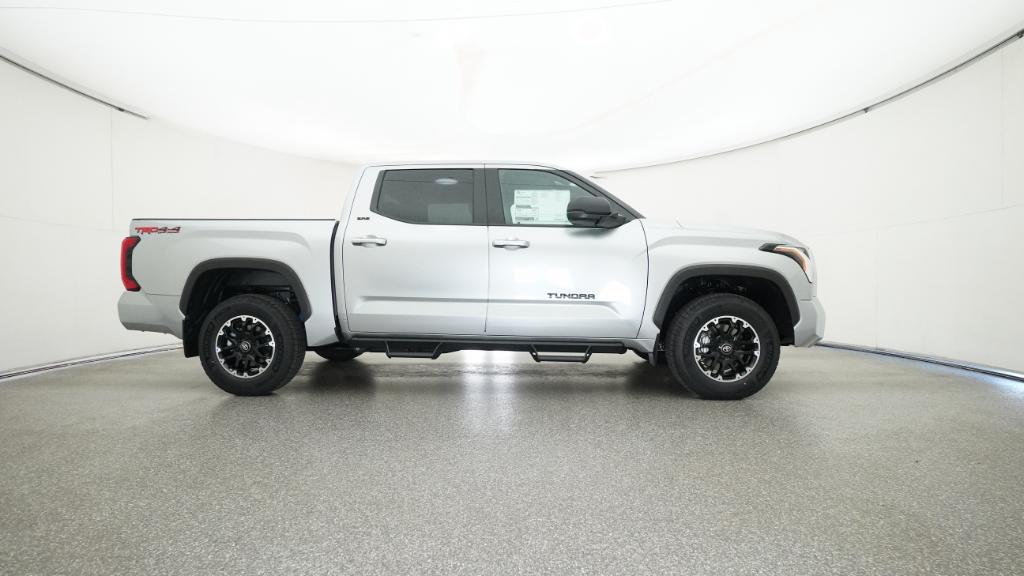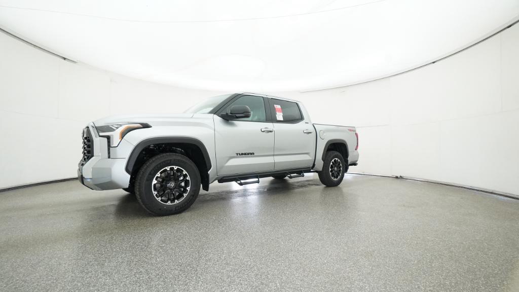 2026 Toyota Tundra SR5 Celestial Silver Metallic 4WD 10-Speed Automatic 3.4L V618 Alloy Wheels, 3.31 Axle Ratio, 4-Way Manual Front Seats, 4-Wheel Disc Brakes, 9 Speakers, ABS brakes, Air Conditioning, Alloy wheels, AM/FM radio: SiriusXM, Apple CarPlay/Android Auto, Auto High-beam Headlights, Automatic temperature control, Brake assist, Bumpers: body-color, Delay-off headlights, Driver door bin, Driver vanity mirror, Dual front impact airbags, Dual front side impact airbags, Electronic Stability Control, Emergency communication system: Safety Connect (up to 10-year trial subscription), Exterior Parking Camera Rear, Fabric Seat Trim (FB), Front anti-roll bar, Front Bucket Seats, Front Center Armrest, Front fog lights, Front reading lights, Front wheel independent suspension, Fully automatic headlights, Heated door mirrors, Illuminated entry, Knee airbag, Leather Seat Trim, Low tire pressure warning, Occupant sensing airbag, Outside temperature display, Overhead airbag, Overhead console, Panic alarm, Passenger door bin, Passenger vanity mirror, Power door mirrors, Power driver seat, Power steering, Power windows, Radio data system, Radio: Audio Multimedia System, Radio: Audio Plus, Rear reading lights, Rear step bumper, Rear window defroster, Remote keyless entry, Safety Connect, Security system, Speed control, Speed-sensing steering, Split folding rear seat, Steering wheel mounted audio controls, Tachometer, Telescoping steering wheel, Tilt steering wheel, Traction control, Trip computer, Variably intermittent wipers, Voltmeter.