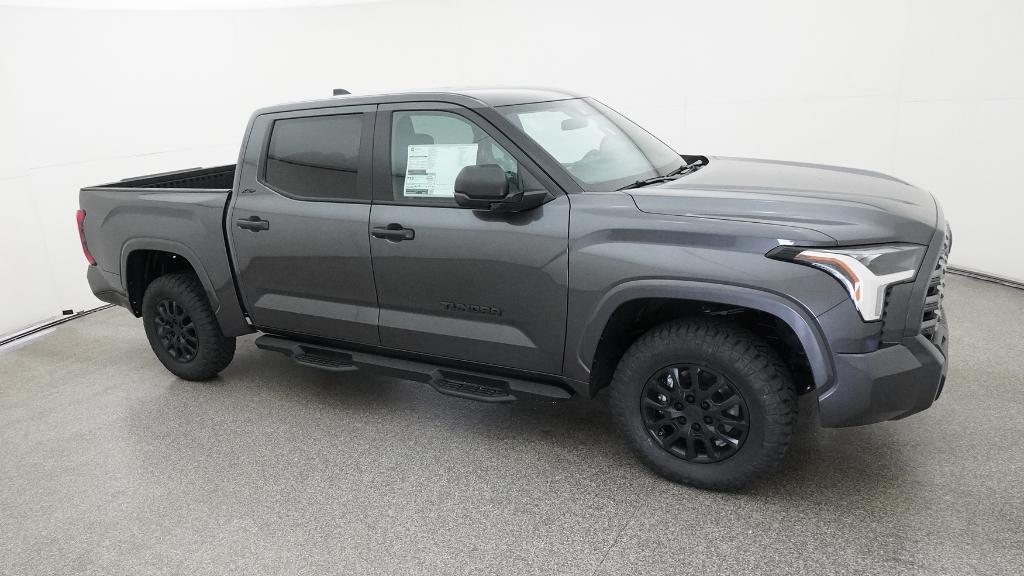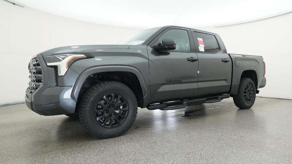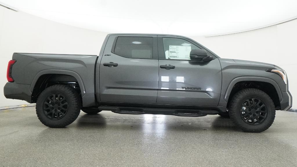 2026 Toyota Tundra SR5 Magnetic Gray Metallic 4WD 10-Speed Automatic 3.4L V618 Alloy Wheels, 3.31 Axle Ratio, 4-Way Manual Front Seats, 4-Wheel Disc Brakes, 9 Speakers, ABS brakes, Air Conditioning, Alloy wheels, AM/FM radio: SiriusXM, Apple CarPlay/Android Auto, Auto High-beam Headlights, Automatic temperature control, Brake assist, Bumpers: body-color, Delay-off headlights, Driver door bin, Driver vanity mirror, Dual front impact airbags, Dual front side impact airbags, Electronic Stability Control, Emergency communication system: Safety Connect (up to 10-year trial subscription), Exterior Parking Camera Rear, Fabric Seat Trim (FB), Front anti-roll bar, Front Bucket Seats, Front Center Armrest, Front fog lights, Front reading lights, Front wheel independent suspension, Fully automatic headlights, Heated door mirrors, Illuminated entry, Knee airbag, Leather Seat Trim, Low tire pressure warning, Occupant sensing airbag, Outside temperature display, Overhead airbag, Overhead console, Panic alarm, Passenger door bin, Passenger vanity mirror, Power door mirrors, Power driver seat, Power steering, Power windows, Radio data system, Radio: Audio Multimedia System, Radio: Audio Plus, Rear reading lights, Rear step bumper, Rear window defroster, Remote keyless entry, Safety Connect, Security system, Speed control, Speed-sensing steering, Split folding rear seat, Steering wheel mounted audio controls, Tachometer, Telescoping steering wheel, Tilt steering wheel, Traction control, Trip computer, Variably intermittent wipers, Voltmeter.