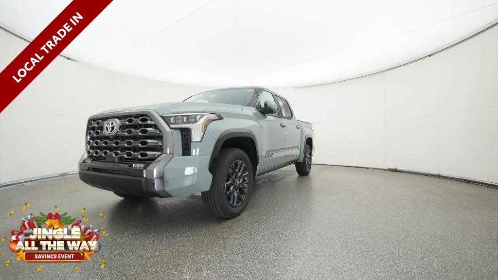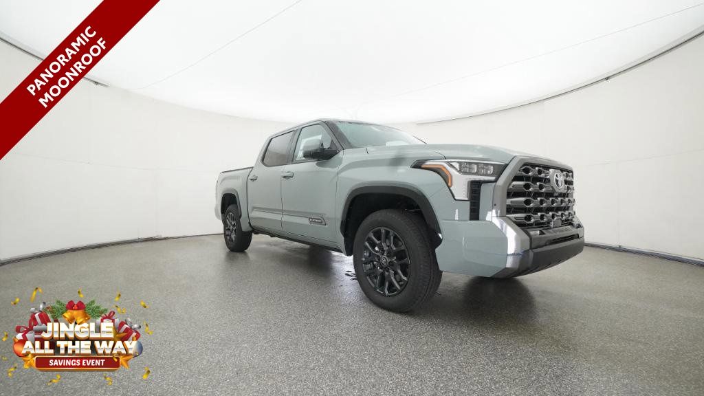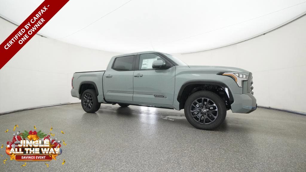 CERTIFIED BY CARFAX - ONE OWNER, REMAINDER OF FACTORY WARRANTY STILL APPLIES, BACKUP CAMERA, BLUETOOTH HANDS FREE, BLIND SPOT MONITORING, ANDROID AUTO, APPLE CARPLAY, 4X4/FOUR WHEEL DRIVE, BED LINER, HEATED LEATHER SEATS, POWER SEATS, LOCAL TRADE IN, NAVIGATION SYSTEM, PANORAMIC MOONROOF, POWER LIFTGATE, TOW PACKAGE, PUSH BUTTON START, LANE DEPARTURE, ADAPTIVE CRUISE CONTROL, NON SMOKER, Tundra Platinum 4X4, 4D CrewMax, 3.4L V6, 10-Speed Automatic, 4WD, Lunar Rock, Black w/Leather Seat Trim, 10-Way Power Adjustable Heated and Ventilated Front Seats, 12 Speakers, 3.31 Axle Ratio, 4-Wheel Disc Brakes, ABS brakes, Air Conditioning, Alloy wheels, AM/FM radio: SiriusXM, Apple CarPlay/Android Auto, Auto High-beam Headlights, Auto-dimming door mirrors, Auto-dimming Rear-View mirror, Automatic temperature control, Brake assist, Bumpers: body-color, Compass, Delay-off headlights, Driver door bin, Driver vanity mirror, Dual front impact airbags, Dual front side impact airbags, Electronic Stability Control, Emergency communication system: Safety Connect (up to 10-year trial subscription), Exterior Parking Camera Rear, Front anti-roll bar, Front Bucket Seats, Front Center Armrest, Front dual zone A/C, Front fog lights, Front reading lights, Front wheel independent suspension, Fully automatic headlights, Garage door transmitter: HomeLink, Head Up Display (HUD), Heated door mirrors, Heated front seats, Heated rear seats, Heated steering wheel, Illuminated entry, Knee airbag, Leather Shift Knob, Leather steering wheel, Low tire pressure warning, Memory seat, Navigation system: Drive Connect Cloud Navigation (1-year trial subscription), Occupant sensing airbag, Outside temperature display, Overhead airbag, Overhead console, Panic alarm, Passenger door bin, Passenger vanity mirror, Power door mirrors, Power driver seat, Power moonroof, Power passenger seat, Power Running Boards, Power steering, Power windows, Premium Leather Seat Trim, Radio data system, Radio: Premium Audio, Rain sensing wipers, Rear reading lights, Rear seat center armrest, Rear step bumper, Rear window defroster, Remote keyless entry, Safety Connect, Security system, Speed control, Speed-sensing steering, Speed-Sensitive Wipers, Split folding rear seat, Steering wheel memory, Steering wheel mounted audio controls, Tachometer, Telescoping steering wheel, Tilt steering wheel, Traction control, Trip computer, Turn signal indicator mirrors, Variably intermittent wipers, Ventilated front seats, Ventilated rear seats, Voltmeter, Wheels: 20" Dark Painted Alloy, Tundra Platinum 4X4, 4D CrewMax, 3.4L V6, 10-Speed Automatic, 4WD, Lunar Rock, Black w/Leather Seat Trim.