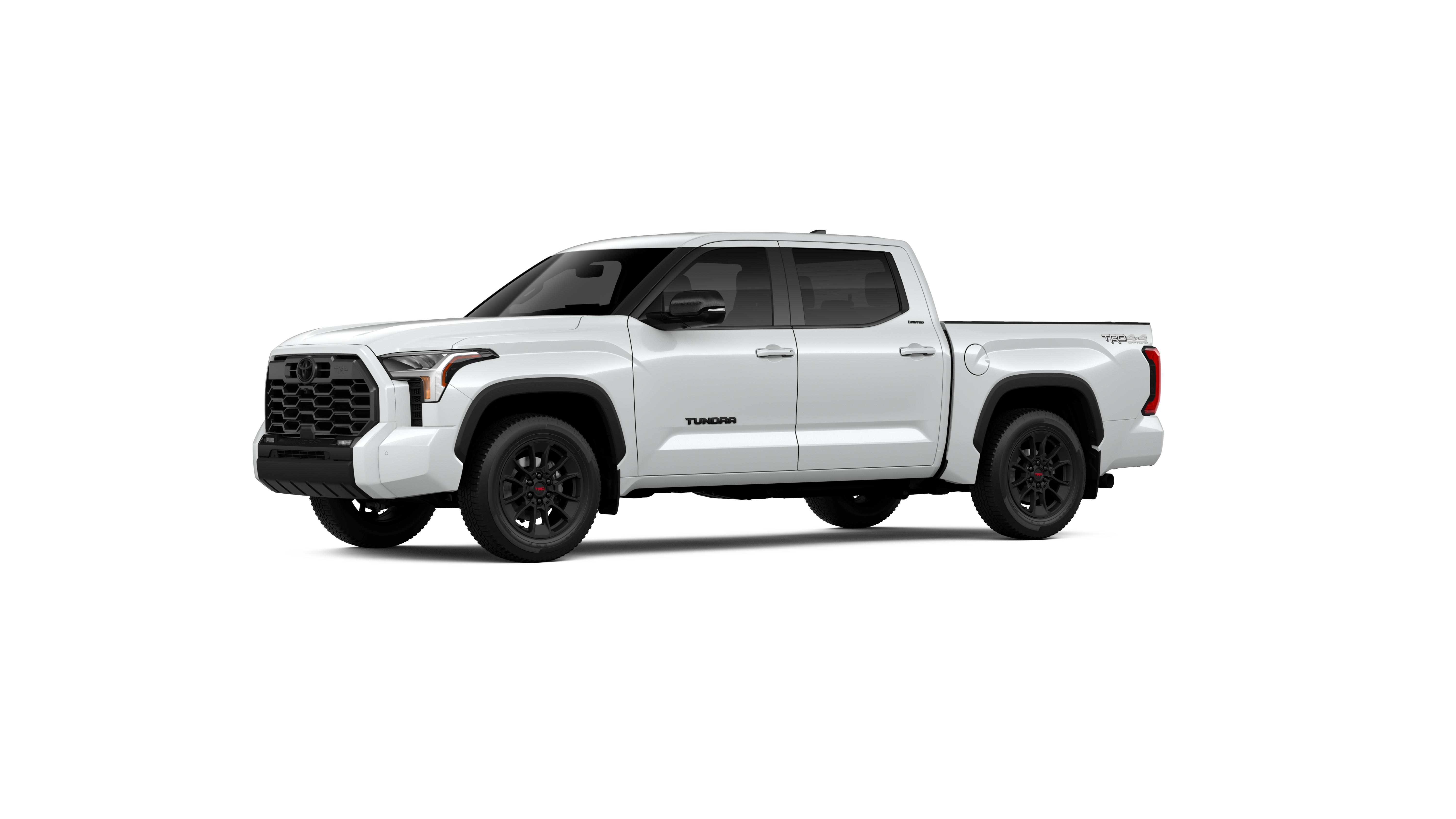 - Chrome "TUNDRA" and "LIMITED" door badges, door handles and window molding; color-keyed mirror caps and tailgate spoiler; gray-painted overfenders
