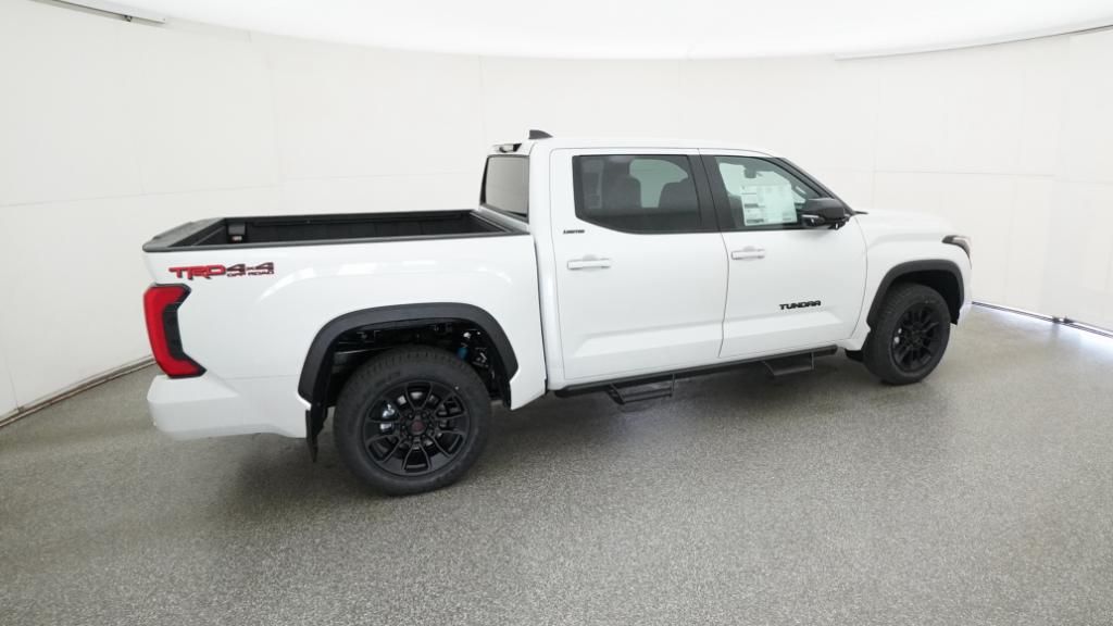 2026 Toyota Tundra Limited Wind Chill Pearl 4WD 10-Speed Automatic 3.4L V620 Alloy Wheels, 3.31 Axle Ratio, 4-Wheel Disc Brakes, 8-Way Power Adjustable Heated/Ventilated Front Seats, 9 Speakers, ABS brakes, Air Conditioning, Alloy wheels, AM/FM radio: SiriusXM, Apple CarPlay/Android Auto, Auto High-beam Headlights, Auto-dimming door mirrors, Auto-dimming Rear-View mirror, Automatic temperature control, Brake assist, Bumpers: body-color, Delay-off headlights, Driver door bin, Driver vanity mirror, Dual front impact airbags, Dual front side impact airbags, Electronic Stability Control, Emergency communication system: Safety Connect (up to 10-year trial subscription), Exterior Parking Camera Rear, Front anti-roll bar, Front Bucket Seats, Front Center Armrest, Front dual zone A/C, Front fog lights, Front reading lights, Front wheel independent suspension, Fully automatic headlights, Garage door transmitter: HomeLink, Heated door mirrors, Heated front seats, Illuminated entry, Knee airbag, Leather Seat Trim, Leather Shift Knob, Leather steering wheel, Low tire pressure warning, Memory seat, Navigation system: Drive Connect Cloud Navigation (1-year trial subscription), Occupant sensing airbag, Outside temperature display, Overhead airbag, Overhead console, Panic alarm, Passenger door bin, Passenger vanity mirror, Power door mirrors, Power driver seat, Power passenger seat, Power steering, Power windows, Radio data system, Radio: Audio Plus, Rear reading lights, Rear seat center armrest, Rear step bumper, Rear window defroster, Remote keyless entry, Safety Connect, Security system, Speed control, Speed-sensing steering, Split folding rear seat, Steering wheel mounted audio controls, Tachometer, Telescoping steering wheel, Tilt steering wheel, Traction control, Trip computer, Turn signal indicator mirrors, Variably intermittent wipers, Ventilated front seats, Voltmeter.