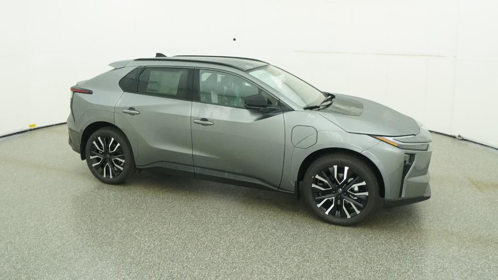2026 Toyota bZ Limited Heavy Metal AWD Single-Speed Automatic Electric Motor4-Wheel Disc Brakes, 6 Speakers, ABS brakes, Air Conditioning, Alloy wheels, AM/FM radio: SiriusXM, Apple CarPlay/Android Auto, Auto High-beam Headlights, Auto-dimming Rear-View mirror, Automatic temperature control, Brake assist, Bumpers: body-color, Delay-off headlights, Driver door bin, Driver vanity mirror, Dual front impact airbags, Dual front side impact airbags, Electronic Stability Control, Emergency communication system: Safety Connect (10-year trial), Exterior Parking Camera Rear, Four wheel independent suspension, Front anti-roll bar, Front Bucket Seats, Front Center Armrest, Front dual zone A/C, Front reading lights, Fully automatic headlights, Garage door transmitter: HomeLink, Heated and Ventilated Front Seats, Heated door mirrors, Heated front seats, Heated rear seats, Heated steering wheel, Illuminated entry, Knee airbag, Leather steering wheel, Low tire pressure warning, Memory seat, Navigation system: Drive Connect (3 year trial) includes Cloud Navigation with real time traffic and Google POI, Occupant sensing airbag, Outside temperature display, Overhead airbag, Overhead console, Panic alarm, Passenger door bin, Passenger vanity mirror, Perforated SofTex Seat Trim, Power door mirrors, Power driver seat, Power Liftgate, Power passenger seat, Power steering, Power windows, Radio data system, Radio: 14 Toyota Audio Multimedia, Rain sensing wipers, Rear anti-roll bar, Rear seat center armrest, Rear window defroster, Remote keyless entry, Security system, Speed control, Speed-sensing steering, Split folding rear seat, Spoiler, Steering wheel mounted audio controls, Telescoping steering wheel, Tilt steering wheel, Traction control, Trip computer, Turn signal indicator mirrors, Variably intermittent wipers, Ventilated front seats, Wheels: 20 Multi-Spoke.