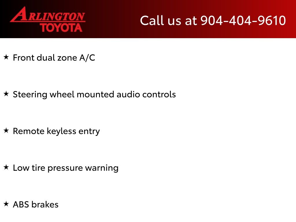 CALL FOR AVAILABILITY AND EXTRA OPTIONS ARLINGTON TOYOTA 904-721-3000.