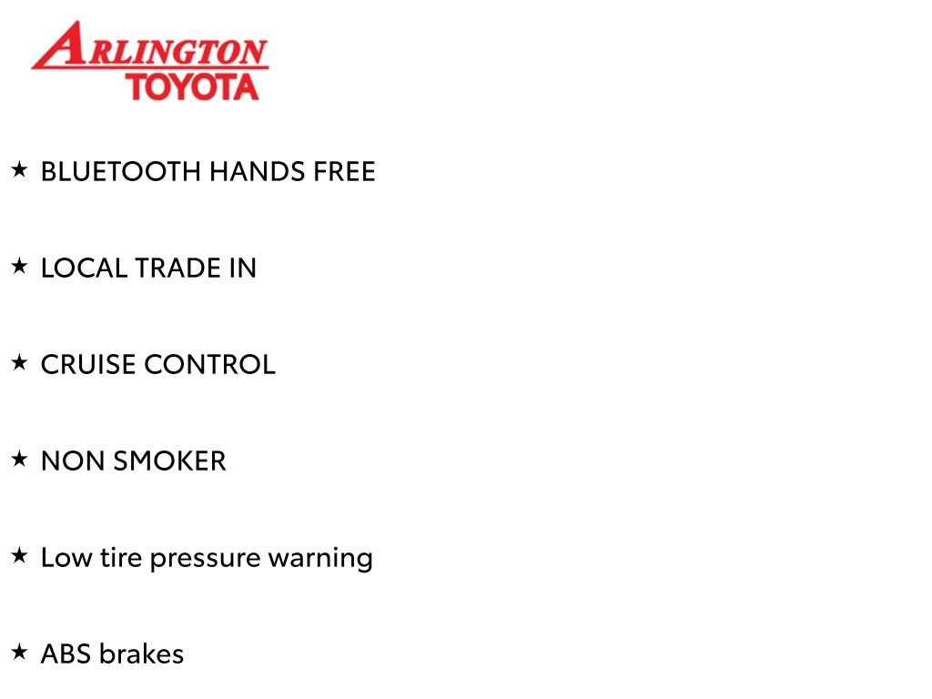 Prices do not include tax, tag, title, a pre-delivery service fee* of $894.00, an electronic registration filing fee* of $199.00 (*these charges represent costs and profits to the dealer for items such as inspecting, cleaning, and preparing documents related to the sale), and an Arlington Toyota Total Value Package of $1,889.00 (*these charges represent costs and profits to the dealer for items such as inspecting, cleaning, and preparing documents related to the sale). The final price is also subject to repair order reconditioning costs. Any price does not include dealer-installed accessories. All offers are mutually exclusive. All vehicles are subject to prior sale. See dealer for complete details.