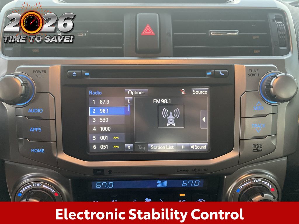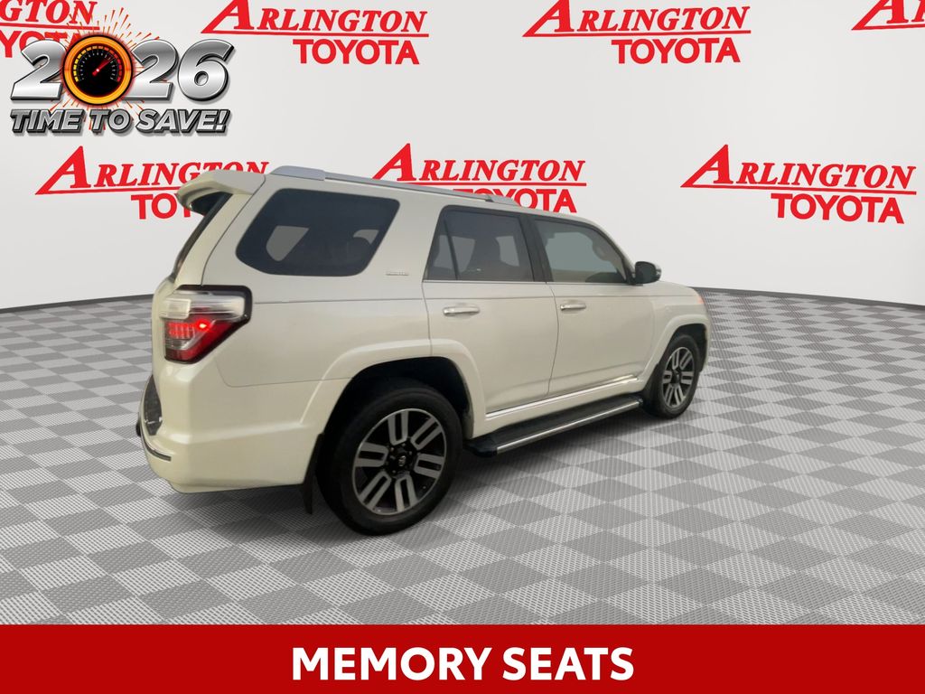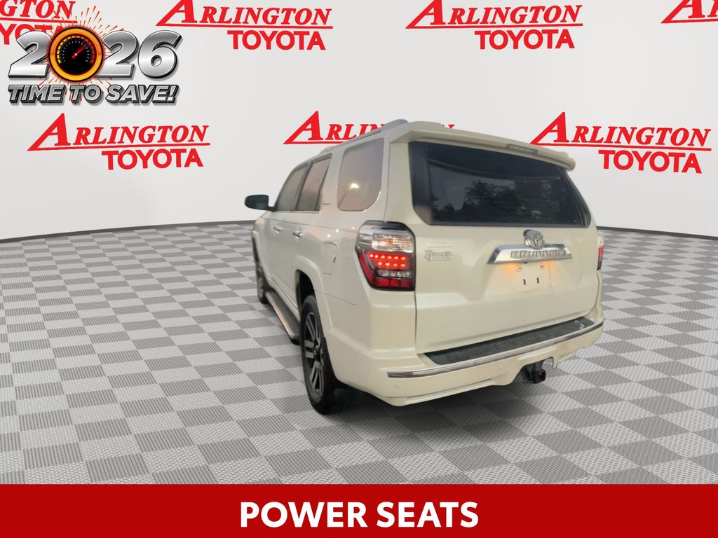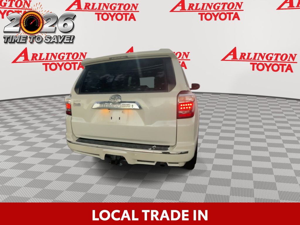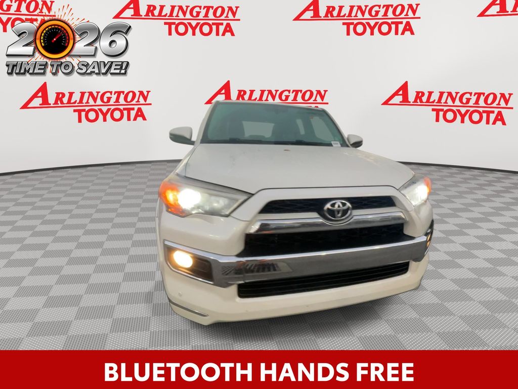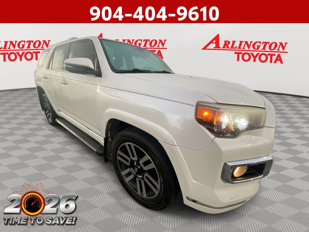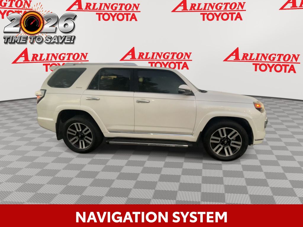 BACKUP CAMERA, BLUETOOTH HANDS FREE, 4X4/FOUR WHEEL DRIVE, HEATED LEATHER SEATS, POWER SEATS, LOCAL TRADE IN, MEMORY SEATS, NAVIGATION SYSTEM, SUNROOF/MOONROOF, RUNNING BOARDS, TOW PACKAGE, PUSH BUTTON START, CRUISE CONTROL, NON SMOKER, 4Runner Limited 4x4, 4D Sport Utility, 4.0L V6 SMPI DOHC, 5-Speed Automatic with Overdrive, 4WD, Blizzard Pearl, Sand Beige w/Leather Seat Trim, Electronic Stability Control, 3.727 Axle Ratio, 4-Wheel Disc Brakes, ABS brakes, Air Conditioning, Alloy wheels, AM/FM radio: SiriusXM, Anti-whiplash front head restraints, Auto-Dimming Rear-View Mirror, Auto-dimming Rear-View mirror, Brake assist, Bumpers: body-color, CD player, Compass, Driver door bin, Driver vanity mirror, Dual front impact airbags, Dual front side impact airbags, Exterior Parking Camera Rear, Front anti-roll bar, Front Bucket Seats, Front Center Armrest, Front fog lights, Front reading lights, Front wheel independent suspension, Garage Door Opener, Garage door transmitter: HomeLink, Heated door mirrors, Heated front seats, Illuminated entry, Knee airbag, Leather Shift Knob, Low tire pressure warning, Navigation System, Occupant sensing airbag, Outside temperature display, Overhead airbag, Overhead console, Panic alarm, Passenger door bin, Passenger vanity mirror, Power door mirrors, Power driver seat, Power passenger seat, Power steering, Power windows, Rear anti-roll bar, Rear seat center armrest, Rear window defroster, Rear window wiper, Remote keyless entry, Security system, Sliding Rear Cargo Deck, Speed control, Speed-sensing steering, Split folding rear seat, Spoiler, Steering wheel mounted audio controls, Tachometer, Telescoping steering wheel, Tilt steering wheel, Traction control, Trip computer, Trunk Carpet, Turn signal indicator mirrors, Variably intermittent wipers, Voltmeter, 4Runner Limited 4x4, 4D Sport Utility, 4.0L V6 SMPI DOHC, 5-Speed Automatic with Overdrive, 4WD, Blizzard Pearl, Sand Beige w/Leather Seat Trim, Electronic Stability Control.