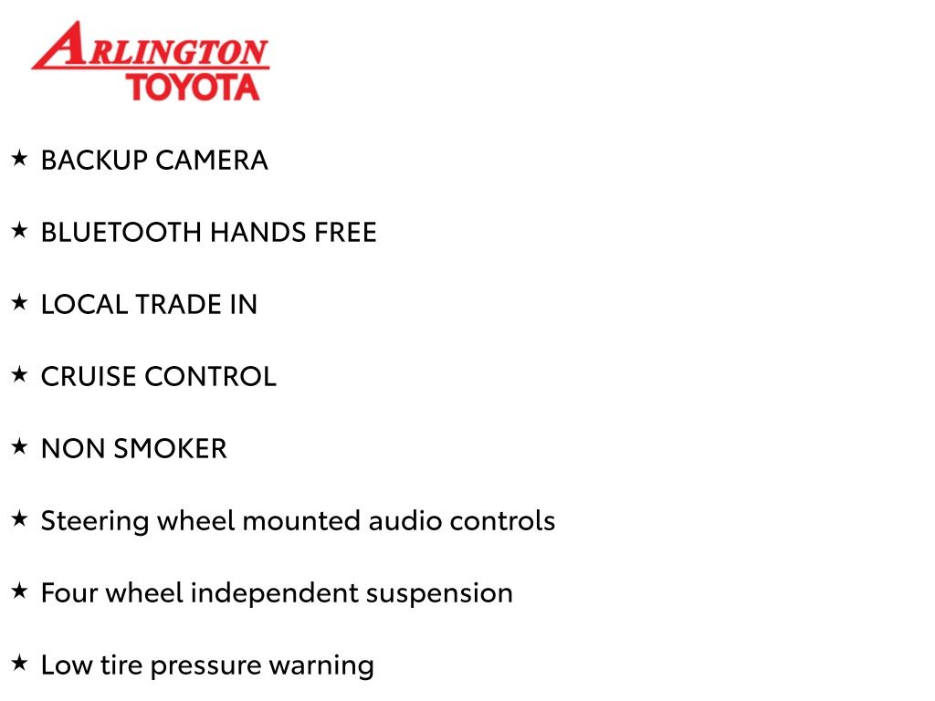 Prices do not include tax, tag, title, a pre-delivery service fee* of $894.00, an electronic registration filing fee* of $199.00 (*these charges represent costs and profits to the dealer for items such as inspecting, cleaning, and preparing documents related to the sale), and an Arlington Toyota Total Value Package of $1,889.00 (*these charges represent costs and profits to the dealer for items such as inspecting, cleaning, and preparing documents related to the sale). The final price is also subject to repair order reconditioning costs. Any price does not include dealer-installed accessories. All offers are mutually exclusive. All vehicles are subject to prior sale. See dealer for complete details.