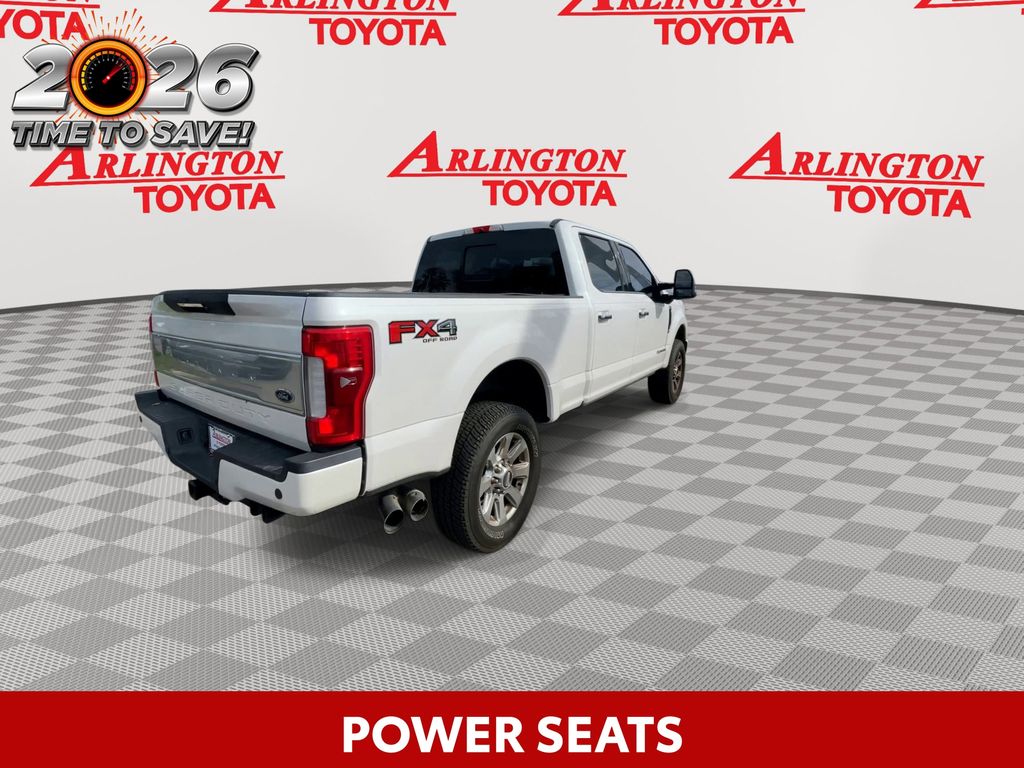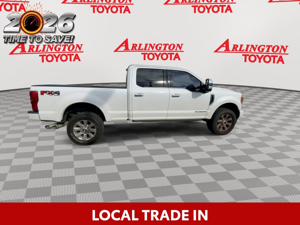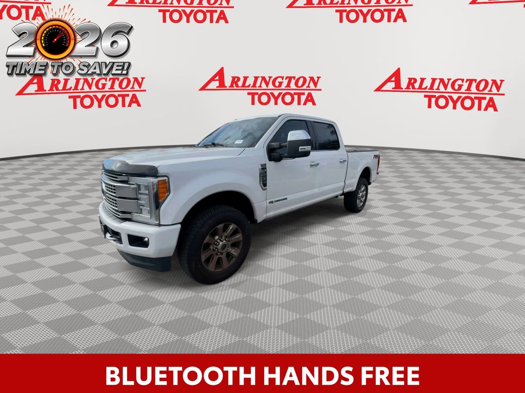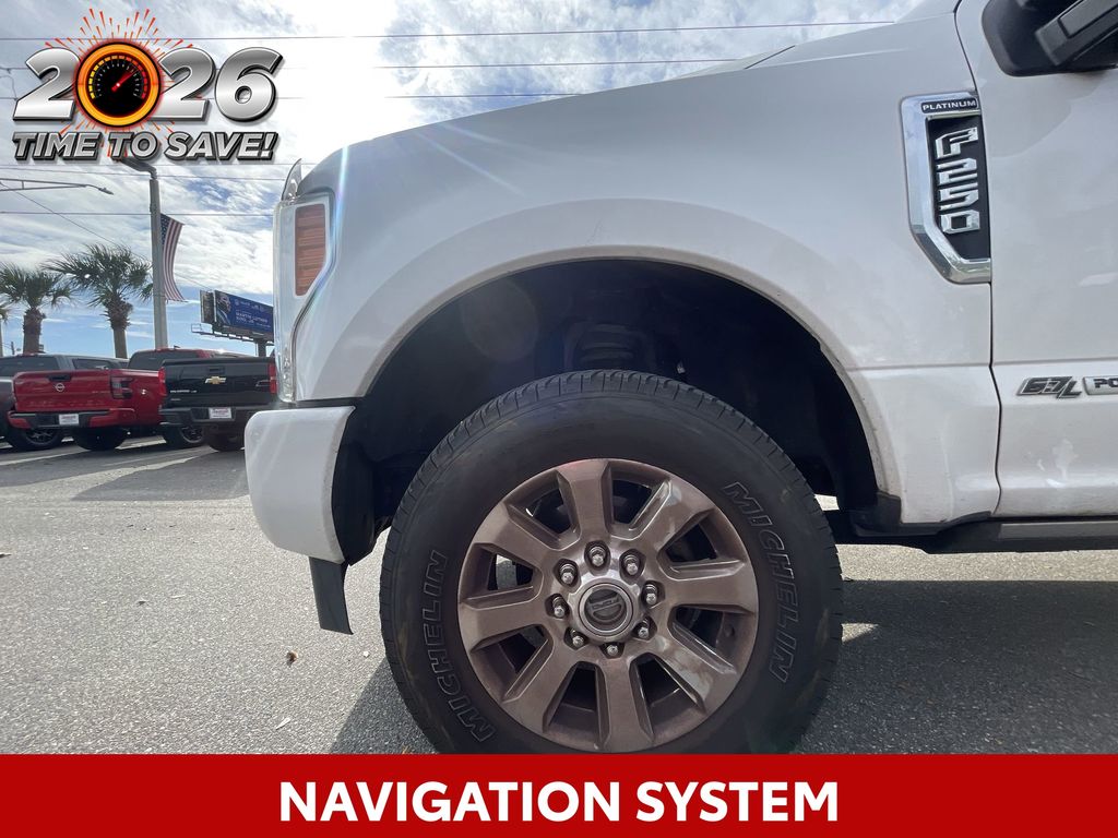 BACKUP CAMERA, BLUETOOTH HANDS FREE, 4X4/FOUR WHEEL DRIVE, BED LINER, HEATED LEATHER SEATS, POWER SEATS, LOCAL TRADE IN, LOW MILES, NAVIGATION SYSTEM, PANORAMIC MOONROOF, RUNNING BOARDS, TOW PACKAGE, TURBO DIESEL, PUSH BUTTON START, CRUISE CONTROL, NON SMOKER, F-250SD Platinum Powerstroke 4x4, 4D Crew Cab, Power Stroke 6.7L V8 DI 32V OHV Turbodiesel, TorqShift 6-Speed Automatic, 4WD, White Platinum Metallic Tri-Coat, Black w/Leather Seating Surfaces 40/20/40 Split Bench Seat, Electronic Stability Control, Fully automatic headlights, 10 Speakers, 110V/400W Outlet, 20" Polished Aluminum Wheels, 3.73 Axle Ratio, 4-Wheel Disc Brakes, ABS brakes, Adaptive Cruise Control & Collision Warning, Adjustable pedals, Air Conditioning, Alloy wheels, AM/FM radio: SiriusXM, Auto High-beam Headlights, Auto tilt-away steering wheel, Auto-dimming Rear-View mirror, Automatic temperature control, Brake assist, Bumpers: body-color, CD player, Compass, Delay-off headlights, Driver door bin, Driver vanity mirror, Dual front impact airbags, Dual front side impact airbags, Emergency communication system: SYNC 3 911 Assist, Exterior Parking Camera Rear, Flow-Through Console, Front anti-roll bar, Front Bucket Seats, Front Center Armrest, Front dual zone A/C, Front fog lights, Front reading lights, FX4 Off-Road Package, Garage door transmitter, GVWR: 10,000 lb Payload Package, Heated door mirrors, Heated front seats, Heated rear seats, Heated steering wheel, Illuminated entry, Leather steering wheel, Low tire pressure warning, Memory seat, Navigation System, Order Code 703A, Outside temperature display, Overhead airbag, Overhead console, Panic alarm, Passenger door bin, Passenger vanity mirror, Pedal memory, Platinum Ultimate Package, Power door mirrors, Power driver seat, Power passenger seat, Power steering, Power windows, Radio data system, Radio: Premium Sony Audio w/Single-CD/MP3 Player, Rain sensing wipers, Rear CHMSL Camera, Rear Parking Sensors, Rear reading lights, Rear seat center armrest, Rear step bumper, Rear window defroster, Remote keyless entry, Security system, SiriusXM Radio, Speed control, Speed-sensing steering, Split folding rear seat, Steering wheel memory, Steering wheel mounted A/C controls, Steering wheel mounted audio controls, SYNC 3 Communications & Entertainment System, Tachometer, Telescoping steering wheel, Tilt steering wheel, Traction control, Trip computer, Turn signal indicator mirrors, Twin Panel Power Moonroof, Ultimate Trailer Tow Camera System, Unique Platinum Leather 40/Console/40 Seats, Upfitter Switches (6), Variably intermittent wipers, Ventilated front seats, F-250SD Platinum Powerstroke 4x4, 4D Crew Cab, Power Stroke 6.7L V8 DI 32V OHV Turbodiesel, TorqShift 6-Speed Automatic, 4WD, White Platinum Metallic Tri-Coat, Black w/Leather Seating Surfaces 40/20/40 Split Bench Seat, Electronic Stability Control, Fully automatic headlights.