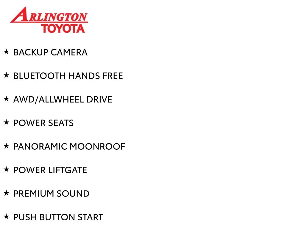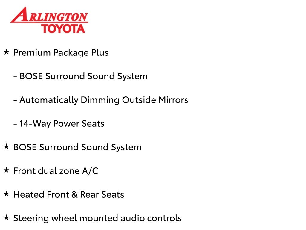 Prices do not include tax, tag, title, a pre-delivery service fee* of $894.00, an electronic registration filing fee* of $199.00 (*these charges represent costs and profits to the dealer for items such as inspecting, cleaning, and preparing documents related to the sale), and an Arlington Toyota Total Value Package of $1,889.00 (*these charges represent costs and profits to the dealer for items such as inspecting, cleaning, and preparing documents related to the sale). The final price is also subject to repair order reconditioning costs. Any price does not include dealer-installed accessories. All offers are mutually exclusive. All vehicles are subject to prior sale. See dealer for complete details.