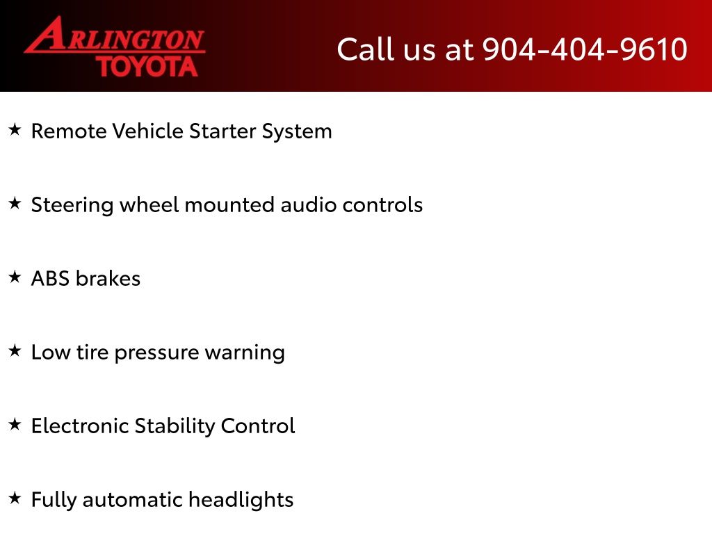 CALL FOR AVAILABILITY AND EXTRA OPTIONS ARLINGTON TOYOTA 904-721-3000.