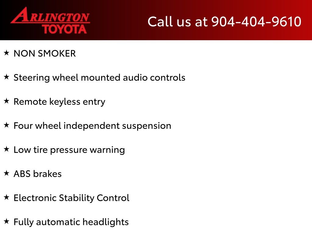 CALL FOR AVAILABILITY AND EXTRA OPTIONS ARLINGTON TOYOTA 904-721-3000.