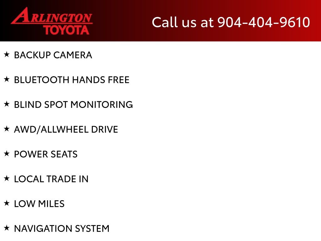 CALL FOR AVAILABILITY AND EXTRA OPTIONS ARLINGTON TOYOTA 904-721-3000.