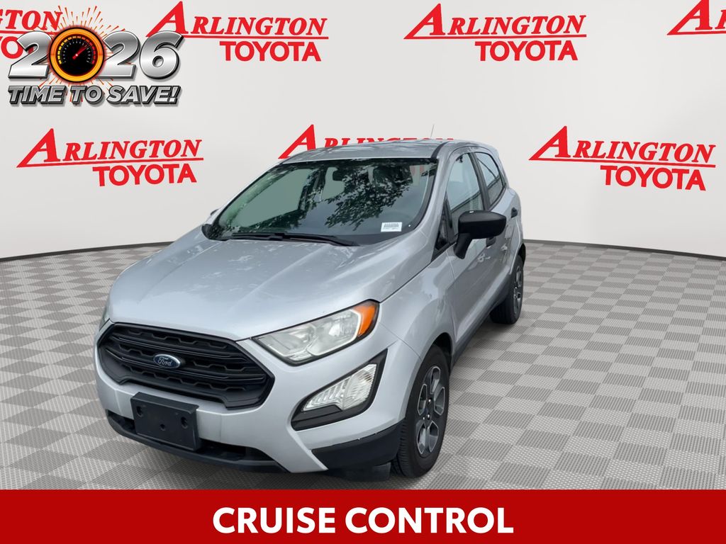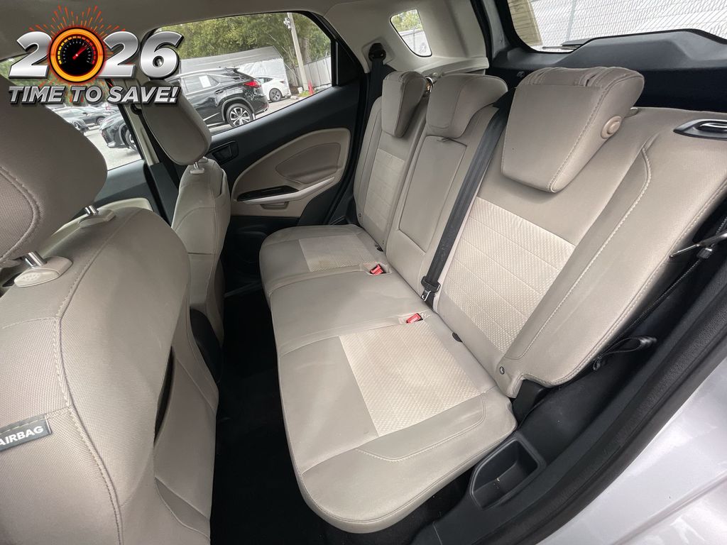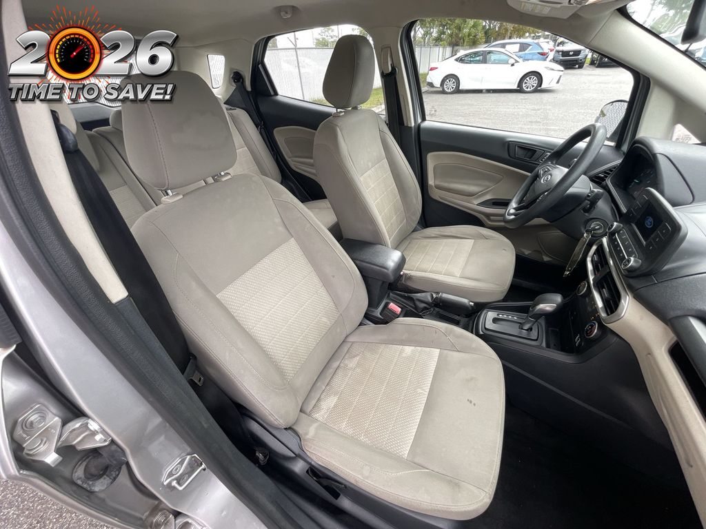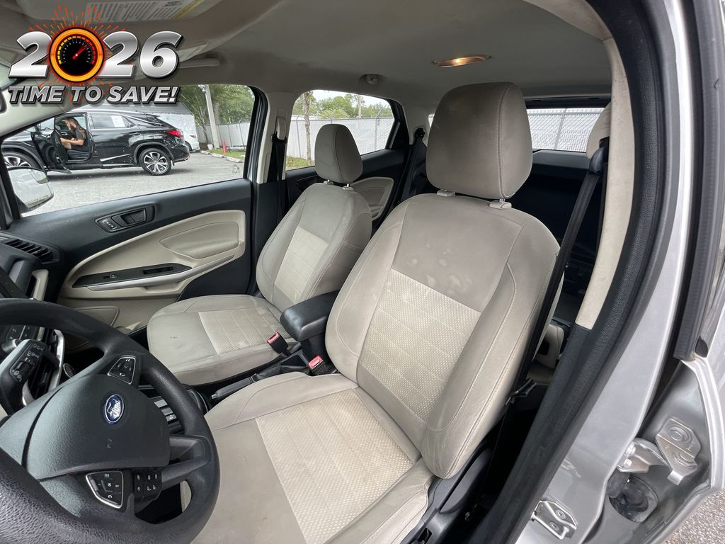 BACKUP CAMERA, BLUETOOTH HANDS FREE, CRUISE CONTROL, NON SMOKER, EcoSport S, 4D Sport Utility, EcoBoost 1.0L I3 GTDi DOHC Turbocharged VCT, 6-Speed Automatic, FWD, Moondust, Medium Light Stone Cloth, ABS brakes, Electronic Stability Control, Fully automatic headlights, Low tire pressure warning, Steering wheel mounted audio controls, 3.44 Axle Ratio, 4-Wheel Disc Brakes, 6 Speakers, Air Conditioning, Alloy wheels, AM/FM radio, Brake assist, Bumpers: body-color, Cloth Front Bucket Seats, Compass, Delay-off headlights, Driver door bin, Driver vanity mirror, Dual front impact airbags, Dual front side impact airbags, Emergency communication system: 911 Assist, Equipment Group 100A, Exterior Parking Camera Rear, Front anti-roll bar, Front Bucket Seats, Front Center Armrest, Front reading lights, Front wheel independent suspension, Illuminated entry, Knee airbag, Occupant sensing airbag, Outside temperature display, Overhead airbag, Overhead console, Panic alarm, Passenger door bin, Passenger vanity mirror, Power door mirrors, Power steering, Power windows, Radio data system, Radio: AM/FM Stereo w/MP3 Capable, Rear seat center armrest, Rear side impact airbag, Rear window defroster, Rear window wiper, Remote keyless entry, Speed control, Speed-sensing steering, Split folding rear seat, SYNC Communications & Entertainment System, Tachometer, Telescoping steering wheel, Tilt steering wheel, Tire Inflator & Sealant Kit, Traction control, Trip computer, Variably intermittent wipers, Wheels: 16" Low-Gloss Magnetic-Painted, EcoSport S, 4D Sport Utility, EcoBoost 1.0L I3 GTDi DOHC Turbocharged VCT, 6-Speed Automatic, FWD, Moondust, Medium Light Stone Cloth, ABS brakes, Electronic Stability Control, Fully automatic headlights, Low tire pressure warning, Steering wheel mounted audio controls.