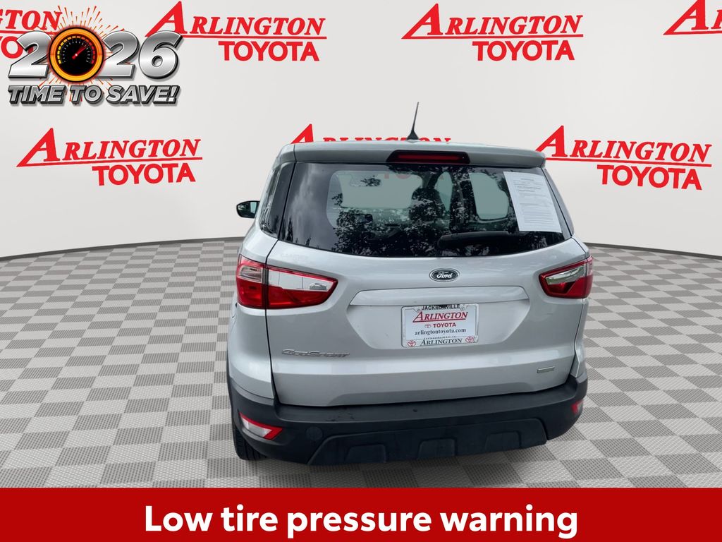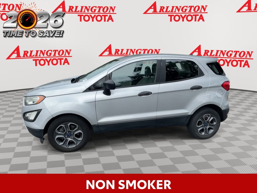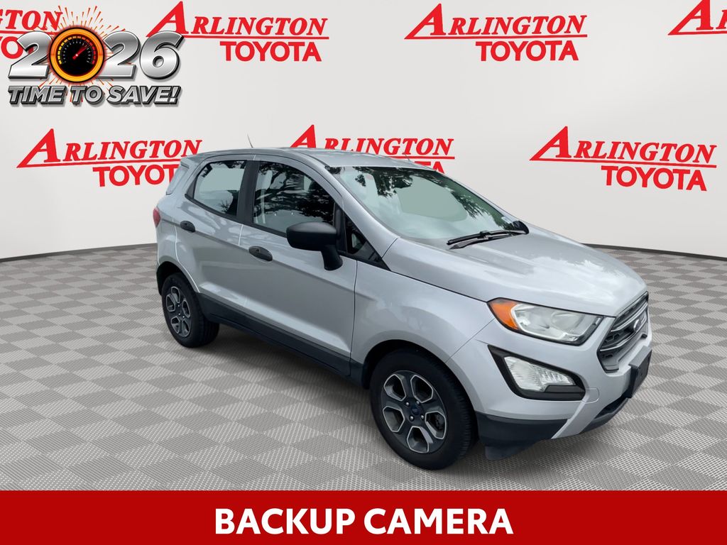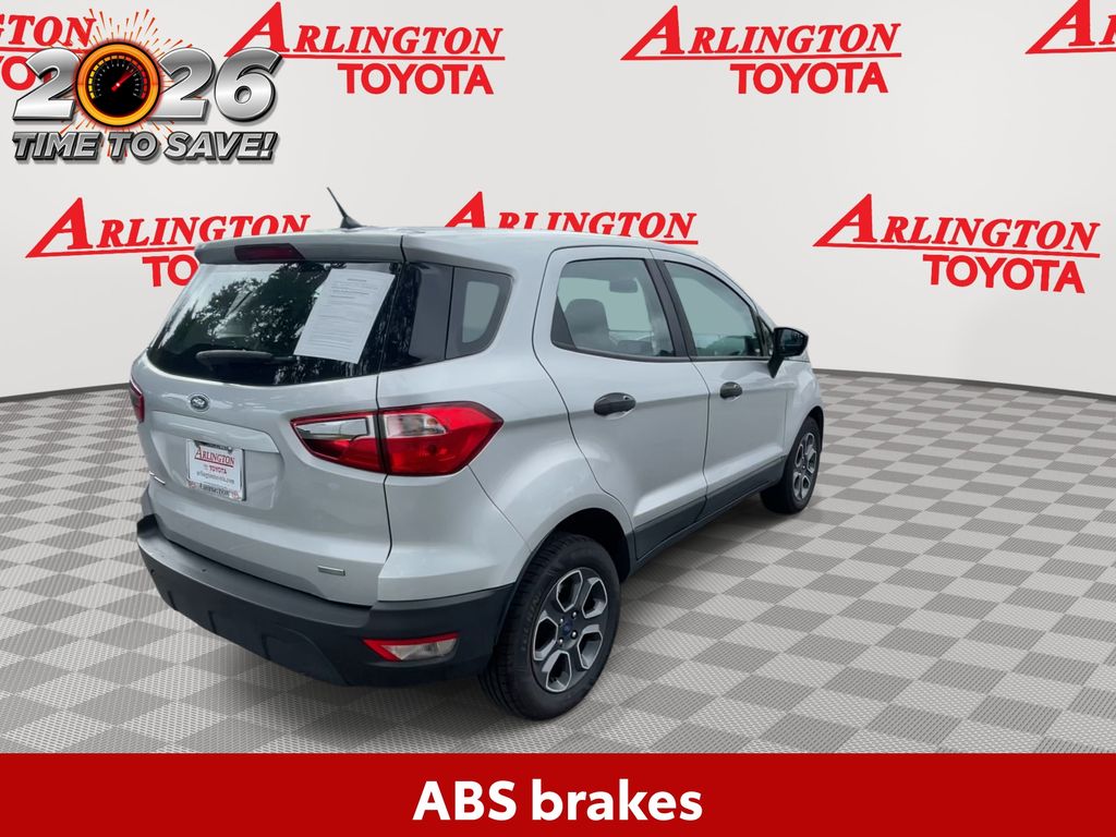 BACKUP CAMERA, BLUETOOTH HANDS FREE, CRUISE CONTROL, NON SMOKER, EcoSport S, 4D Sport Utility, EcoBoost 1.0L I3 GTDi DOHC Turbocharged VCT, 6-Speed Automatic, FWD, Moondust, Medium Light Stone Cloth, ABS brakes, Electronic Stability Control, Fully automatic headlights, Low tire pressure warning, Steering wheel mounted audio controls, 3.44 Axle Ratio, 4-Wheel Disc Brakes, 6 Speakers, Air Conditioning, Alloy wheels, AM/FM radio, Brake assist, Bumpers: body-color, Cloth Front Bucket Seats, Compass, Delay-off headlights, Driver door bin, Driver vanity mirror, Dual front impact airbags, Dual front side impact airbags, Emergency communication system: 911 Assist, Equipment Group 100A, Exterior Parking Camera Rear, Front anti-roll bar, Front Bucket Seats, Front Center Armrest, Front reading lights, Front wheel independent suspension, Illuminated entry, Knee airbag, Occupant sensing airbag, Outside temperature display, Overhead airbag, Overhead console, Panic alarm, Passenger door bin, Passenger vanity mirror, Power door mirrors, Power steering, Power windows, Radio data system, Radio: AM/FM Stereo w/MP3 Capable, Rear seat center armrest, Rear side impact airbag, Rear window defroster, Rear window wiper, Remote keyless entry, Speed control, Speed-sensing steering, Split folding rear seat, SYNC Communications & Entertainment System, Tachometer, Telescoping steering wheel, Tilt steering wheel, Tire Inflator & Sealant Kit, Traction control, Trip computer, Variably intermittent wipers, Wheels: 16" Low-Gloss Magnetic-Painted, EcoSport S, 4D Sport Utility, EcoBoost 1.0L I3 GTDi DOHC Turbocharged VCT, 6-Speed Automatic, FWD, Moondust, Medium Light Stone Cloth, ABS brakes, Electronic Stability Control, Fully automatic headlights, Low tire pressure warning, Steering wheel mounted audio controls.
