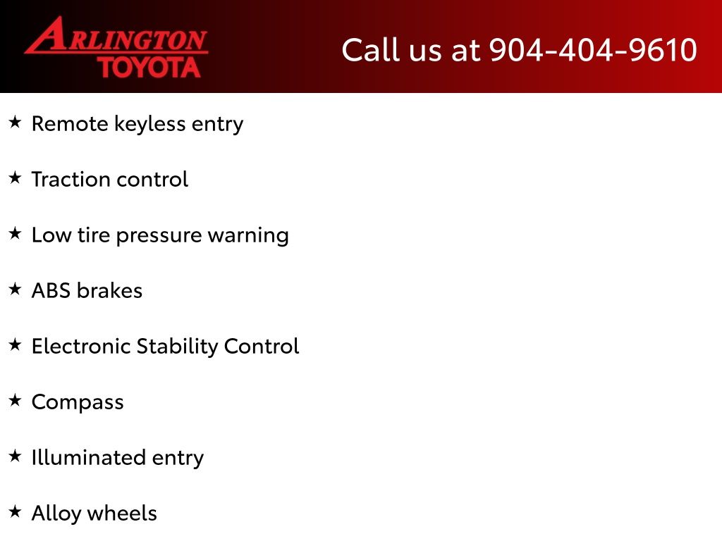 CALL FOR AVAILABILITY AND EXTRA OPTIONS ARLINGTON TOYOTA 904-721-3000.