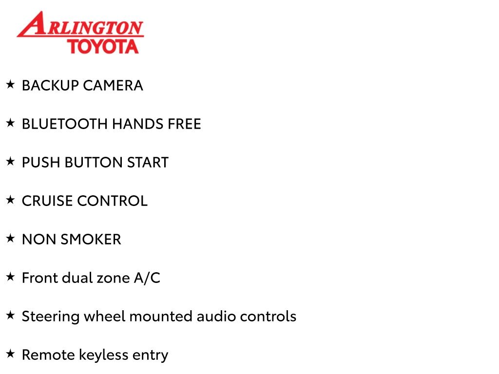Prices do not include tax, tag, title, a pre-delivery service fee* of $894.00, an electronic registration filing fee* of $199.00 (*these charges represent costs and profits to the dealer for items such as inspecting, cleaning, and preparing documents related to the sale), and an Arlington Toyota Total Value Package of $1,889.00 (*these charges represent costs and profits to the dealer for items such as inspecting, cleaning, and preparing documents related to the sale). The final price is also subject to repair order reconditioning costs. Any price does not include dealer-installed accessories. All offers are mutually exclusive. All vehicles are subject to prior sale. See dealer for complete details.