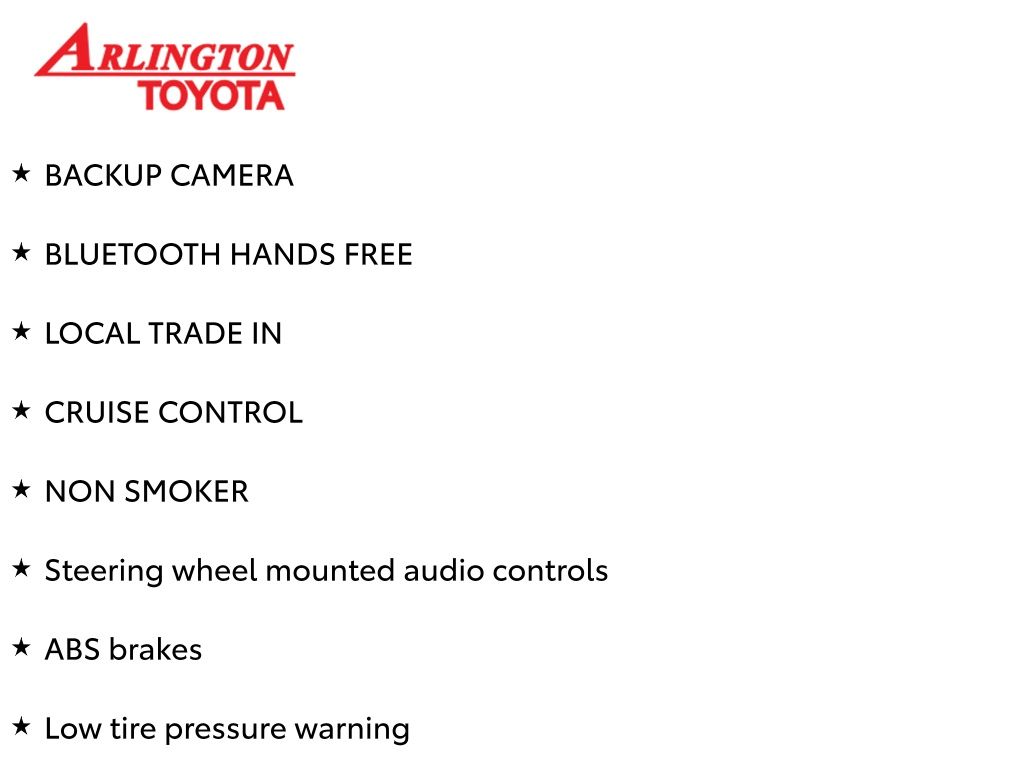 Prices do not include tax, tag, title, a pre-delivery service fee* of $894.00, an electronic registration filing fee* of $199.00 (*these charges represent costs and profits to the dealer for items such as inspecting, cleaning, and preparing documents related to the sale), and an Arlington Toyota Total Value Package of $1,889.00 (*these charges represent costs and profits to the dealer for items such as inspecting, cleaning, and preparing documents related to the sale). The final price is also subject to repair order reconditioning costs. Any price does not include dealer-installed accessories. All offers are mutually exclusive. All vehicles are subject to prior sale. See dealer for complete details.