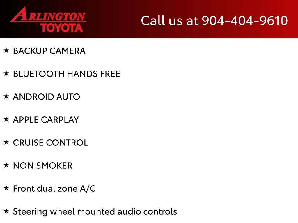 CALL FOR AVAILABILITY AND EXTRA OPTIONS ARLINGTON TOYOTA 904-721-3000.