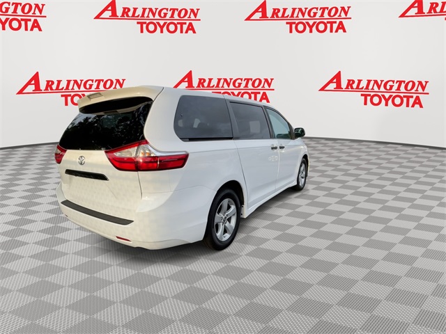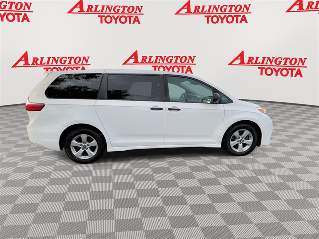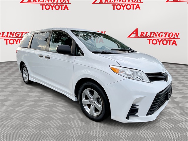 BACKUP CAMERA, BLUETOOTH HANDS FREE, ANDROID AUTO, APPLE CARPLAY, THIRD ROW SEATING, CRUISE CONTROL, NON SMOKER, Sienna L 7 Passenger, 4D Passenger Van, 3.5L V6 SMPI DOHC, 8-Speed Automatic, FWD, Super White, Ash Cloth, ABS brakes, Electronic Stability Control, Front dual zone A/C, Fully automatic headlights, Low tire pressure warning, Steering wheel mounted audio controls, 17" Alloy Wheels, 3rd row seats: split-bench, 4-Wheel Disc Brakes, 6 Speakers, Air Conditioning, All Weather Floor Liners & Door Sill Protectors, Alloy Wheel Locks, Alloy wheels, AM/FM radio, Apple CarPlay, Auto High-beam Headlights, Automatic temperature control, Axle Ratio: 3.003, Brake assist, Bumpers: body-color, CD player, Delay-off headlights, Door Edge Guards, Driver door bin, Driver vanity mirror, Driver's Seat Mounted Armrest, Dual front impact airbags, Dual front side impact airbags, Exterior Parking Camera Rear, Fabric Seat Material, Front anti-roll bar, Front Bucket Seats, Front reading lights, Illuminated entry, Knee airbag, Occupant sensing airbag, Overhead airbag, Overhead console, Panic alarm, Passenger door bin, Passenger seat mounted armrest, Passenger vanity mirror, Power door mirrors, Power steering, Power windows, Radio data system, Radio: Entune 3.0 Audio System w/Connected Nav, Rear air conditioning, Rear anti-roll bar, Rear reading lights, Rear window defroster, Rear window wiper, Reclining 3rd row seat, Remote keyless entry, Speed control, Speed-sensing steering, Split folding rear seat, Spoiler, Tachometer, Telescoping steering wheel, Tilt steering wheel, Traction control, Variably intermittent wipers, Sienna L 7 Passenger, 4D Passenger Van, 3.5L V6 SMPI DOHC, 8-Speed Automatic, FWD, Super White, Ash Cloth, ABS brakes, Electronic Stability Control, Front dual zone A/C, Fully automatic headlights, Low tire pressure warning, Steering wheel mounted audio controls.CALL FOR AVAILABILITY AND EXTRA OPTIONS ARLINGTON TOYOTA 904-721-3000.