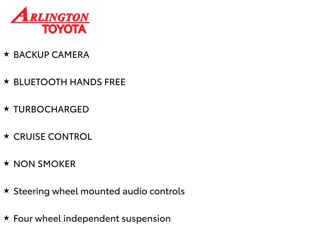 Prices do not include tax, tag, title, a pre-delivery service fee* of $894.00, an electronic registration filing fee* of $199.00 (*these charges represent costs and profits to the dealer for items such as inspecting, cleaning, and preparing documents related to the sale), and an Arlington Toyota Total Value Package of $1,889.00 (*these charges represent costs and profits to the dealer for items such as inspecting, cleaning, and preparing documents related to the sale). The final price is also subject to repair order reconditioning costs. Any price does not include dealer-installed accessories. All offers are mutually exclusive. All vehicles are subject to prior sale. See dealer for complete details.