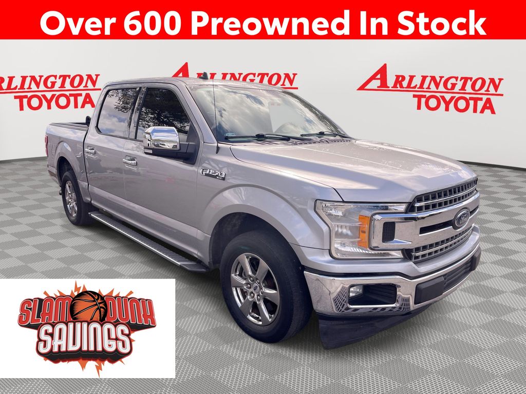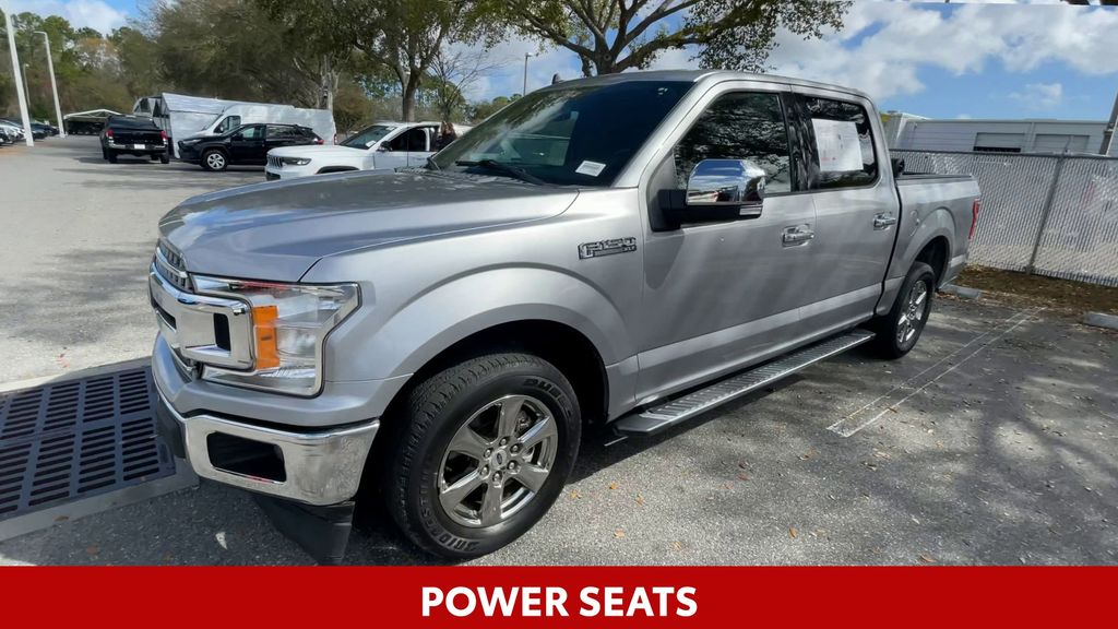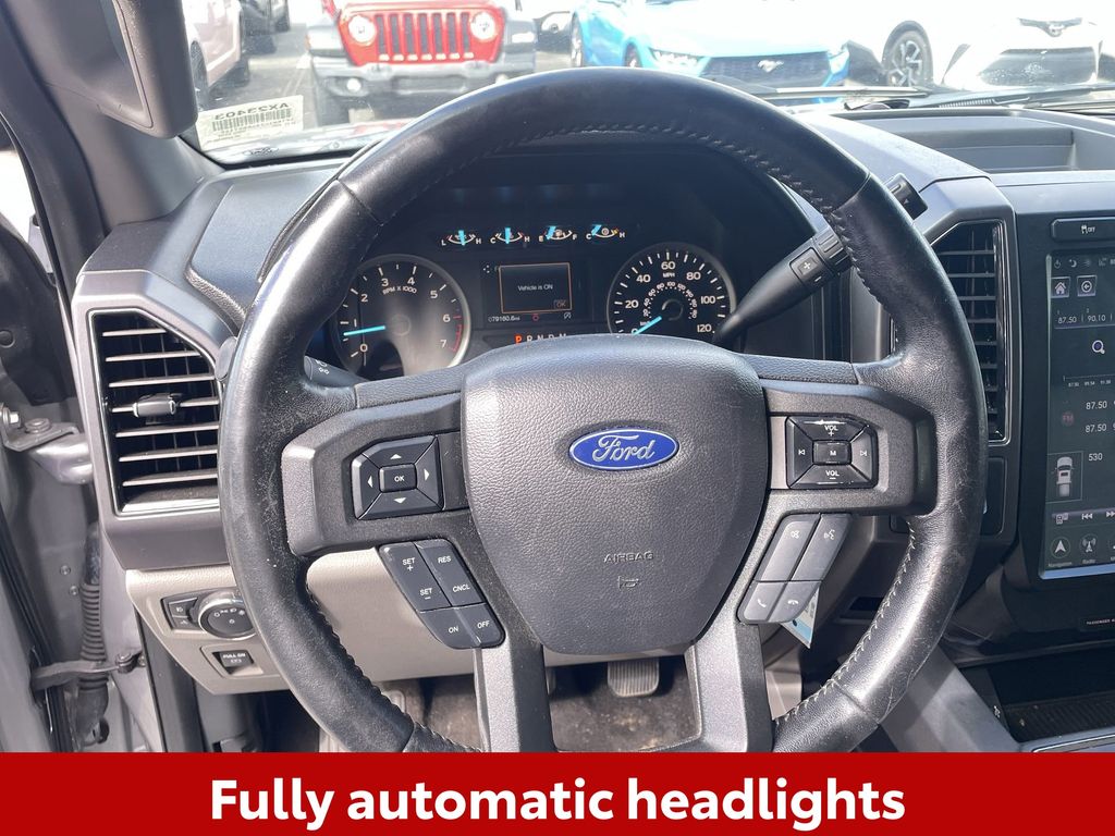 BACKUP CAMERA, BLUETOOTH HANDS FREE, POWER SEATS, NAVIGATION SYSTEM, RUNNING BOARDS, TOW PACKAGE, CRUISE CONTROL, NON SMOKER, F-150 XLT, 4D SuperCrew, 2.7L V6 EcoBoost, 10-Speed Automatic, RWD, Iconic Silver Metallic, Medium Earth Gray Cloth, ABS brakes, Electronic Stability Control, Fully automatic headlights, Low tire pressure warning, Steering wheel mounted audio controls, 110V/400W Outlet, 2-Bar Style Grille w/Chrome 2 Minor Bars, 3.55 Axle Ratio, 4-Wheel Disc Brakes, 6 Speakers, Air Conditioning, Alloy wheels, AM/FM radio, Auto High-beam Headlights, Auto-Dimming Rear-View Mirror, Brake assist, Bumpers: chrome, Chrome Door & Tailgate Handles w/Body-Color Bezel, Chrome Step Bars, Class IV Trailer Hitch Receiver, Compass, Delay-off headlights, Driver door bin, Driver vanity mirror, Dual front impact airbags, Dual front side impact airbags, Equipment Group 302A Luxury, Exterior Parking Camera Rear, Front anti-roll bar, Front Center Armrest w/Storage, Front fog lights, Front wheel independent suspension, Illuminated entry, LED Box Lighting, Occupant sensing airbag, Outside temperature display, Overhead airbag, Panic alarm, Passenger door bin, Passenger vanity mirror, Power door mirrors, Power Glass Heated Sideview Mirrors, Power steering, Power windows, Power-Sliding Rear Window, Radio data system, Radio: AM/FM Stereo w/6 Speakers, Rear step bumper, Rear Window Defroster, Remote keyless entry, Remote Start System, Reverse Sensing System, Security system, Single-Tip Chrome Exhaust, SiriusXM Radio, Speed control, Speed-sensing steering, Split folding rear seat, SYNC 3, Tachometer, Telescoping steering wheel, Tilt steering wheel, Traction control, Variably intermittent wipers, Voice-Activated Touchscreen Navigation, Voltmeter, Wheels: 17" Silver Painted Aluminum, Wheels: 18" Chrome-Like PVD, XLT Chrome Appearance Package, XLT Power Equipment Group, F-150 XLT, 4D SuperCrew, 2.7L V6 EcoBoost, 10-Speed Automatic, RWD, Iconic Silver Metallic, Medium Earth Gray Cloth, ABS brakes, Electronic Stability Control, Fully automatic headlights, Low tire pressure warning, Steering wheel mounted audio controls.