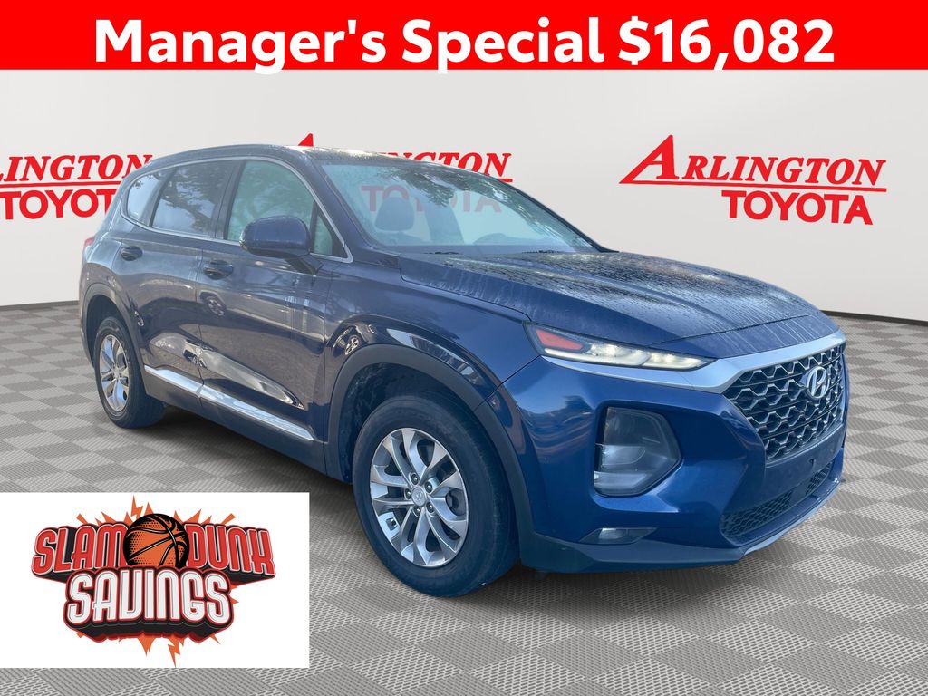 BACKUP CAMERA, BLUETOOTH HANDS FREE, ANDROID AUTO, APPLE CARPLAY, POWER SEATS, LOW MILES, PUSH BUTTON START, CRUISE CONTROL, NON SMOKER, Santa Fe SEL, 4D Sport Utility, 2.4L 4-Cylinder DGI DOHC, 8-Speed Automatic with SHIFTRONIC, FWD, Stormy Blue, Espresso/Gray Cloth, ABS brakes, Electronic Stability Control, Four wheel independent suspension, Fully automatic headlights, Low tire pressure warning, Remote keyless entry, Steering wheel mounted audio controls, 17" x 7.0J Alloy Wheels, 4-Wheel Disc Brakes, 6 Speakers, Air Conditioning, Alloy wheels, AM/FM radio: SiriusXM, Apple CarPlay & Android Auto, Auto High-beam Headlights, Axle Ratio 3.798, Brake assist, Bumper Applique, Bumpers: body-color, Cargo Package, Carpeted Floor Mats, Delay-off headlights, Driver door bin, Driver vanity mirror, Dual front impact airbags, Dual front side impact airbags, Emergency communication system, Exterior Parking Camera Rear, Front anti-roll bar, Front Bucket Seats, Front Center Armrest, Front fog lights, Front reading lights, Heated door mirrors, Heated Front Bucket Seats, Heated front seats, Illuminated entry, Occupant sensing airbag, Option Group 01, Outside temperature display, Overhead airbag, Overhead console, Panic alarm, Passenger door bin, Passenger vanity mirror, Power door mirrors, Power driver seat, Power steering, Power windows, Radio: AM/FM/MP3 Display Audio, Rear anti-roll bar, Rear seat center armrest, Rear window defroster, Rear window wiper, Security system, Speed control, Speed-sensing steering, Split folding rear seat, Spoiler, Stain-Resistant Cloth Seating Surfaces, Tachometer, Telescoping steering wheel, Tilt steering wheel, Traction control, Trip computer, Variably intermittent wipers, Wheel Locks, Santa Fe SEL, 4D Sport Utility, 2.4L 4-Cylinder DGI DOHC, 8-Speed Automatic with SHIFTRONIC, FWD, Stormy Blue, Espresso/Gray Cloth, ABS brakes, Electronic Stability Control, Four wheel independent suspension, Fully automatic headlights, Low tire pressure warning, Remote keyless entry, Steering wheel mounted audio controls.