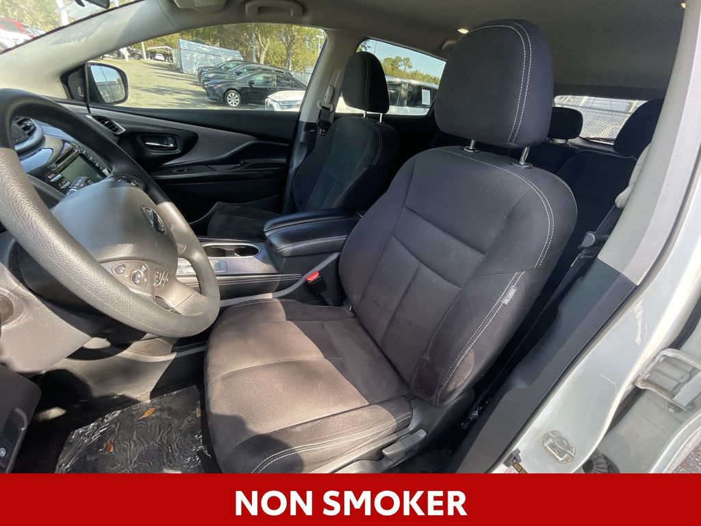 BACKUP CAMERA, BLUETOOTH HANDS FREE, BLIND SPOT MONITORING, ANDROID AUTO, APPLE CARPLAY, POWER SEATS, PUSH BUTTON START, LANE DEPARTURE, CRUISE CONTROL, NON SMOKER, Murano S TECH PACKAGE, 4D Sport Utility, 3.5L V6 DOHC 24V, CVT with Xtronic, FWD, Pearl White Tricoat, Graphite Cloth, ABS brakes, Blind Spot Warning, Electronic Stability Control, Four wheel independent suspension, Front dual zone A/C, Fully automatic headlights, High Beam Assist (HBA), Intelligent Lane Intervention (I-LI), Lane Departure Warning System, Low tire pressure warning, Pedestrian Automatic Emergency Braking (PAEB), Rear Automatic Braking (RAB), Rear Cross Traffic Alert (RCTA), Rear Sonar, Remote keyless entry, Steering wheel mounted audio controls, Technology Package, Turn signal indicator mirrors, 4-Wheel Disc Brakes, 4.667 Axle Ratio, 6 Speakers, Air Conditioning, Alloy wheels, AM/FM radio: SiriusXM, AM/FM/CD/MP3/WMA Audio System, Automatic temperature control, Brake assist, Bumpers: body-color, Carpeted Floor Mats & Carpeted Cargo Mat, CD player, Child-Seat-Sensing Airbag, Cloth Seat Trim, Delay-off headlights, Driver door bin, Driver vanity mirror, Dual front impact airbags, Dual front side impact airbags, Front anti-roll bar, Front Bucket Seats, Front Center Armrest, Front reading lights, Illuminated entry, Knee airbag, NissanConnect featuring Apple CarPlay and Android Auto, Occupant sensing airbag, Outside temperature display, Overhead airbag, Overhead console, Panic alarm, Passenger door bin, Passenger vanity mirror, Power door mirrors, Power steering, Power windows, Radio data system, Rear anti-roll bar, Rear Bumper Protector, Rear reading lights, Rear seat center armrest, Rear side impact airbag, Rear window defroster, Rear window wiper, Security system, Speed control, Speed-sensing steering, Splash Guards, Split folding rear seat, Spoiler, Tachometer, Telescoping steering wheel, Tilt steering wheel, Traction control, Trip computer, Variably intermittent wipers, Wheels: 18" Machined Aluminum-Alloy, Murano S TECH PACKAGE, 4D Sport Utility, 3.5L V6 DOHC 24V, CVT with Xtronic, FWD, Pearl White Tricoat, Graphite Cloth, ABS brakes, Blind Spot Warning, Electronic Stability Control, Four wheel independent suspension, Front dual zone A/C, Fully automatic headlights, High Beam Assist (HBA), Intelligent Lane Intervention (I-LI), Lane Departure Warning System, Low tire pressure warning, Pedestrian Automatic Emergency Braking (PAEB), Rear Automatic Braking (RAB), Rear Cross Traffic Alert (RCTA), Rear Sonar, Remote keyless entry, Steering wheel mounted audio controls, Technology Package, Turn signal indicator mirrors.