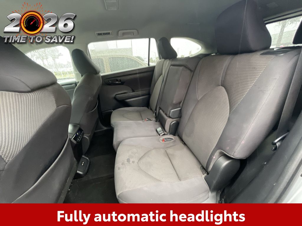 BACKUP CAMERA, BLUETOOTH HANDS FREE, ANDROID AUTO, APPLE CARPLAY, POWER SEATS, THIRD ROW SEATING, PUSH BUTTON START, LANE DEPARTURE, ADAPTIVE CRUISE CONTROL, NON SMOKER, Highlander LE, 4D Sport Utility, 3.5L V6 DOHC, 8-Speed Automatic, FWD, Celestial Silver, Black Cloth, ABS brakes, Electronic Stability Control, Four wheel independent suspension, Front dual zone A/C, Fully automatic headlights, Low tire pressure warning, Remote keyless entry, Steering wheel mounted audio controls, 18" Painted Alloy Wheels, 3.003 Axle Ratio, 3rd row seats: split-bench, 4-Wheel Disc Brakes, 6 Speakers, Air Conditioning, Alloy wheels, AM/FM radio: SiriusXM, Apple CarPlay/Android Auto, Auto High-beam Headlights, Automatic temperature control, Brake assist, Bumpers: body-color, Delay-off headlights, Driver door bin, Driver vanity mirror, Dual front impact airbags, Dual front side impact airbags, Exterior Parking Camera Rear, Fabric Seat Trim, Front anti-roll bar, Front Bucket Seats, Front Center Armrest, Front fog lights, Front reading lights, Heated door mirrors, Illuminated entry, Knee airbag, Leather Shift Knob, Occupant sensing airbag, Outside temperature display, Overhead airbag, Overhead console, Panic alarm, Passenger door bin, Passenger vanity mirror, Power door mirrors, Power driver seat, Power Liftgate, Power steering, Power windows, Radio: Audio Plus (T1 Hi), Rear air conditioning, Rear anti-roll bar, Rear reading lights, Rear seat center armrest, Rear window defroster, Rear window wiper, Reclining 3rd row seat, Security system, Speed control, Speed-sensing steering, Split folding rear seat, Spoiler, Tachometer, Telescoping steering wheel, Tilt steering wheel, Traction control, Trip computer, Turn signal indicator mirrors, Variably intermittent wipers, Highlander LE, 4D Sport Utility, 3.5L V6 DOHC, 8-Speed Automatic, FWD, Celestial Silver, Black Cloth, ABS brakes, Electronic Stability Control, Four wheel independent suspension, Front dual zone A/C, Fully automatic headlights, Low tire pressure warning, Remote keyless entry, Steering wheel mounted audio controls.