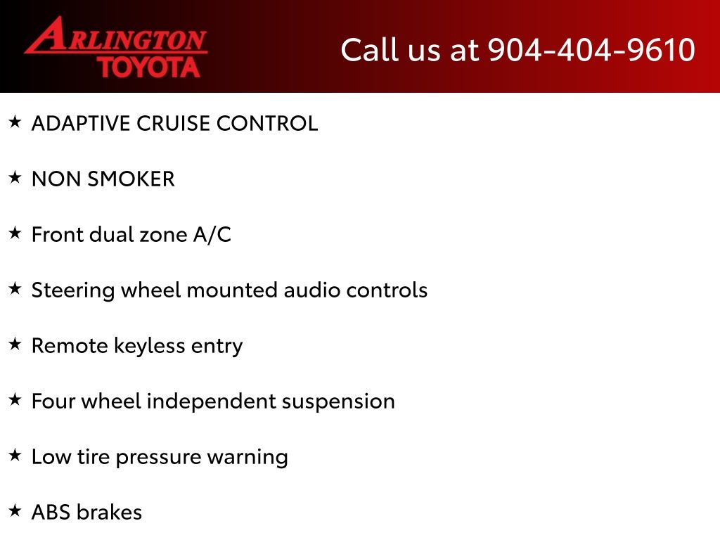 CALL FOR AVAILABILITY AND EXTRA OPTIONS ARLINGTON TOYOTA 904-721-3000.