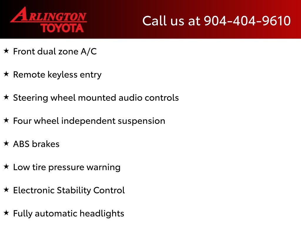 CALL FOR AVAILABILITY AND EXTRA OPTIONS ARLINGTON TOYOTA 904-721-3000.
