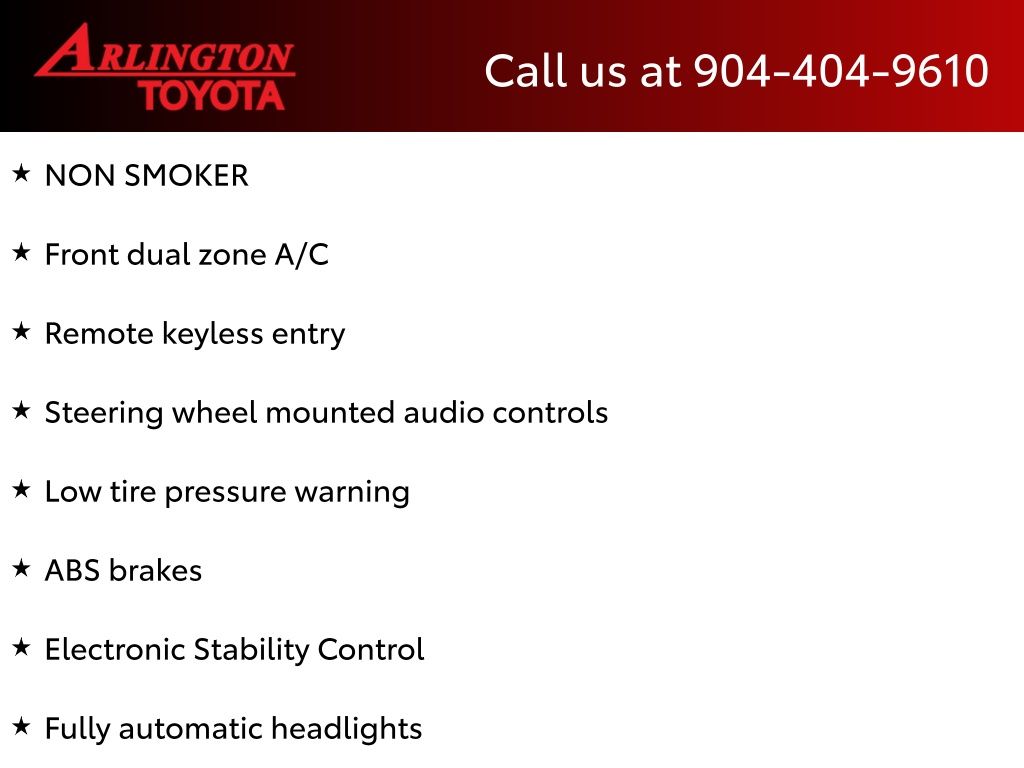 CALL FOR AVAILABILITY AND EXTRA OPTIONS ARLINGTON TOYOTA 904-721-3000.