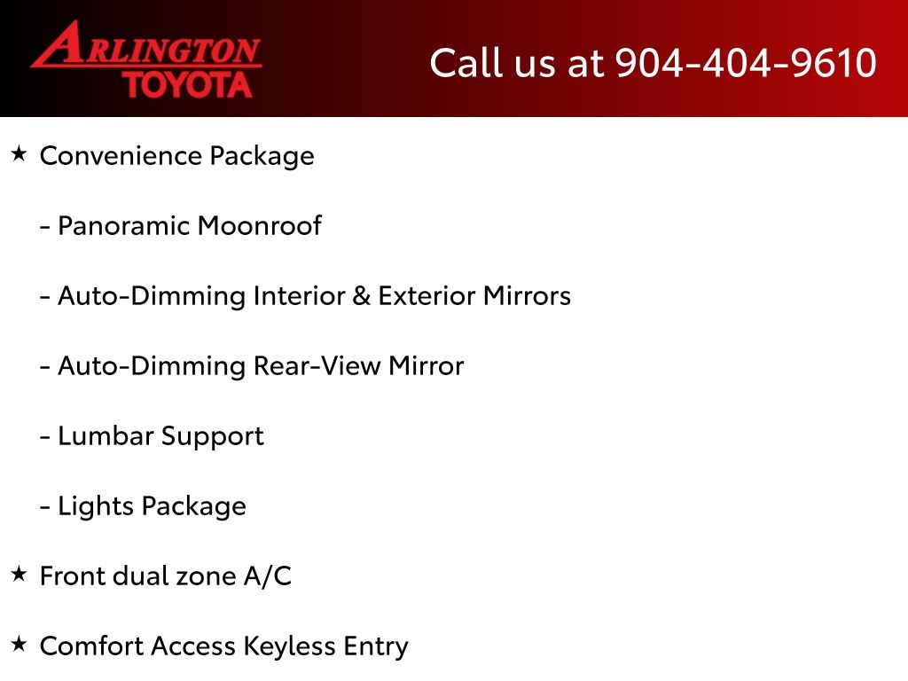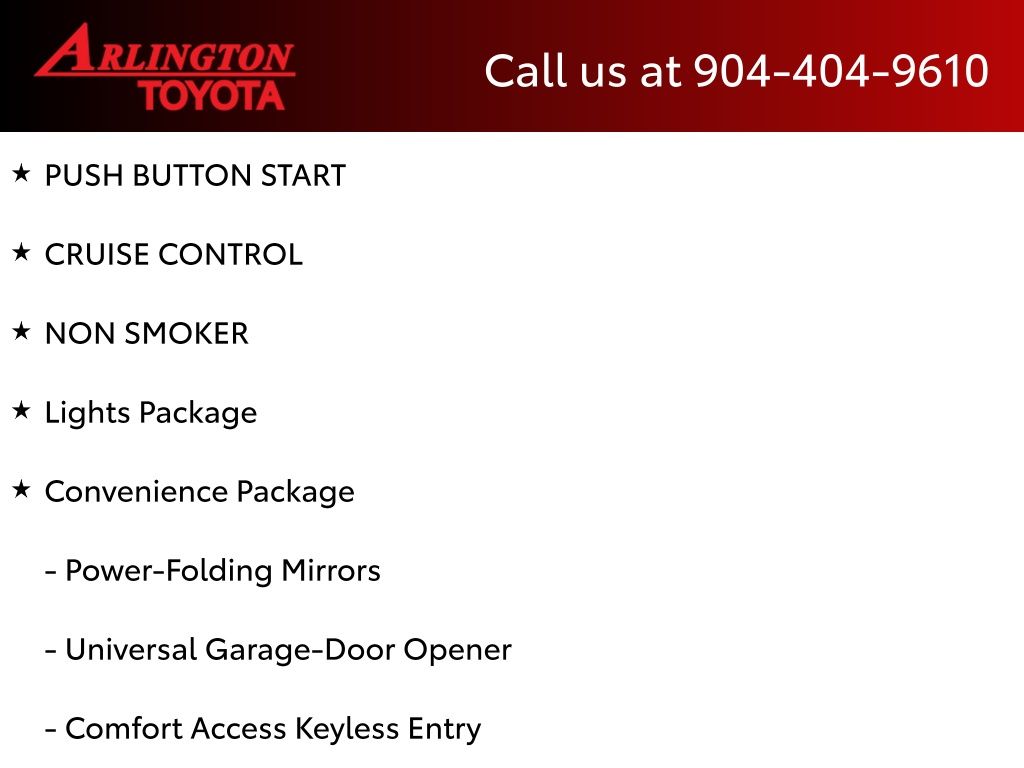 CALL FOR AVAILABILITY AND EXTRA OPTIONS ARLINGTON TOYOTA 904-721-3000.