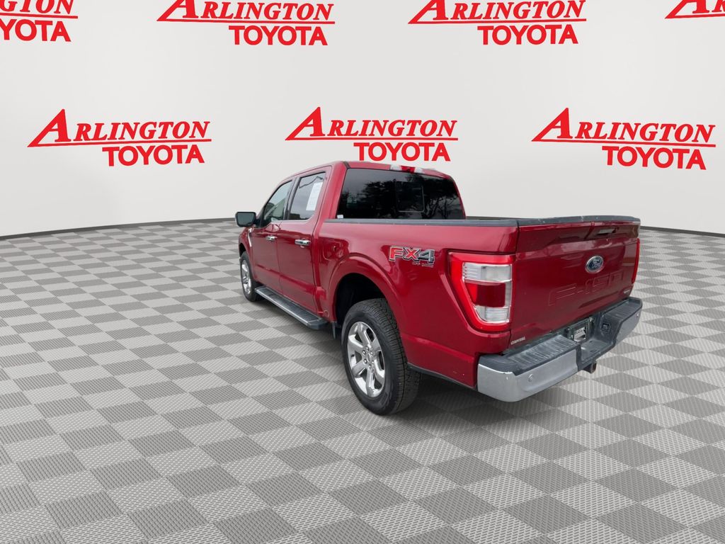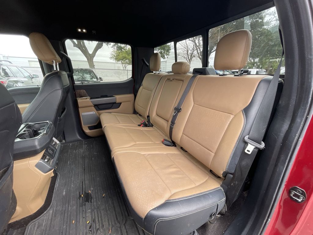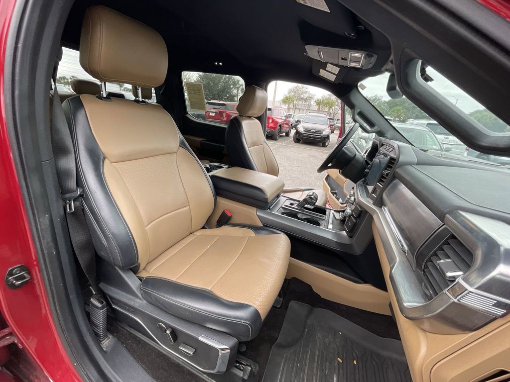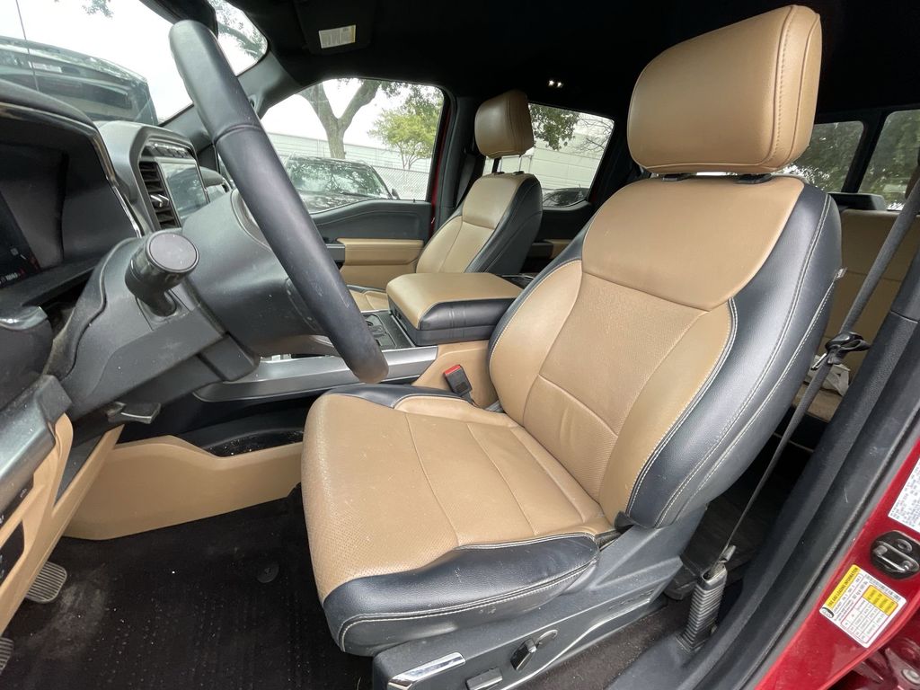 BACKUP CAMERA, BLUETOOTH HANDS FREE, 4X4/FOUR WHEEL DRIVE, POWER SEATS, MEMORY SEATS, RUNNING BOARDS, TOW PACKAGE, CRUISE CONTROL, NON SMOKER, F-150 Lariat 4x4, 4D SuperCrew, 3.5L V6 EcoBoost, 10-Speed Automatic, 4WD, Red Metallic, Black/Baja Tan w/Leather-Trimmed 40/20/40 Front Seat, ABS brakes, Electronic Stability Control, Front dual zone A/C, Fully automatic headlights, Low tire pressure warning, Steering wheel mounted audio controls, Turn signal indicator mirrors, 18" Machined-Aluminum Wheels, 360 Degree Camera, 4-Wheel Disc Brakes, 6" Chrome Running Board, 7 Speakers, Adjustable pedals, Air Conditioning, Alloy wheels, AM/FM radio: SiriusXM with 360L, Auto High-beam Headlights, Auto-dimming door mirrors, Auto-dimming Rear-View mirror, Automatic temperature control, Brake assist, Bumpers: chrome, Chrome 2-Bar Grille w/4 Minor Bars, Chrome Door & Tailgate Handles w/Body-Color Bezel, Chrome Single-Tip Exhaust, Chrome Skull Caps on Exterior Mirrors, Class IV Trailer Hitch Receiver, Compass, Connected Built-In Navigation, Delay-off headlights, Driver door bin, Driver vanity mirror, Dual front impact airbags, Dual front side impact airbags, Emergency communication system: SYNC 4 911 Assist, Equipment Group 501A Mid, Evasive Steering Assist, Extended Range 36 Gallon Fuel Tank, Exterior Parking Camera Rear, Ford Co-Pilot360 Assist 2.0, Front anti-roll bar, Front Center Armrest w/Storage, Front fog lights, Front reading lights, Front wheel independent suspension, FX4 Off-Road Package, Heated door mirrors, Heated front seats, Illuminated entry, Integrated Trailer Brake Controller, Intelligent Adaptive Cruise Control w/Stop & Go, Intersection Assist, Lariat Chrome Appearance Package, Leather-Trimmed 40/20/40 Front Seat, LED Sideview Mirror Spotlights, Memory seat, Navigation system: Connected Navigation (90-Day Trial), Occupant sensing airbag, Onboard 400W Outlet, Outside temperature display, Overhead airbag, Overhead console, Panic alarm, Passenger door bin, Passenger vanity mirror, Pedal memory, Power door mirrors, Power driver seat, Power passenger seat, Power steering, Power Tailgate, Power windows, Pro Power Onboard - 2KW, Pro Trailer Backup Assist, Radio data system, Radio: AM/FM SiriusXM w/360L, Radio: B&O Sound System by Bang & Olufsen, Rear reading lights, Rear seat center armrest, Rear step bumper, Rear window defroster, Remote keyless entry, Security system, Speed control, Speed Sign Recognition, Speed-sensing steering, Split folding rear seat, SYNC 4 w/Enhanced Voice Recognition, Tachometer, Telescoping steering wheel, Tilt steering wheel, Traction control, Trailer Tow Package, Tray Style Floor Liner (47W), Trip computer, Universal Garage Door Opener, Variably intermittent wipers, Ventilated front seats, Voltmeter, Wheels: 18" Chrome-Like PVD, Wheels: 20" Chrome-Like PVD, F-150 Lariat 4x4, 4D SuperCrew, 3.5L V6 EcoBoost, 10-Speed Automatic, 4WD, Red Metallic, Black/Baja Tan w/Leather-Trimmed 40/20/40 Front Seat, ABS brakes, Electronic Stability Control, Front dual zone A/C, Fully automatic headlights, Low tire pressure warning, Steering wheel mounted audio controls, Turn signal indicator mirrors.
