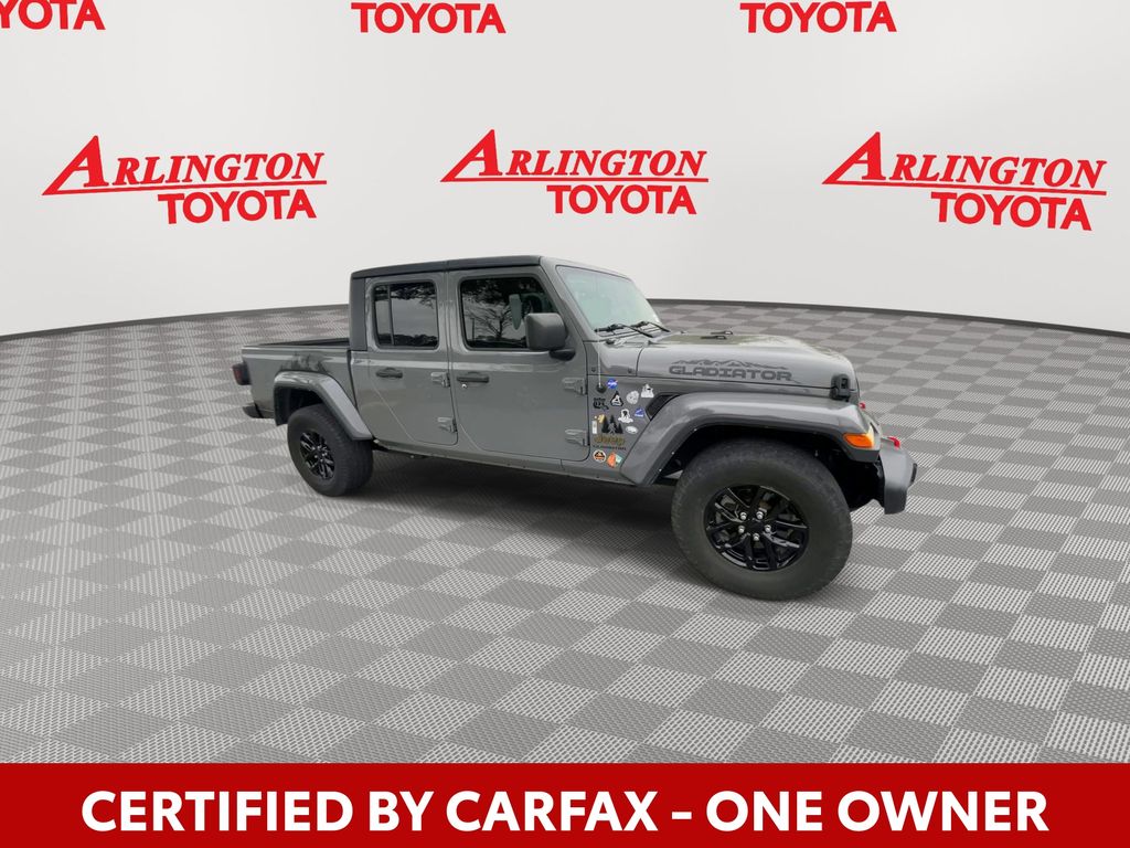 CERTIFIED BY CARFAX - ONE OWNER, BACKUP CAMERA, BLUETOOTH HANDS FREE, ANDROID AUTO, APPLE CARPLAY, 4X4/FOUR WHEEL DRIVE, PUSH BUTTON START, CRUISE CONTROL, NON SMOKER, Gladiator Sport 4X4, 4D Crew Cab, 3.6L V6 24V VVT, 8-Speed Automatic, 4WD, Sting-Gray Clearcoat, Black Cloth, 110 mph Vehicle Max Speed Calibration, 240 Amp Alternator, 3.73 Rear Axle Ratio, 4-Wheel Disc Brakes, 7.0" Touch Screen Display, 8 Speakers, ABS brakes, Air Conditioning, Air Conditioning w/Auto Temperature Control, AM/FM radio, Anti-Lock 4-Wheel Disc Heavy Duty Brakes, Anti-Spin Differential Rear Axle, Apple CarPlay, Automatic Headlamps, Black 3-Piece Hard Top, Body Color Fender Flares (2-Piece), Brake assist, Class IV Hitch Receiver, Cloth Low-Back Bucket Seats, Cluster 7.0" TFT Color Display, Compass, Convenience Group, Daytime Running Lamp System, Deep Tint Sunscreen Windows, Delay-off headlights, Driver door bin, Driver vanity mirror, Dual front impact airbags, Dual front side impact airbags, Electronic Stability Control, For More Info, Call 800-643-2112, Front 1-Touch Down Power Windows, Front anti-roll bar, Front Bucket Seats, Front Center Armrest w/Storage, Front fog lights, Front reading lights, Google Android Auto, GPEC 5 Engine Controller, GPS Antenna Input, Heavy-Duty Engine Cooling, Integrated Center Stack Radio, Integrated roll-over protection, Integrated Voice Command w/Bluetooth, Leather Wrapped Steering Wheel, Low tire pressure warning, Molded in Color Bumper w/Accent Color, MOPAR Spray In Bedliner, Normal Duty Plus Suspension, Normal Duty Suspension, Occupant sensing airbag, Outside temperature display, ParkView Rear Back-Up Camera, Passenger door bin, Passenger vanity mirror, Popular Equipment Package, Power Heated Mirrors, Power steering, Power Tailgate Lock, Quick Order Package 23S Sport S, Quick Order Package 24S Sport S, Radio data system, Radio: Uconnect 3 w/5" Display, Radio: Uconnect 4 w/7" Display, Rear anti-roll bar, Rear reading lights, Remote Keyless Entry, Security Alarm, SiriusXM Radio Service, SiriusXM Satellite Radio, Speed control, Speed Sensitive Power Locks, Split folding rear seat, Sport S, Steering wheel mounted audio controls, Sun Visors w/Illuminated Vanity Mirrors, Tachometer, Technology Group, Telescoping steering wheel, Tilt steering wheel, Traction control, Trailer Hitch Zoom, Trailer Tow Package, Trip computer, USB Host Flip, Variably intermittent wipers, Wheels: 17" x 7.5" Black Steel Styled, Wheels: 17" x 7.5" Gloss Black Aluminum, Gladiator Sport 4X4, 4D Crew Cab, 3.6L V6 24V VVT, 8-Speed Automatic, 4WD, Sting-Gray Clearcoat, Black Cloth.